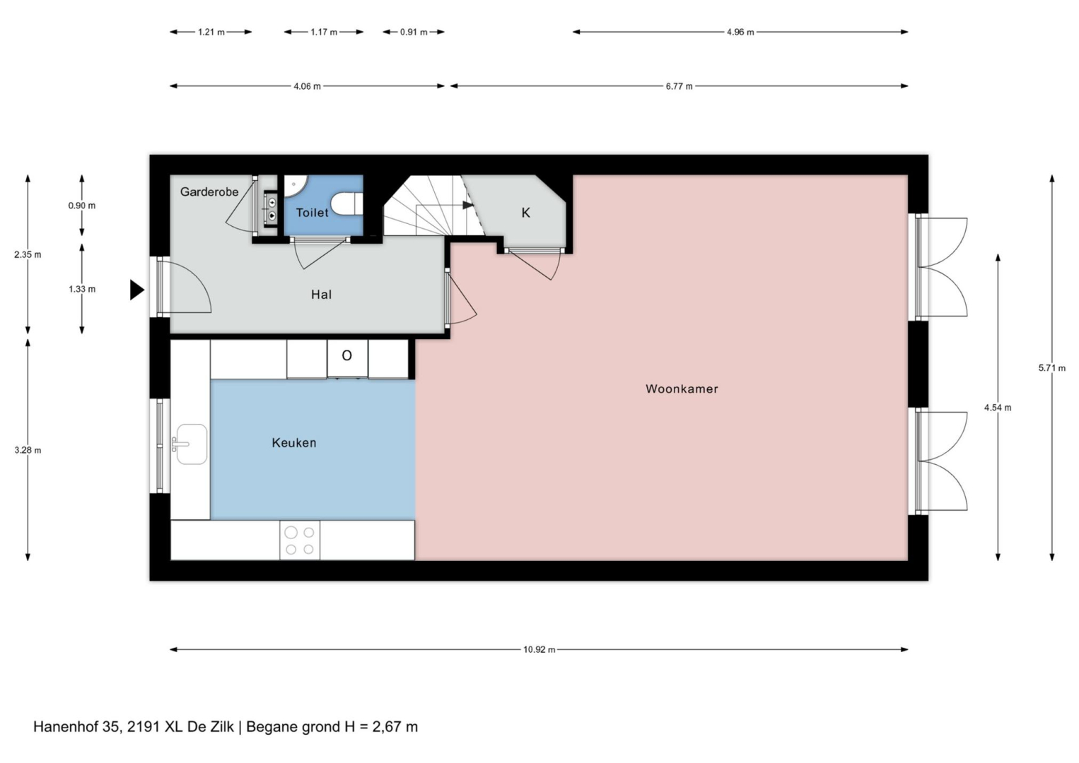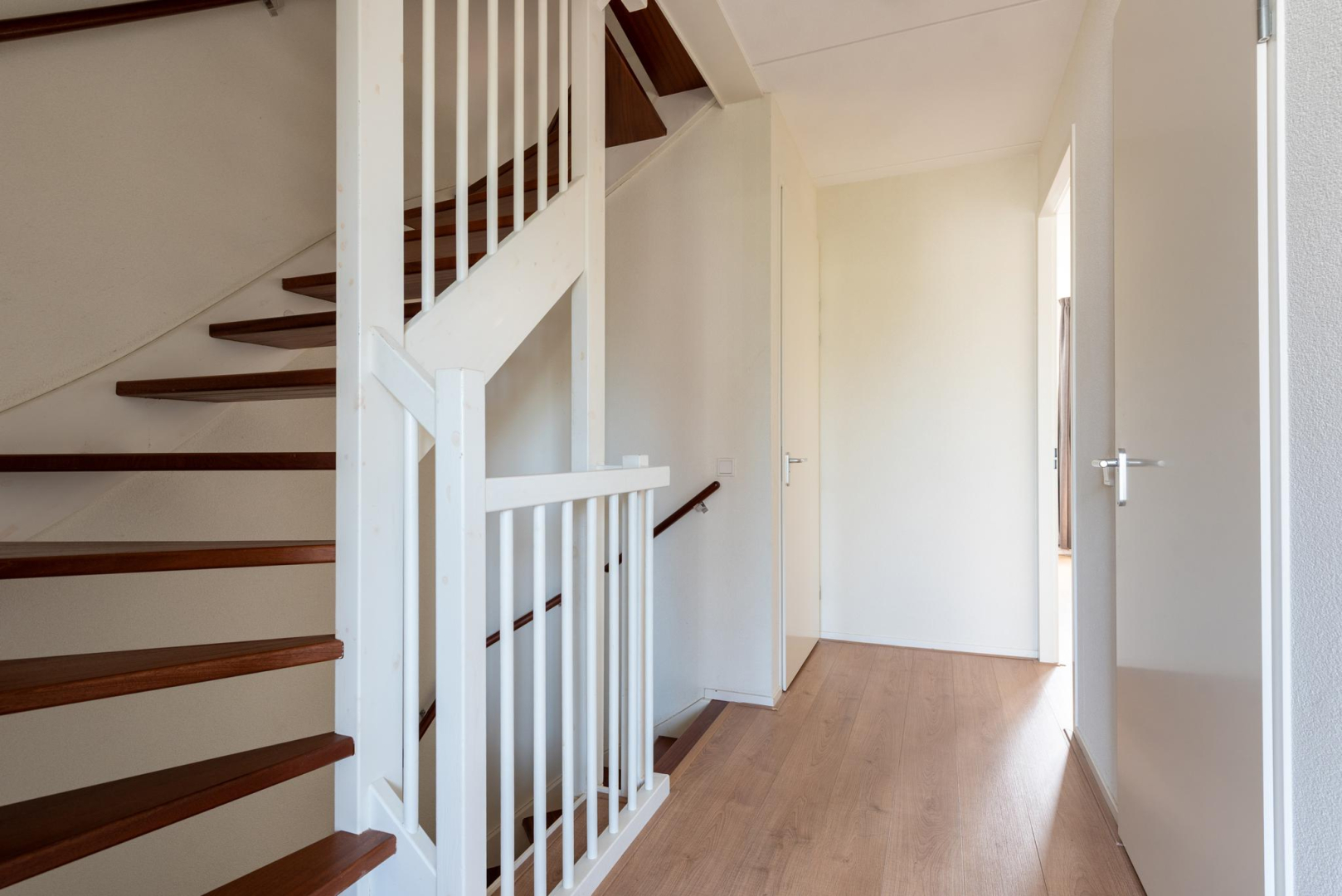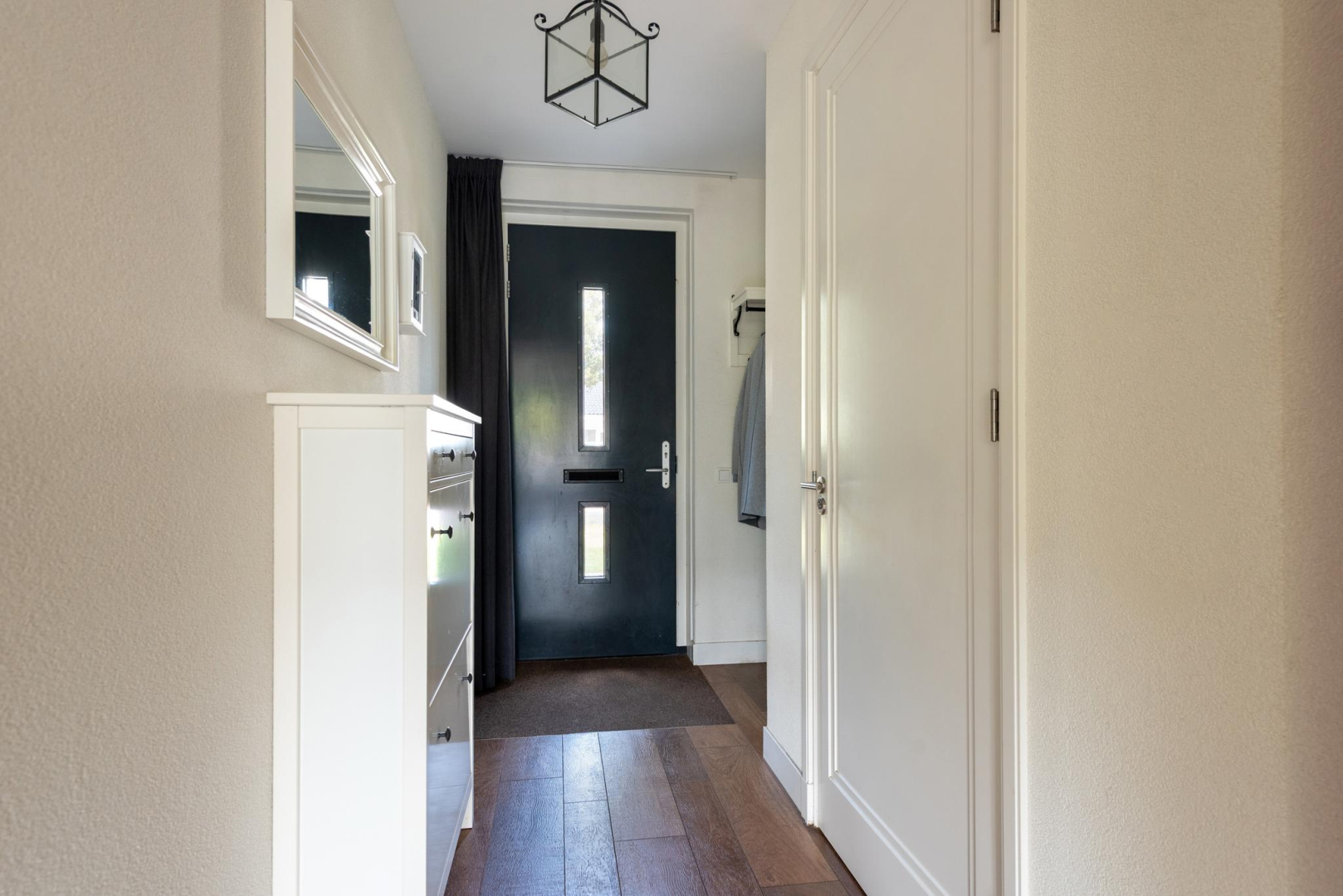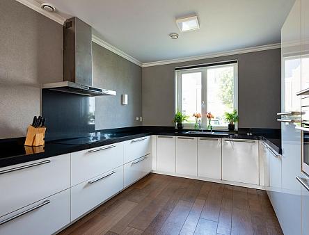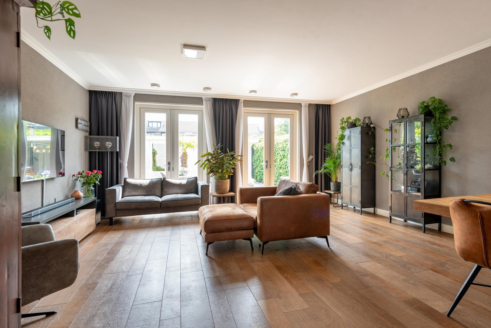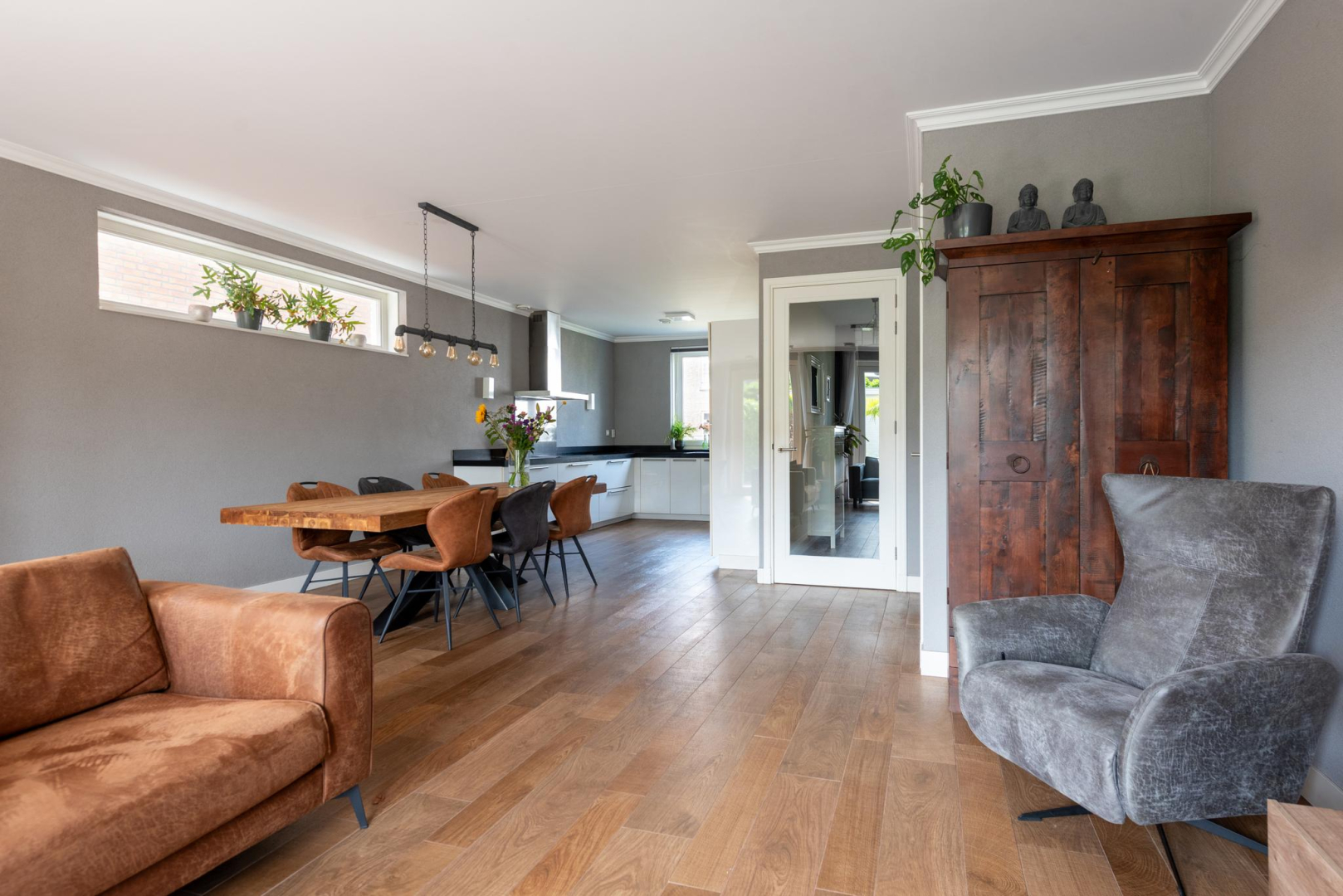 Bij binnenkomst betreed je de ruime entree, waar de garderobe, de meterkast en een moderne toiletruimte zich bevinden. De royale woonkamer is heerlijk licht en biedt volop leefruimte. Dankzij de praktische trapkast is er extra bergruimte, en de twee dubbele openslaande deuren zorgen voor een mooie verbinding met de fraai aangelegde achtertuin. Aan de voorzijde van de woning bevindt zich de luxe open keuken, compleet uitgerust met hoogwaardige inbouwapparatuur, waaronder een hoge koelkast, een combimagnetron met ovenfunctie, een vriezer, vaatwasser, inductiekookplaat en een roestvrijstalen afzuigkap. De gehele begane grond is afgewerkt met comfortabele vloerverwarming en een keramische tegelvloer, wat bijdraagt aan een aangenaam woonklimaat het hele jaar door.