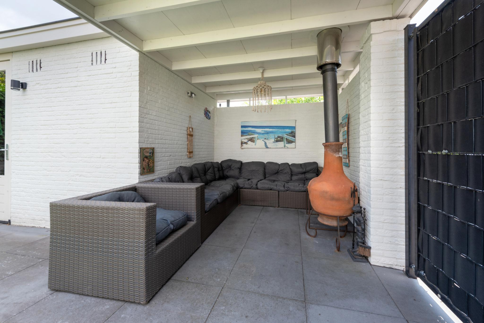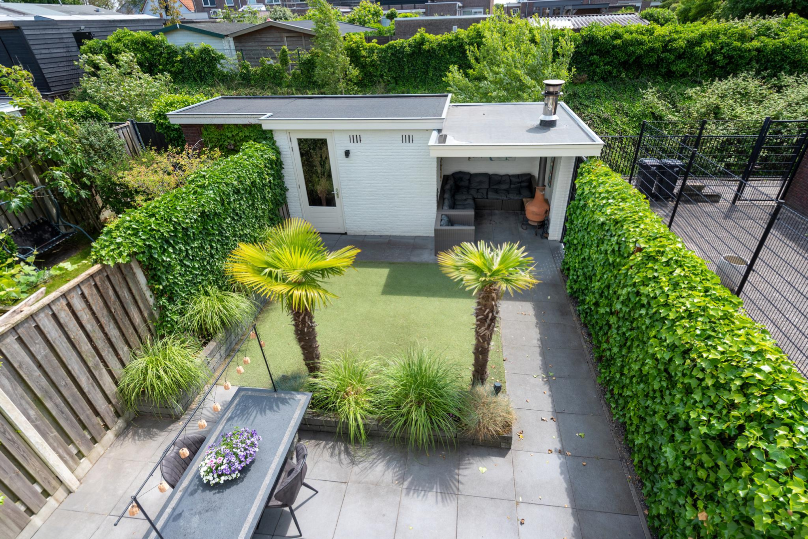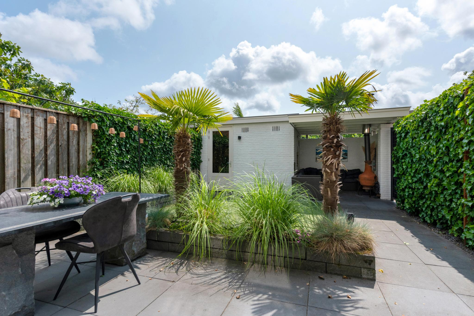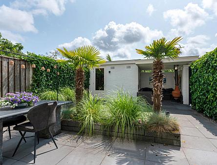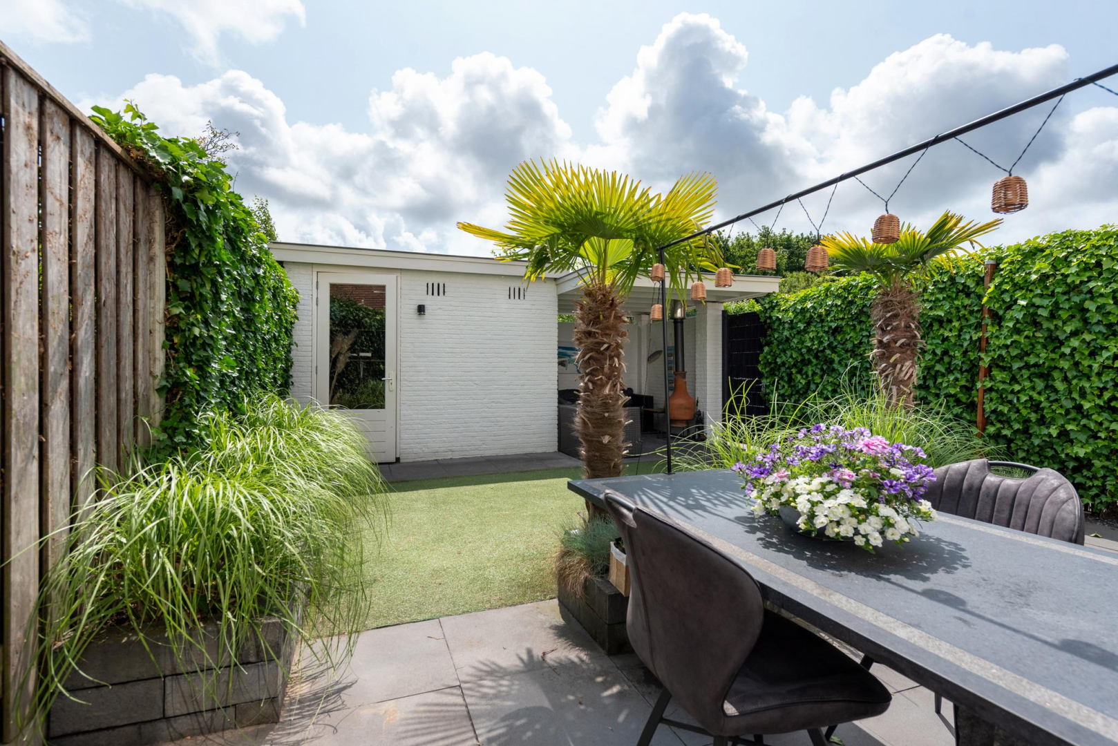 Zonnige, onderhoudsvriendelijke achtertuin gelegen op het zuidoosten met een stenen berging en een sfeervolle veranda. Direct aan de woning bevindt zich een heerlijk terras, perfect om van het buitenleven te genieten.