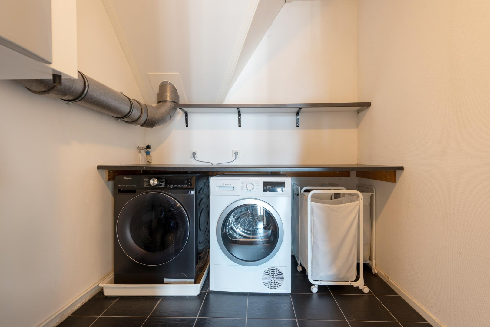 Vanaf de overloop, met luik naar de bergvliering, is er toegang tot een grote ruimte, waar niet alleen aansluitingen voor wasmachine en droger aanwezig zijn, maar ook de opstelplaats voor de cv-ketel en de WTW-installatie. Op deze verdieping bevinden zicht nog 2 ruime (slaap)kamers.