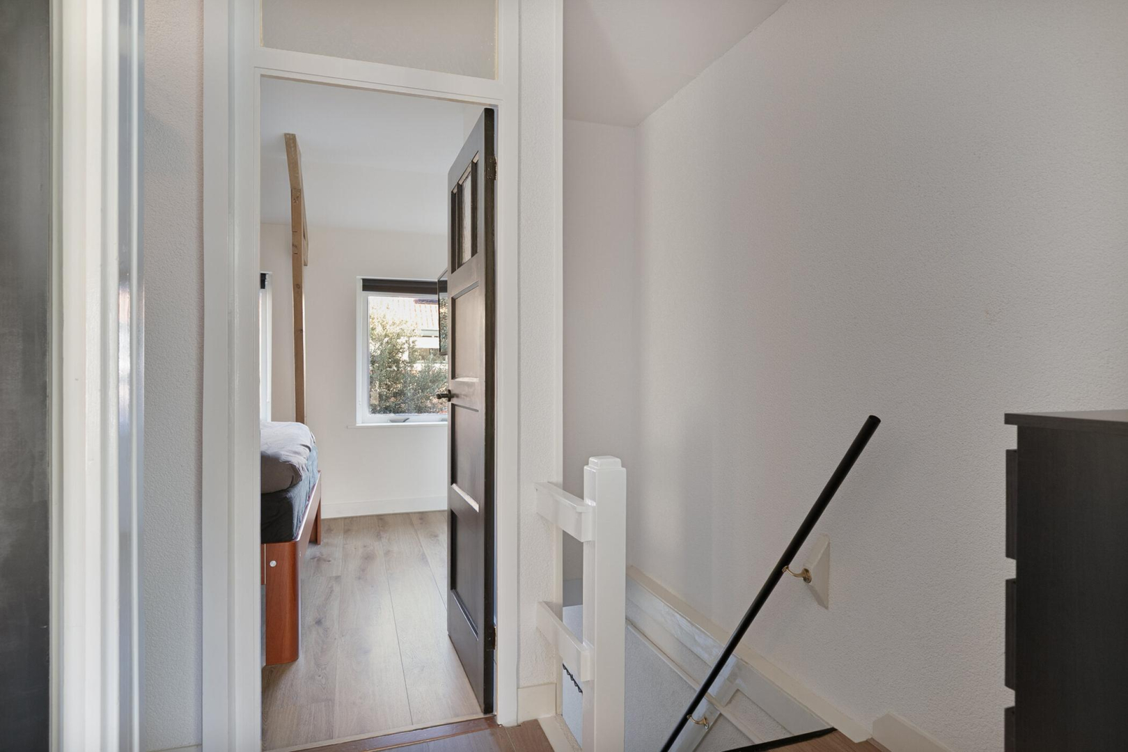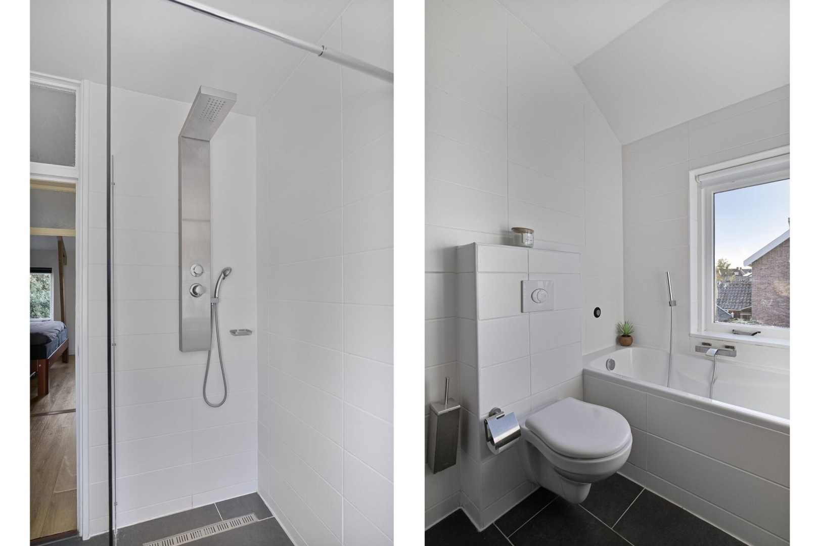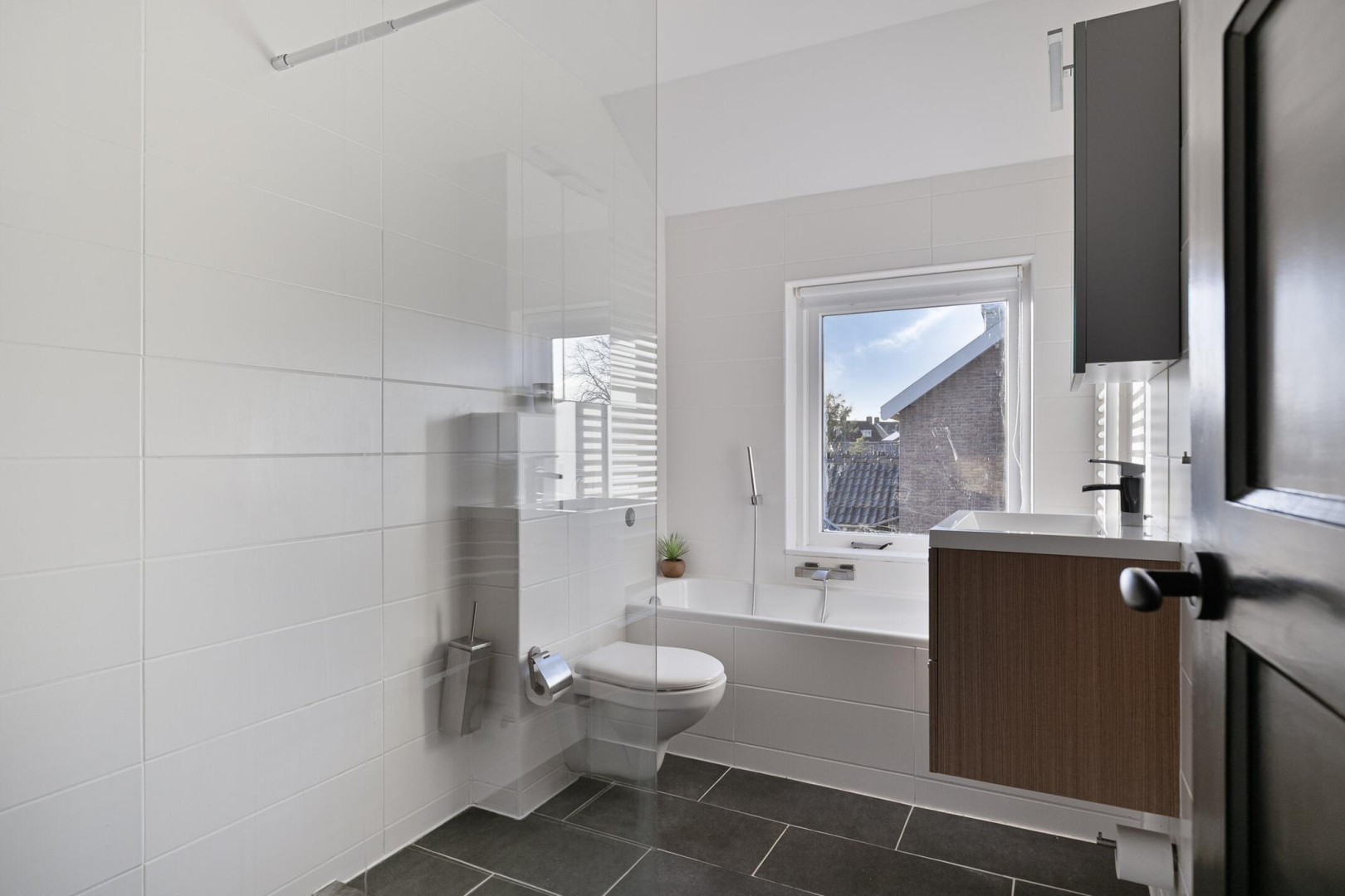 Op de eerste etage bevinden zich twee ruime slaapkamers, geschikt als master bedroom, kinderkamer, werk- of logeerruimte. De moderne badkamer is uitgerust met een comfortabele inloopdouche, ligbad, wandcloset, wastafelmeubel met spiegelkast en een handdoekradiator. De gehele verdieping is voorzien van een laminaatvloer.