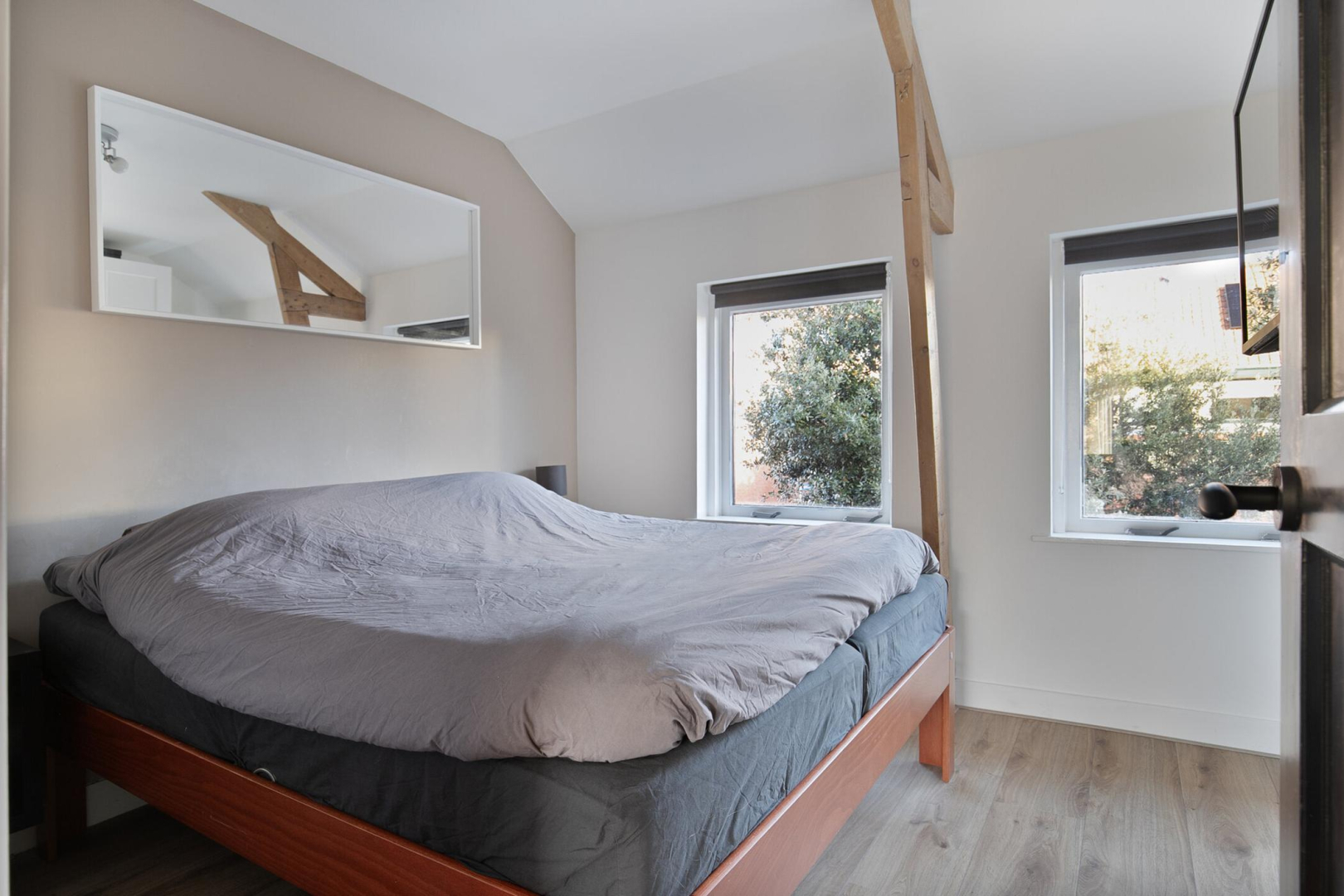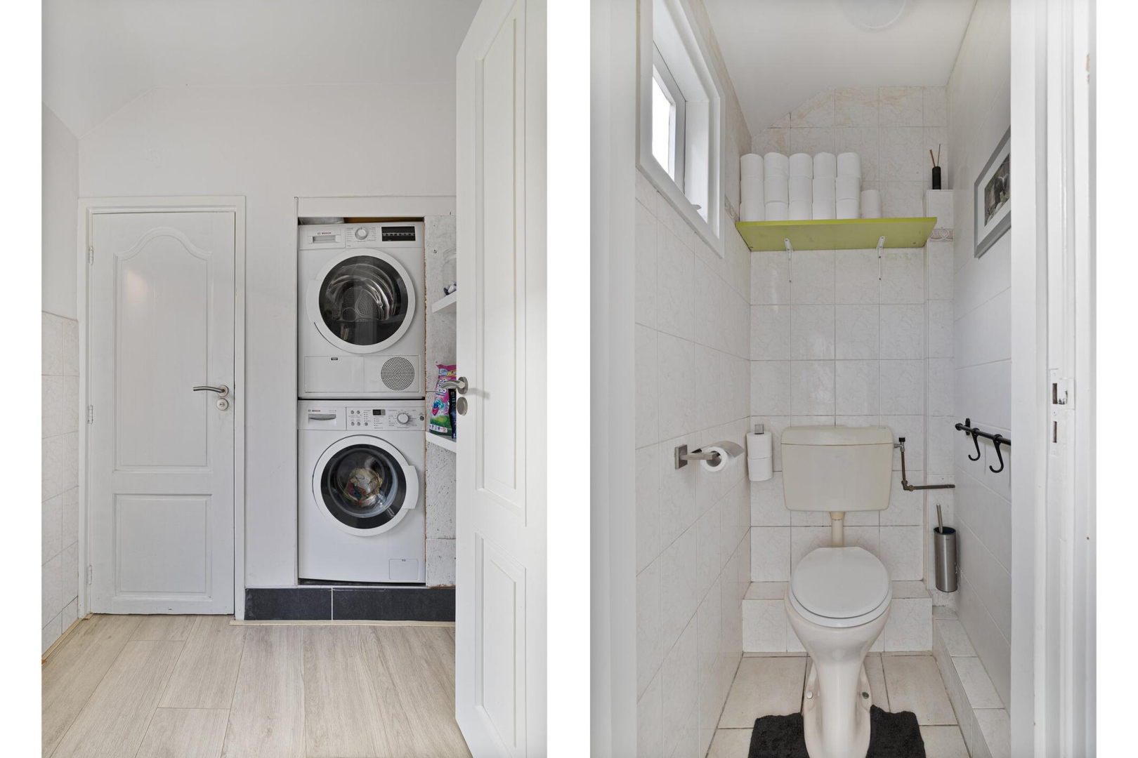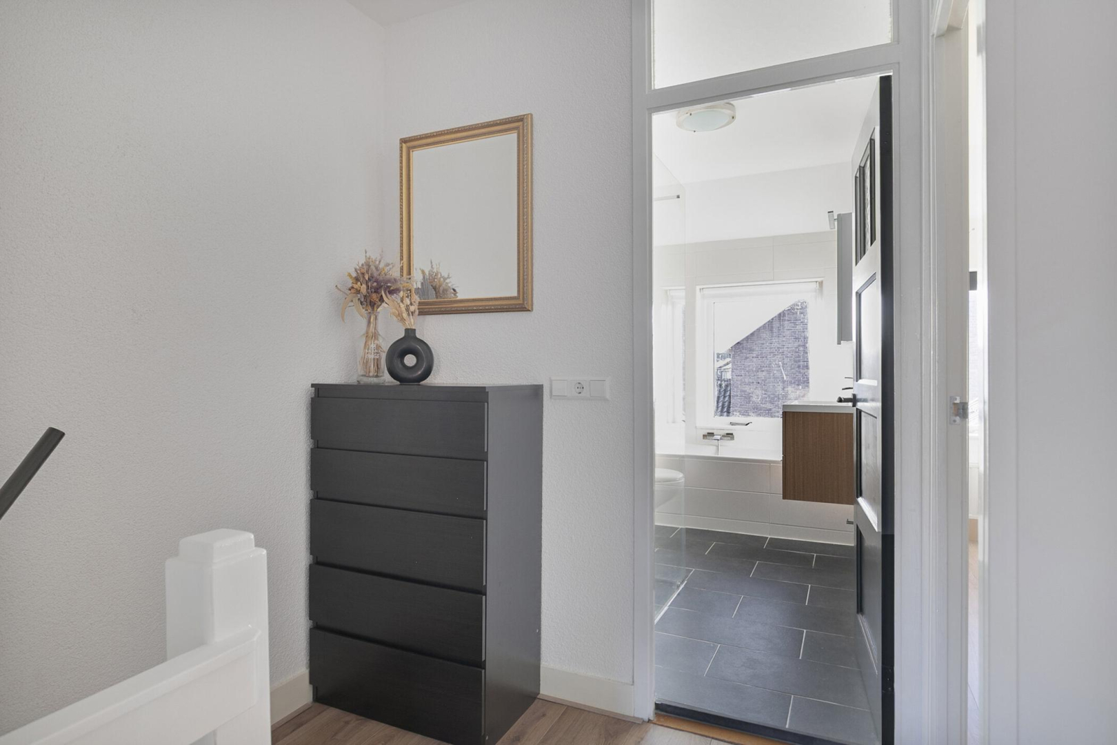 Op de eerste etage bevinden zich twee ruime slaapkamers, geschikt als master bedroom, kinderkamer, werk- of logeerruimte. De moderne badkamer is uitgerust met een comfortabele inloopdouche, ligbad, wandcloset, wastafelmeubel met spiegelkast en een handdoekradiator. De gehele verdieping is voorzien van een laminaatvloer.