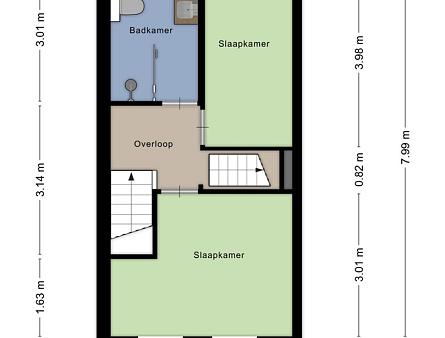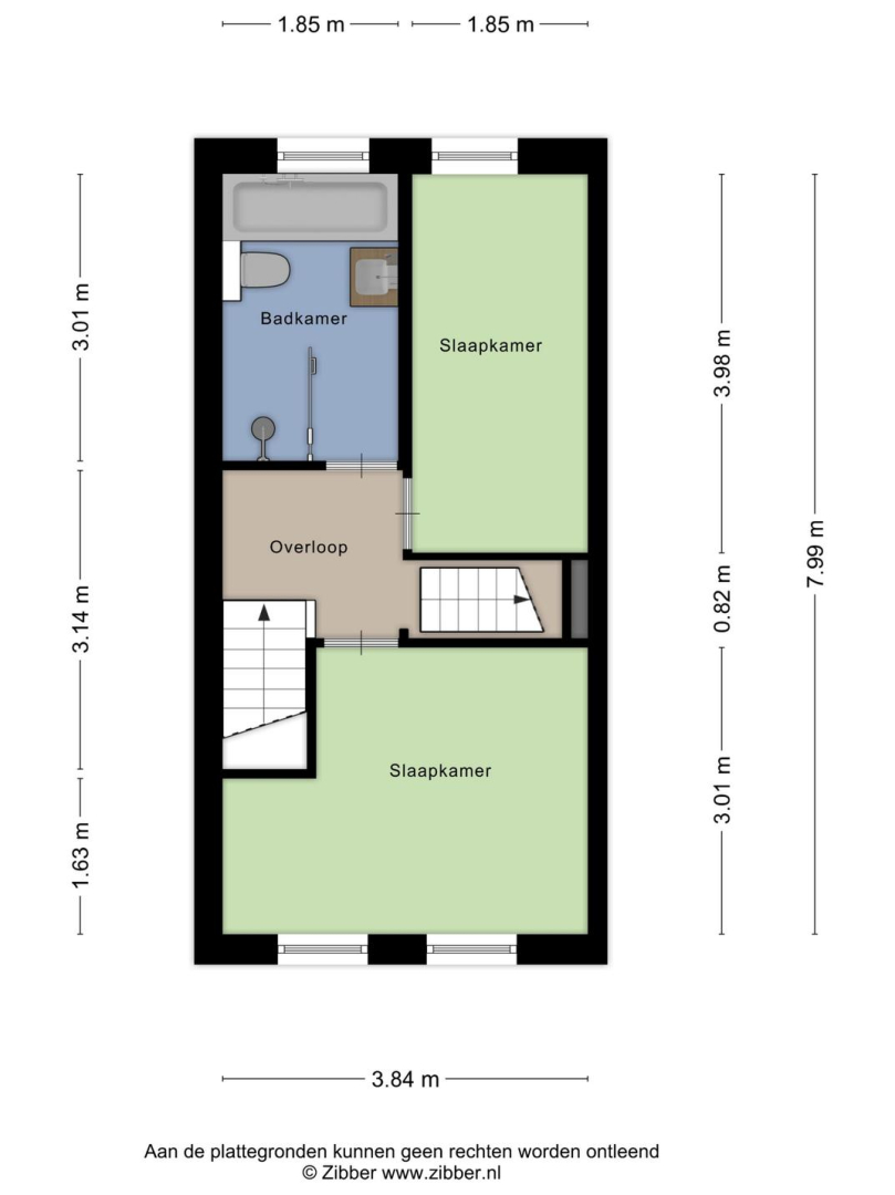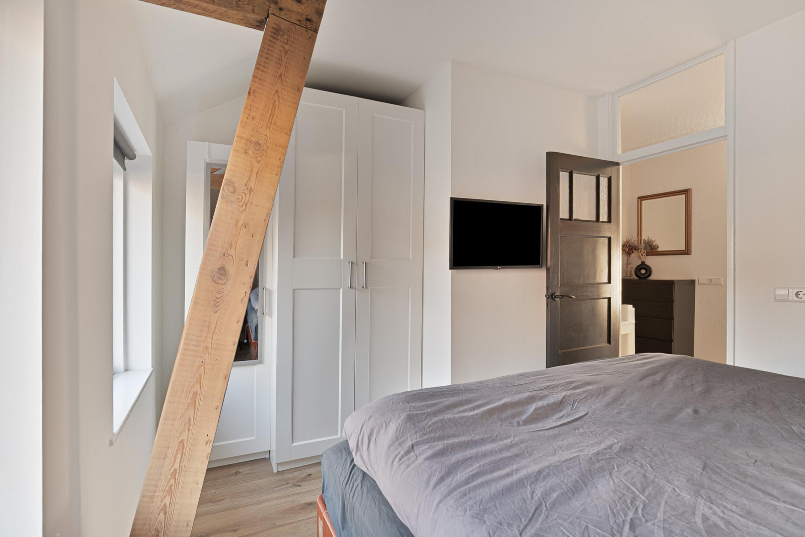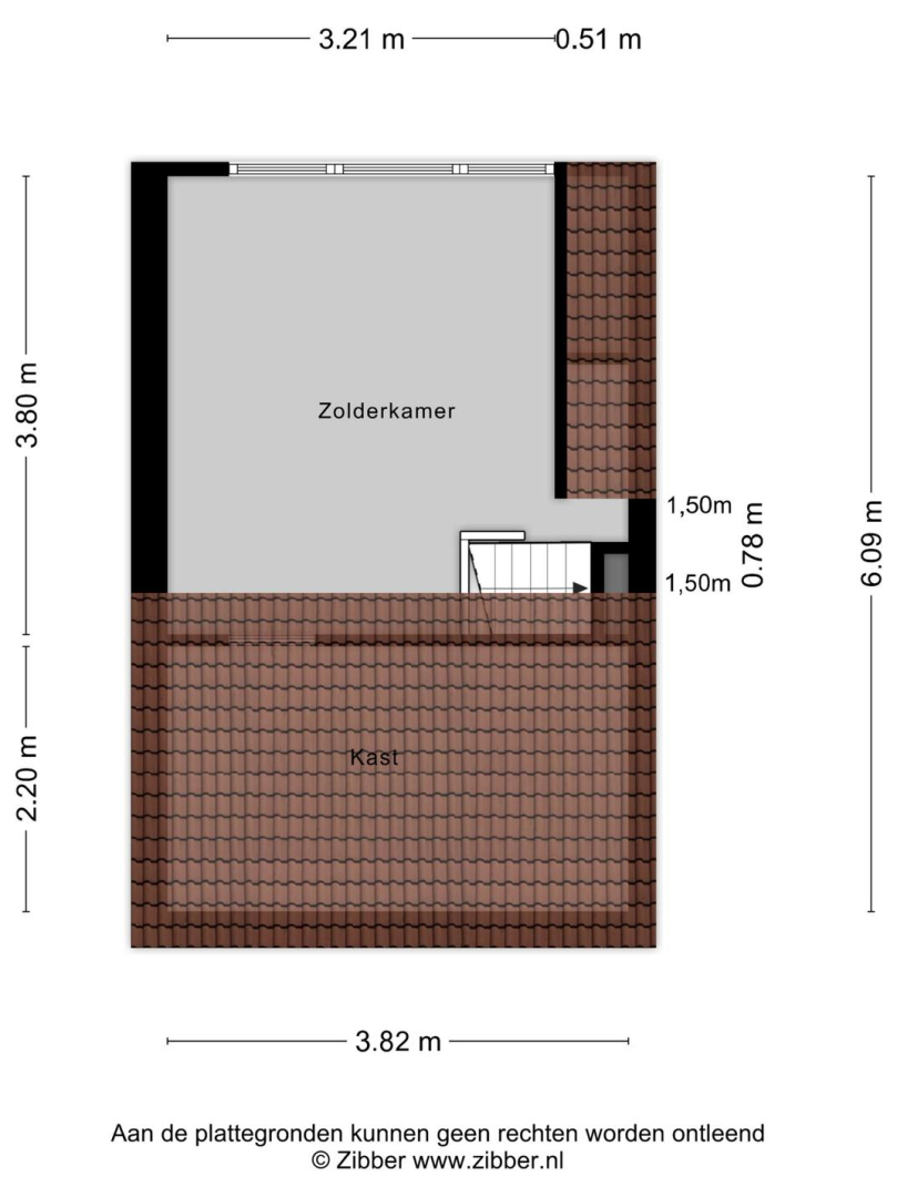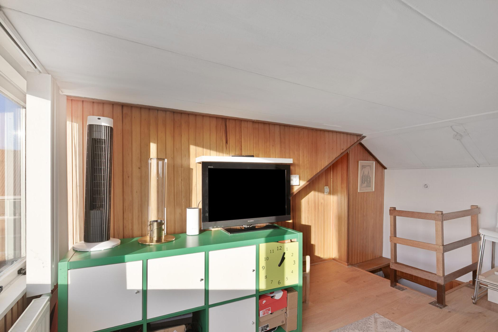 Royale zolderruimte (hoogte ca. 1.70 m) met veel bergruimte achter de knieschotten; deze ruimte is vanwege de hoogte niet opgenomen in het woonoppervlak;