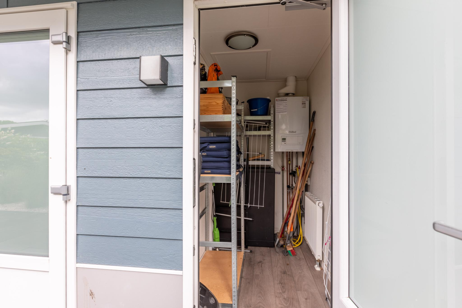 De zonnige, onderhoudsvriendelijke tuin beschikt over borders, twee terrassen en een omheining rondom. De inpandige berging is bereikbaar via de tuin, in de berging is de opstelplaats van de cv-ketel.