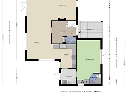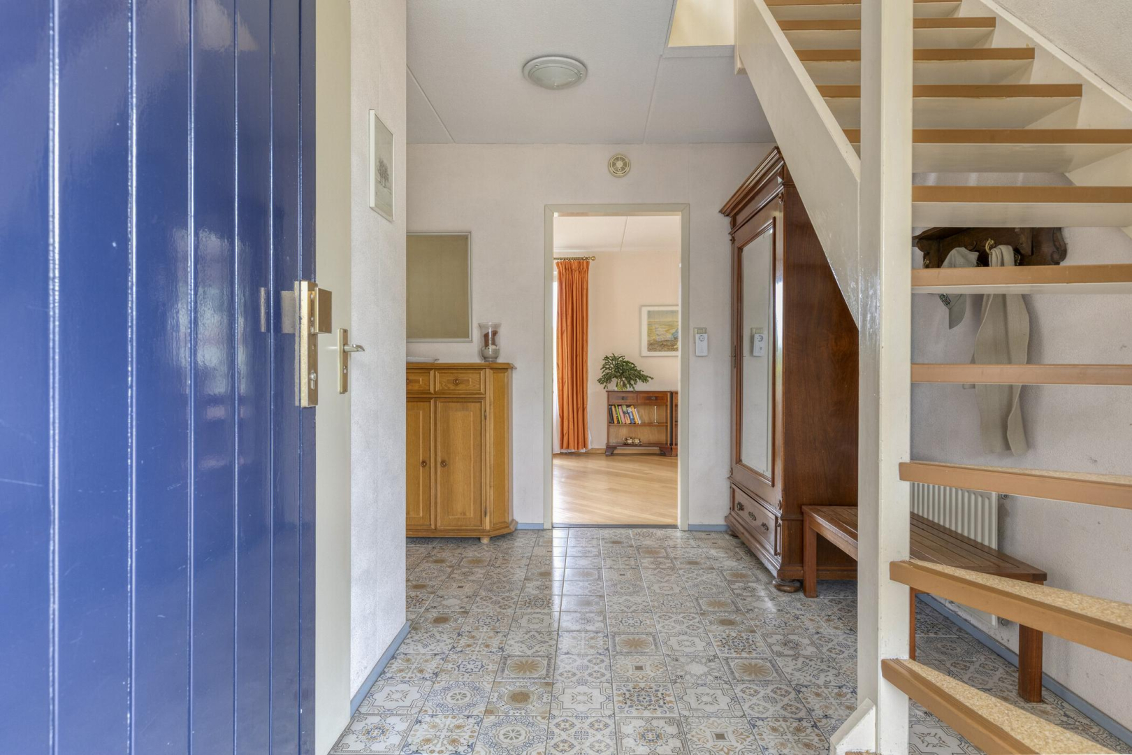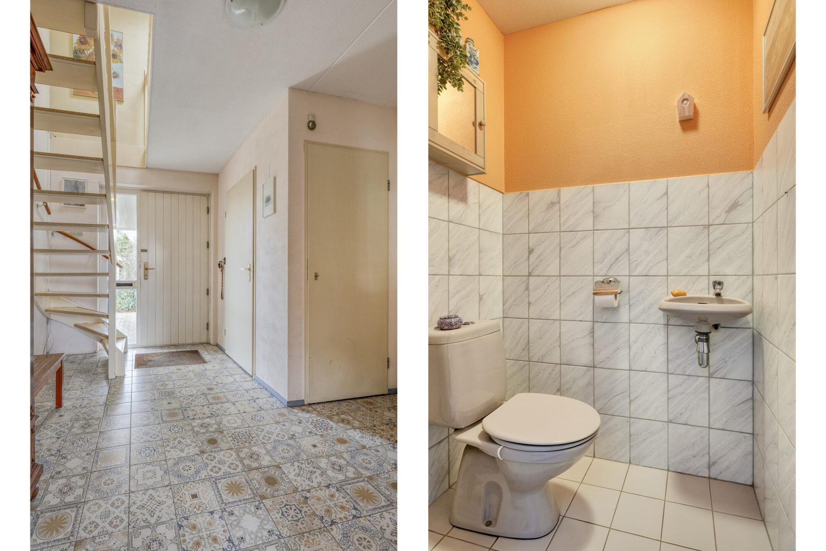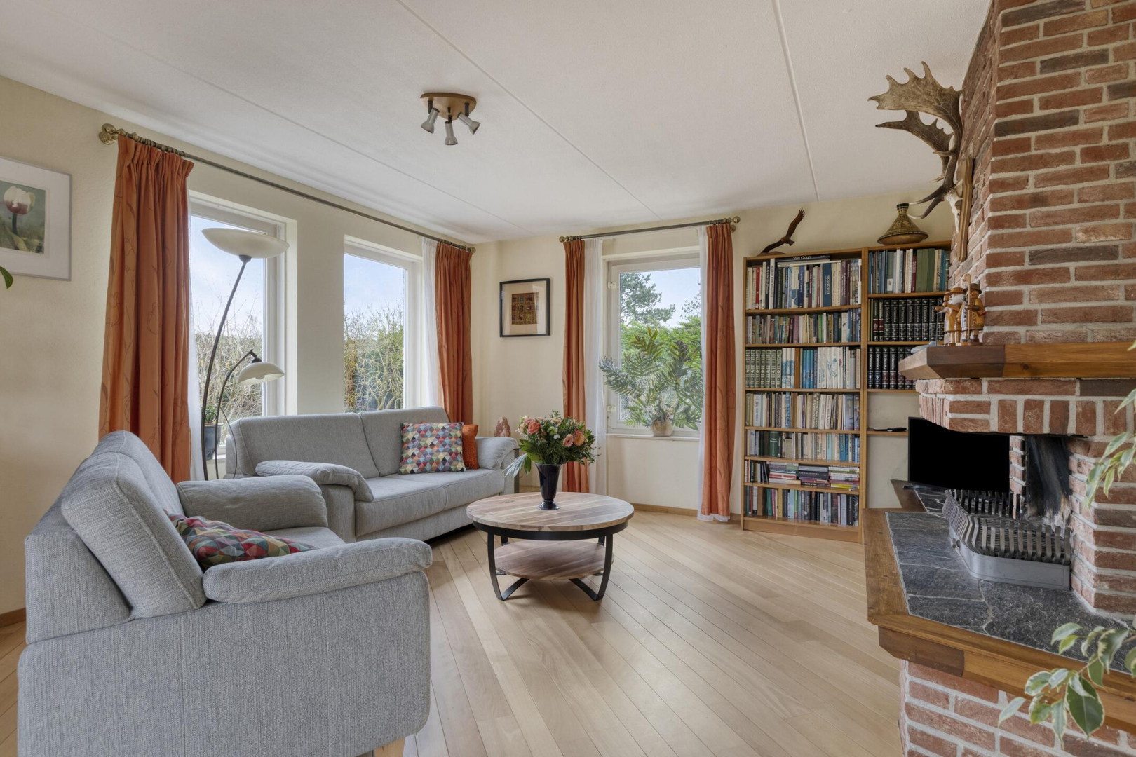 Via de voordeur betreedt u de hal met meterkast en een toiletruimte met fonteintje. Vanuit de hal heeft u toegang tot de trap naar de eerste verdieping en de royale woonkamer. De royale woonkamer vormt het hart van de woning en wordt gekenmerkt door een prettige lichtinval en een open indeling. De sfeervolle open haard en de houten vloer zorgen voor een warme, huiselijke uitstraling. Grote raampartijen en openslaande deuren verbinden binnen moeiteloos met buiten.