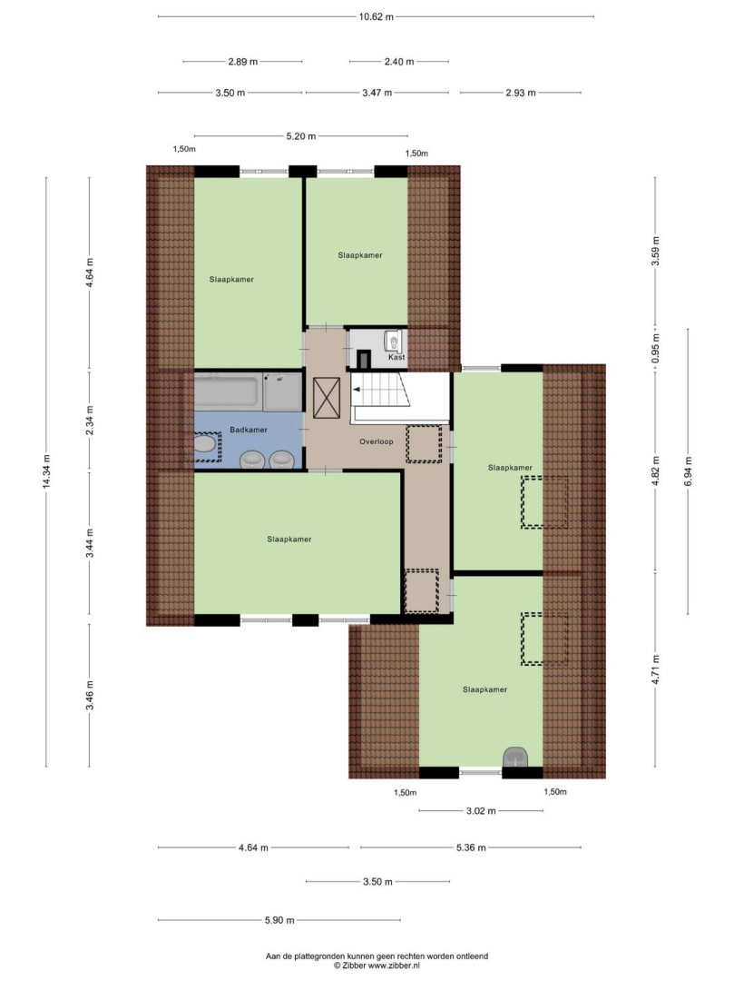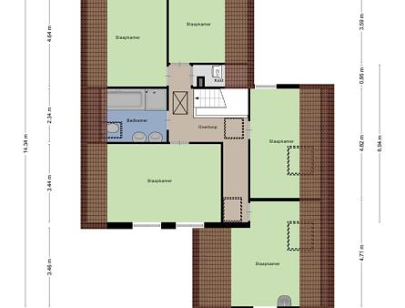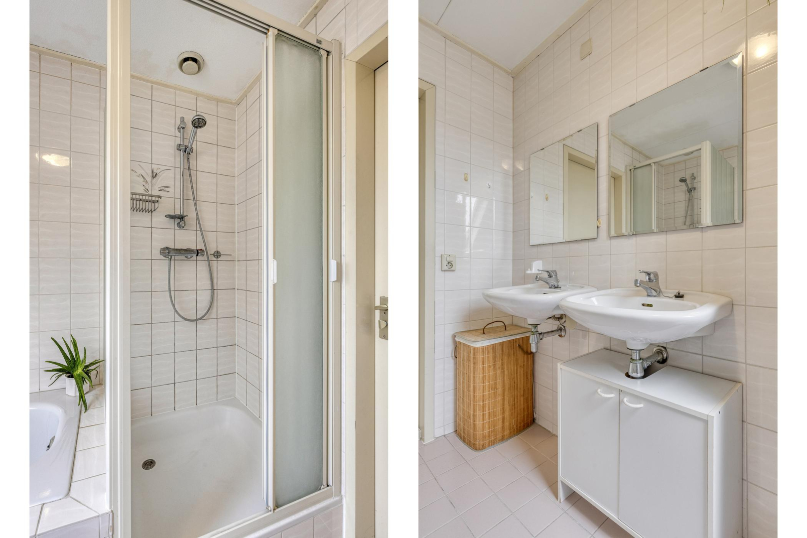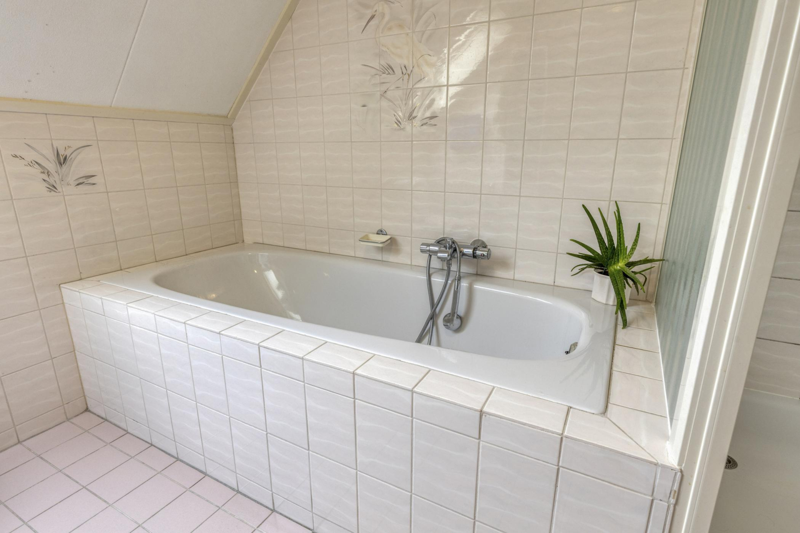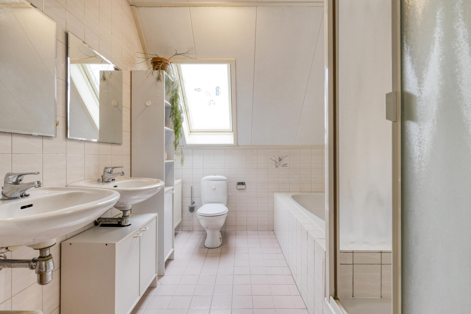 Vanuit de overloop is er toegang tot maar liefst vijf ruime slaapkamers. De badkamer is compleet uitgevoerd en beschikt over twee wastafels, een ligbad, een douche en een toilet. Op de overloop bevindt zich tevens een vaste kast met de cv-installatie en de mechanische ventilatie. Daarnaast is er toegang tot een praktische vliering met de omvormers voor de zonnepanelen en extra bergruimte.