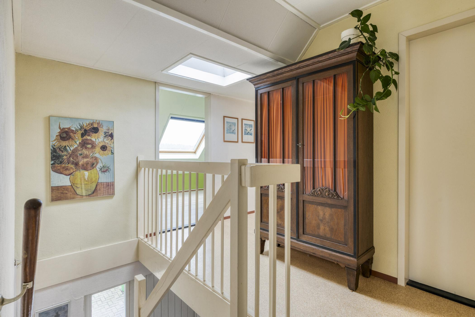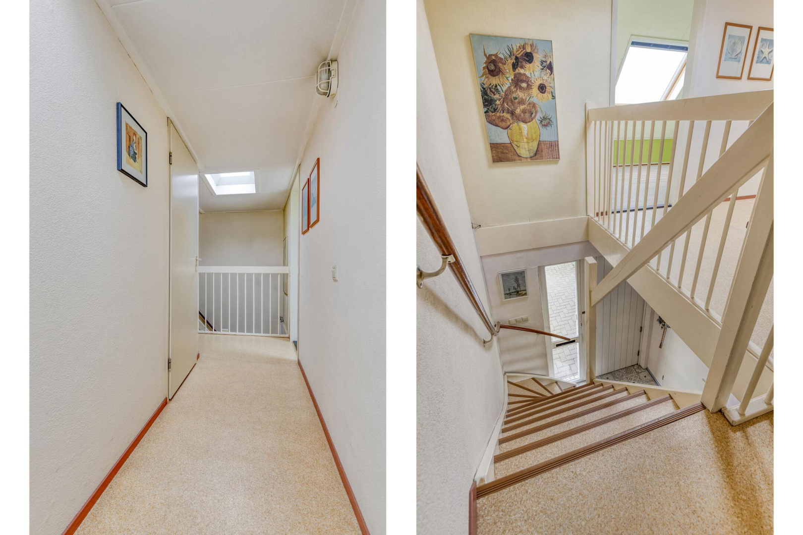 Via de trap bereikt u de overloop, waar twee lichtkoepels zorgen voor een prettige en natuurlijke lichtinval.