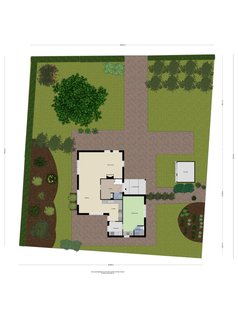 De tuin is aangelegd als een heemtuin, wat zorgt voor een natuurlijke en groene uitstraling met veel rust en privacy. Door de gevarieerde beplanting biedt de tuin beschutting en een prettige leefomgeving voor mens en natuur. Op eigen terrein is ruimte voor het parkeren van circa vier auto’s en daarnaast is er een laadpaal aanwezig.