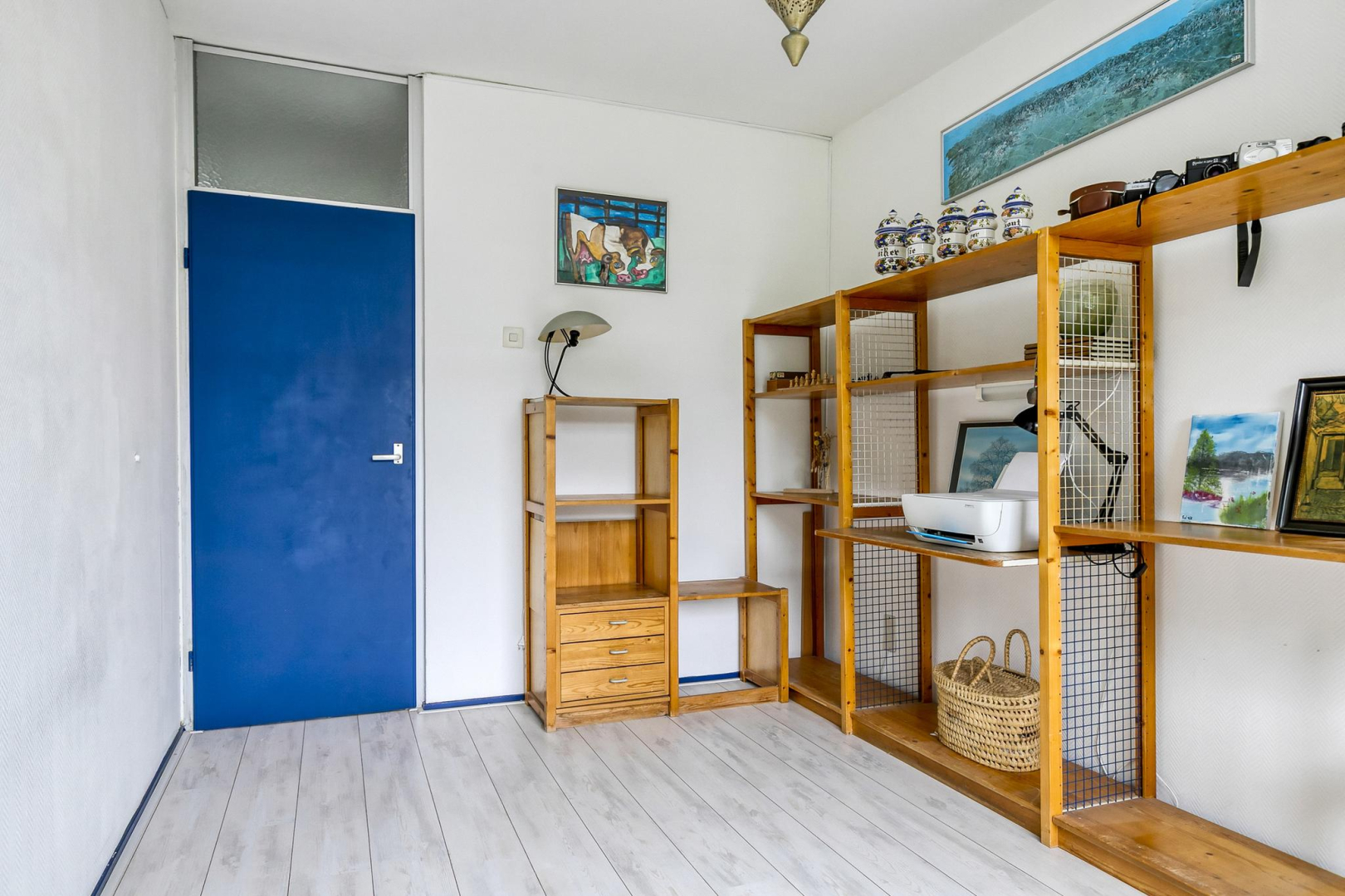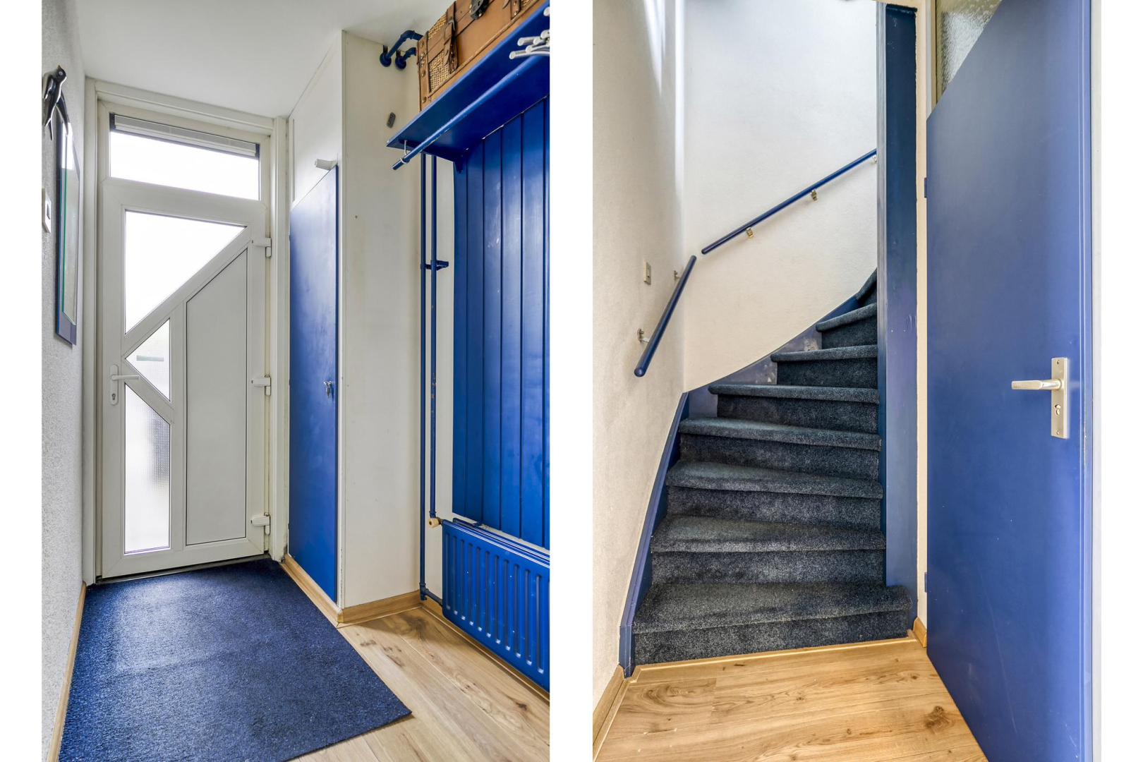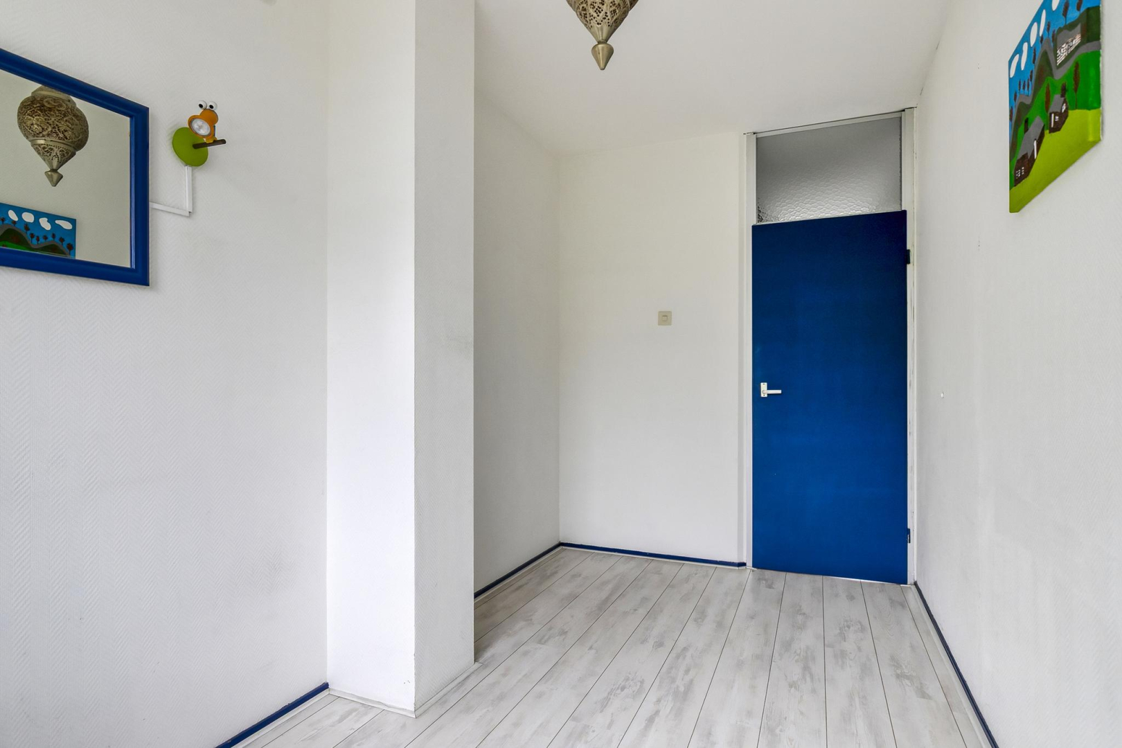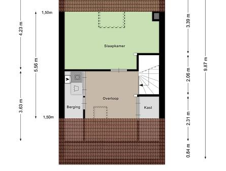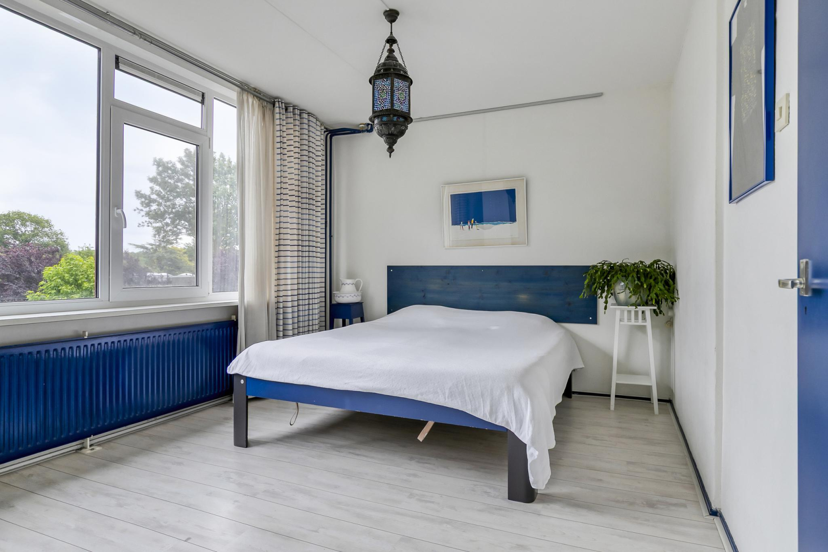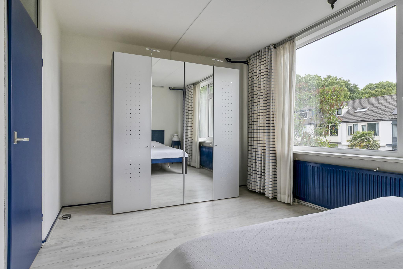 Overloop met dakraam en slim ingebouwde kasten, die zorgen voor extra opbergruimte. De wasmachine, droger, cv-ketel en omvormer voor de zonnepanelen zijn keurig weggewerkt in een inbouwkast, wat zorgt voor een strak en opgeruimd geheel. Grote separate slaapkamer voorzien van een dakraam.