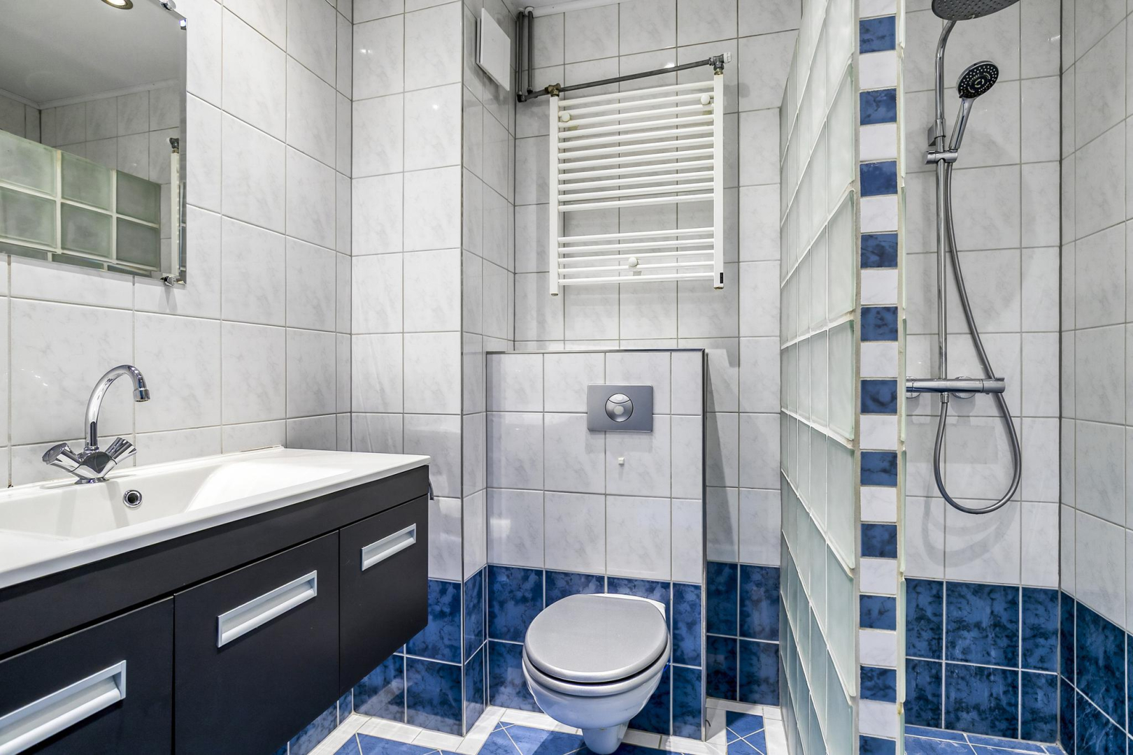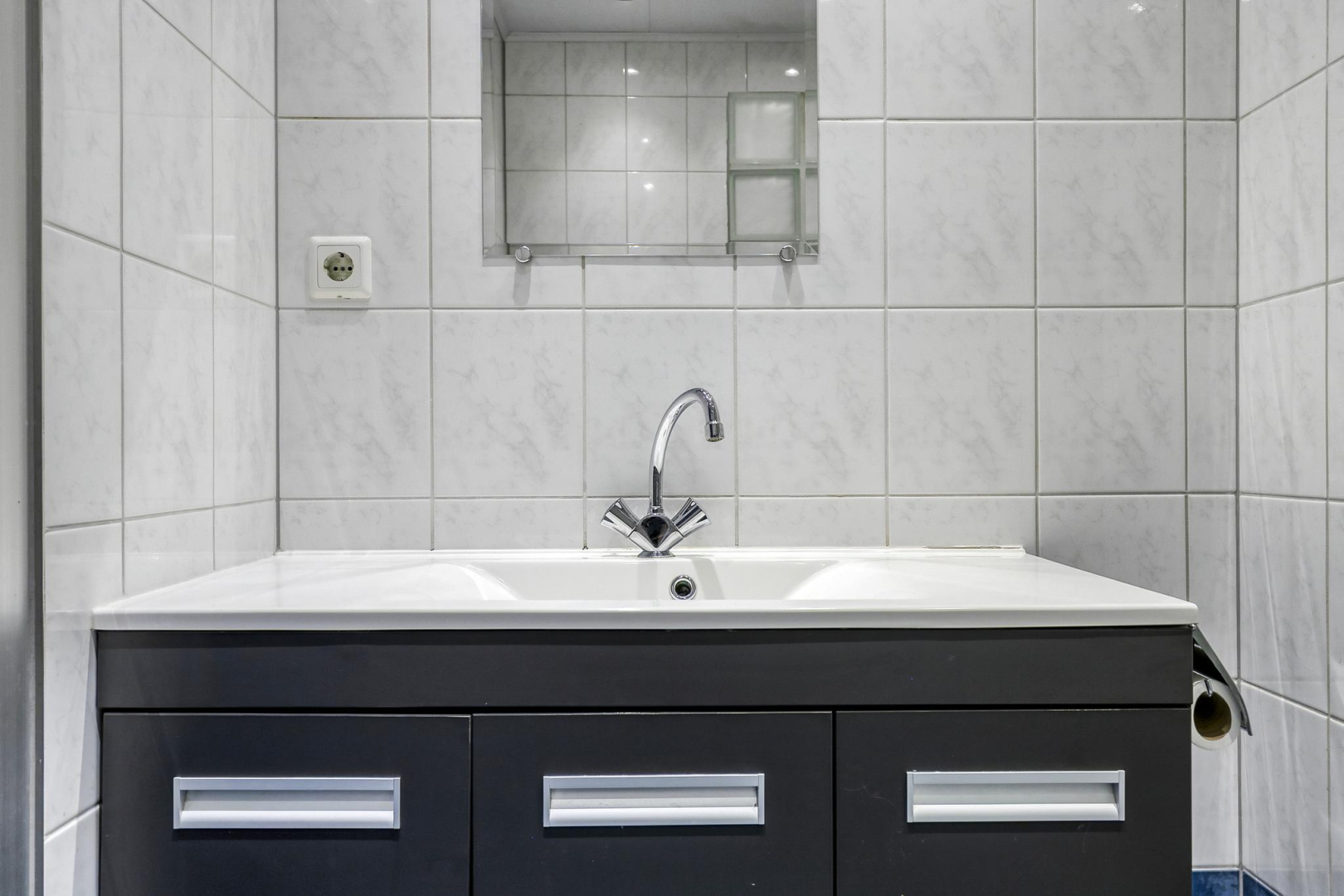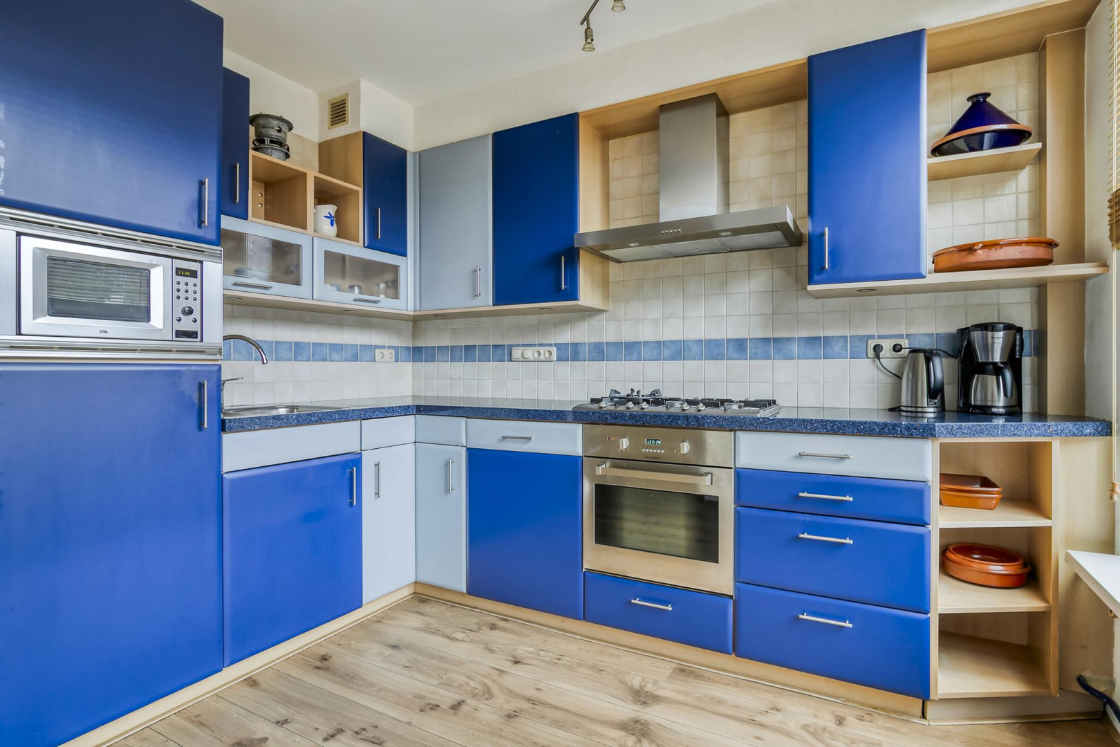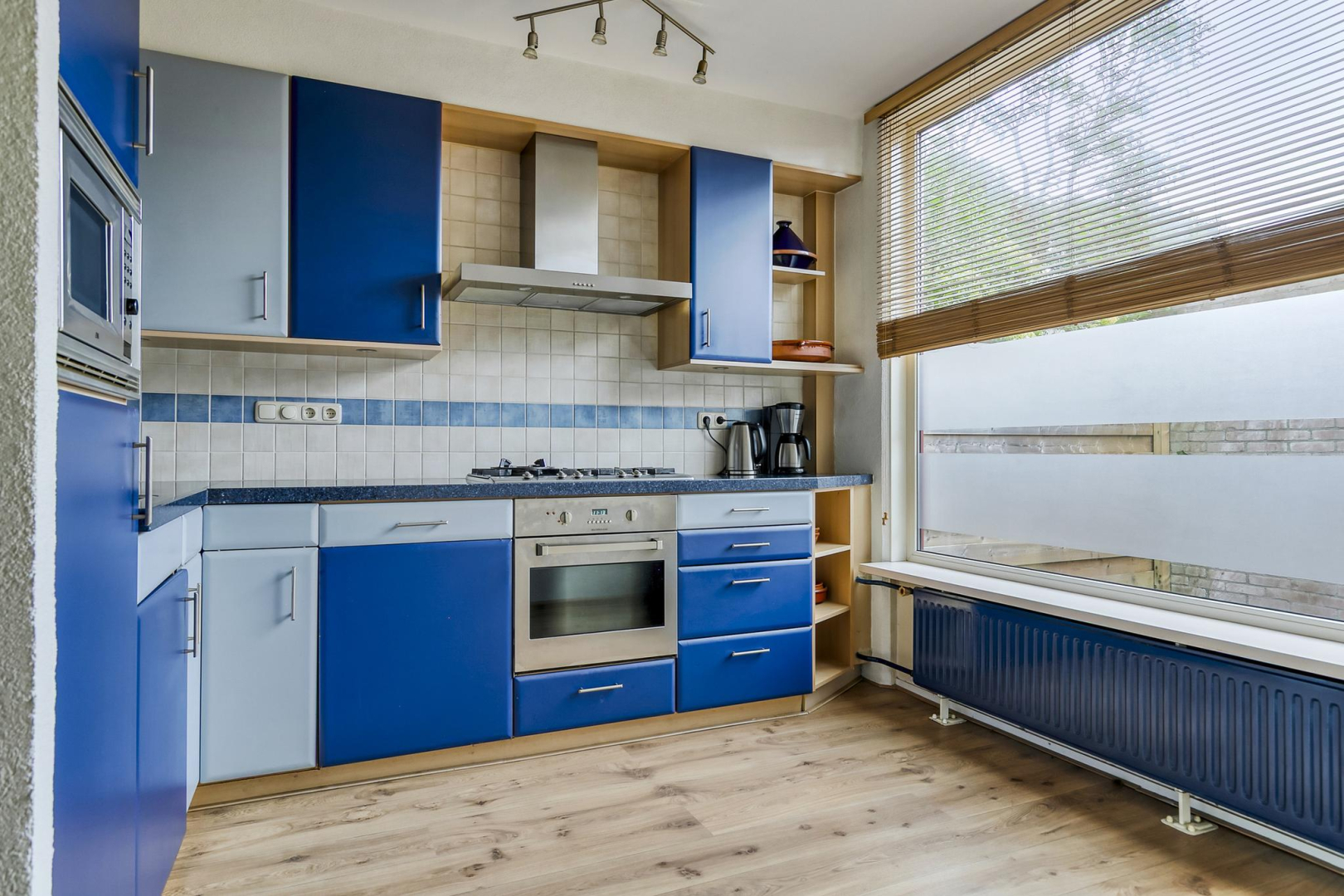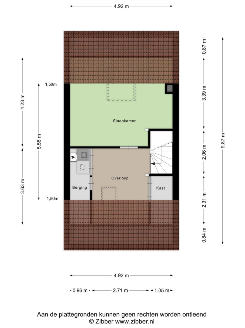 Overloop met dakraam en slim ingebouwde kasten, die zorgen voor extra opbergruimte. De wasmachine, droger, cv-ketel en omvormer voor de zonnepanelen zijn keurig weggewerkt in een inbouwkast, wat zorgt voor een strak en opgeruimd geheel. Grote separate slaapkamer voorzien van een dakraam.