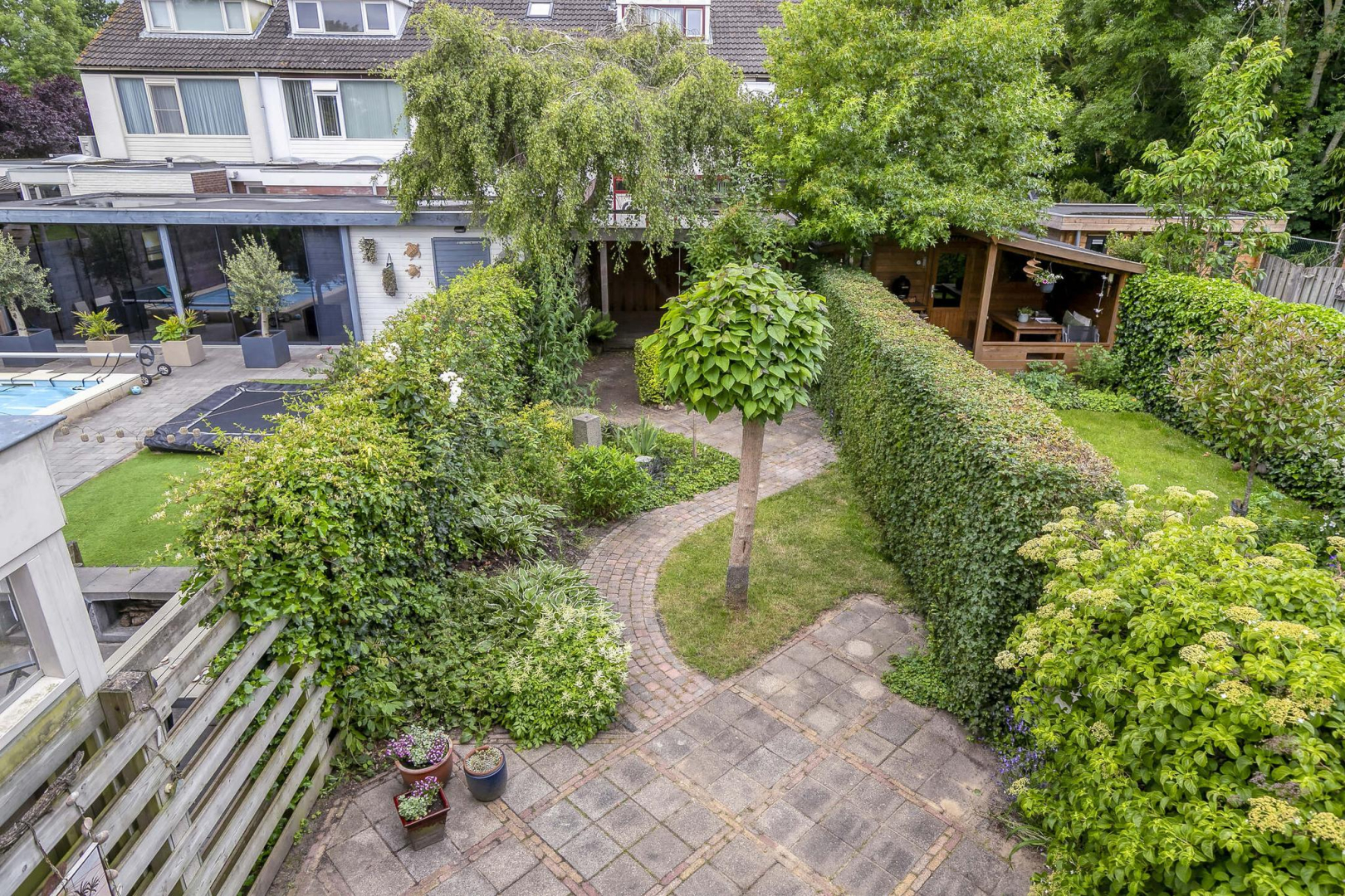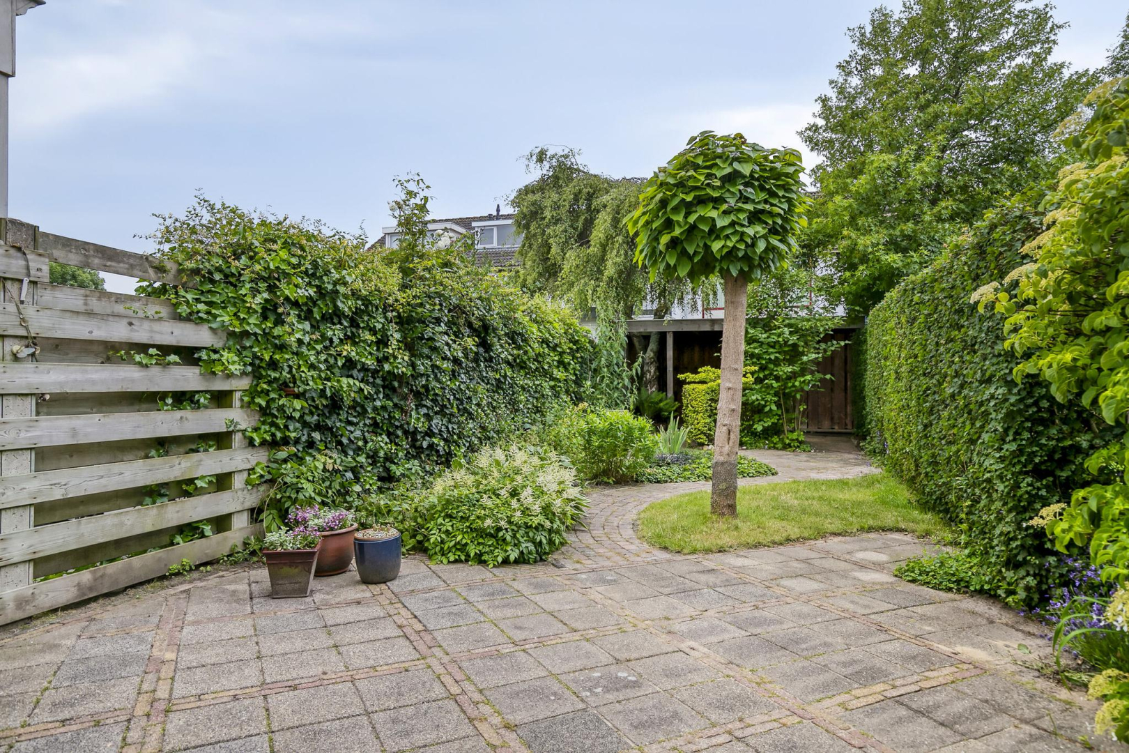 Tuin: De woning beschikt over een grote, fraai aangelegde achtertuin met volop groen en een zonnig, op het zuidwesten gelegen, terras. Achterin de tuin bevindt zich een sfeervolle veranda, een heerlijke plek om te ontspannen, in de schaduw of juist beschut op koelere dagen. Aangrenzend vindt u een praktische berging. Aan de voorzijde van de woning ligt een voortuin met een extra stenen berging.