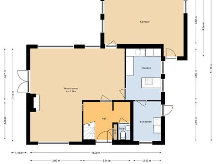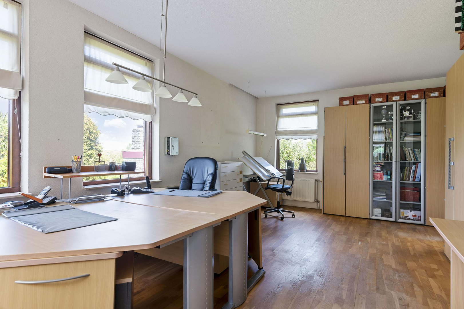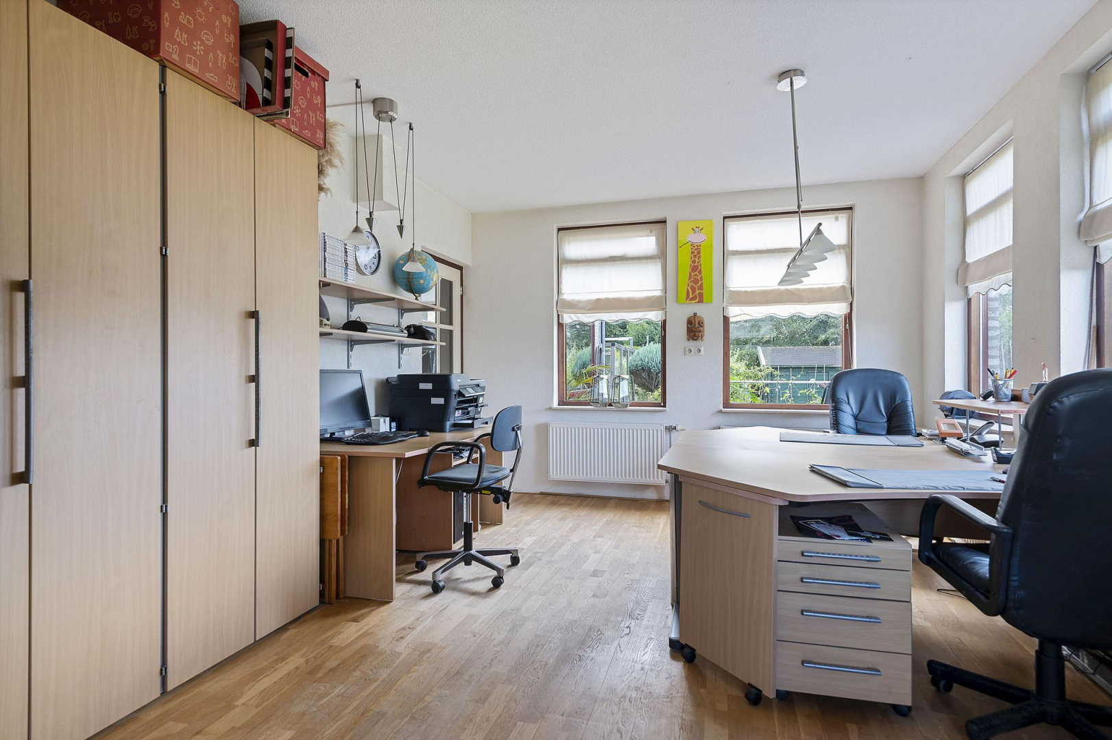 Zowel vanuit de woonkamer als via een eigen opgang aan de zijkant van de woning is de kantoor/werk/hobbyruimte bereikbaar. Deze ruimte zou tevens kunnen worden ingericht als bijvoorbeeld slaapkamer of speelkamer voor de kinderen.