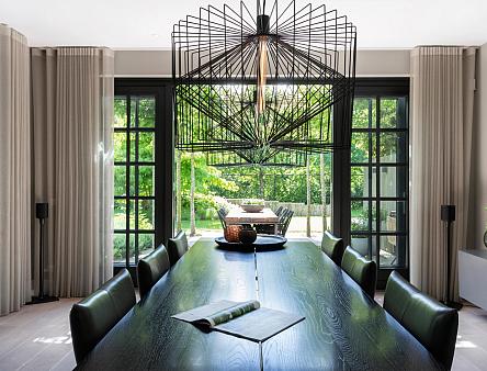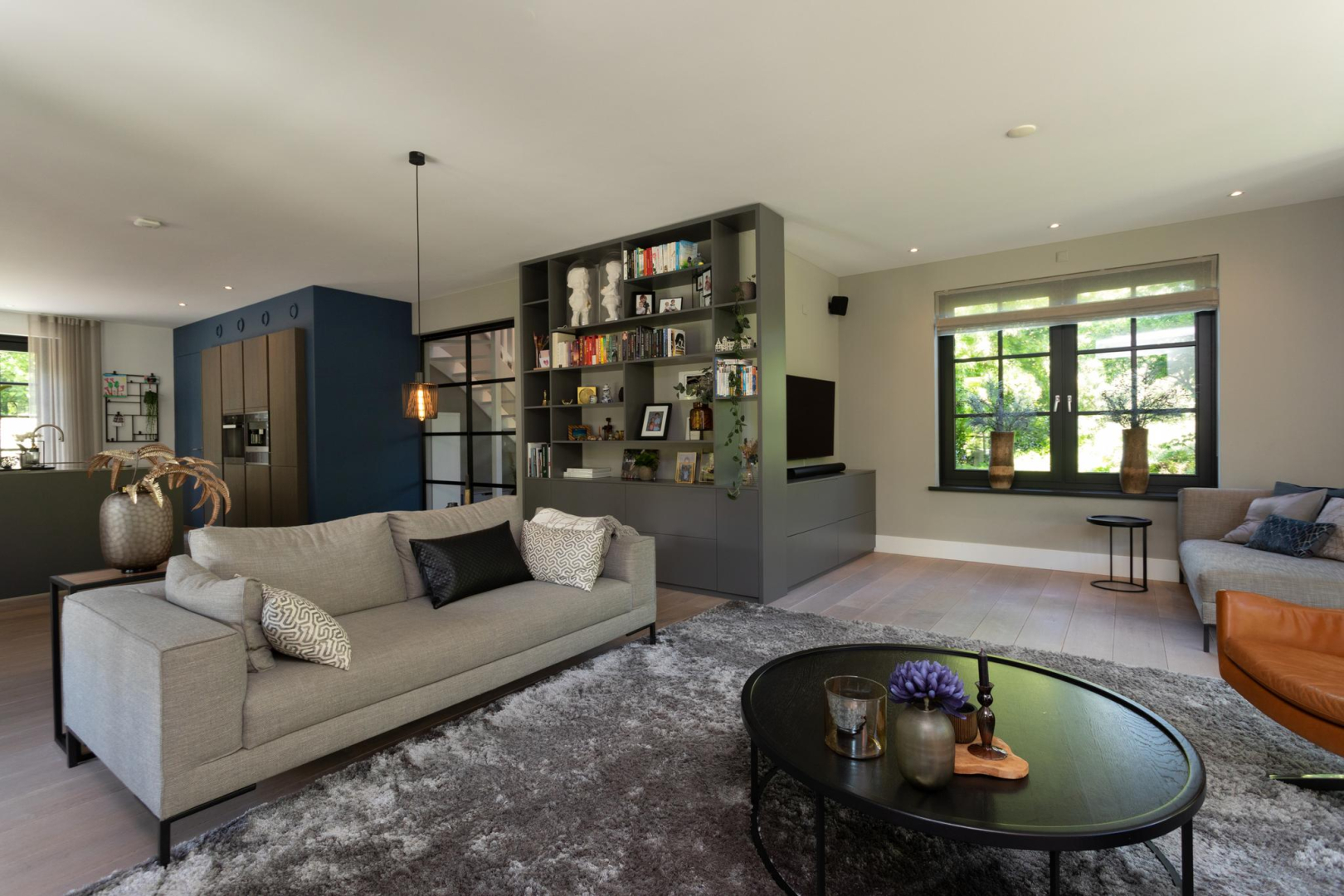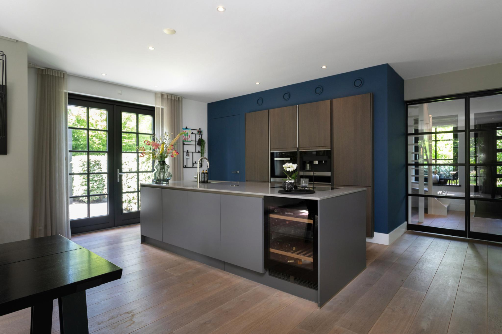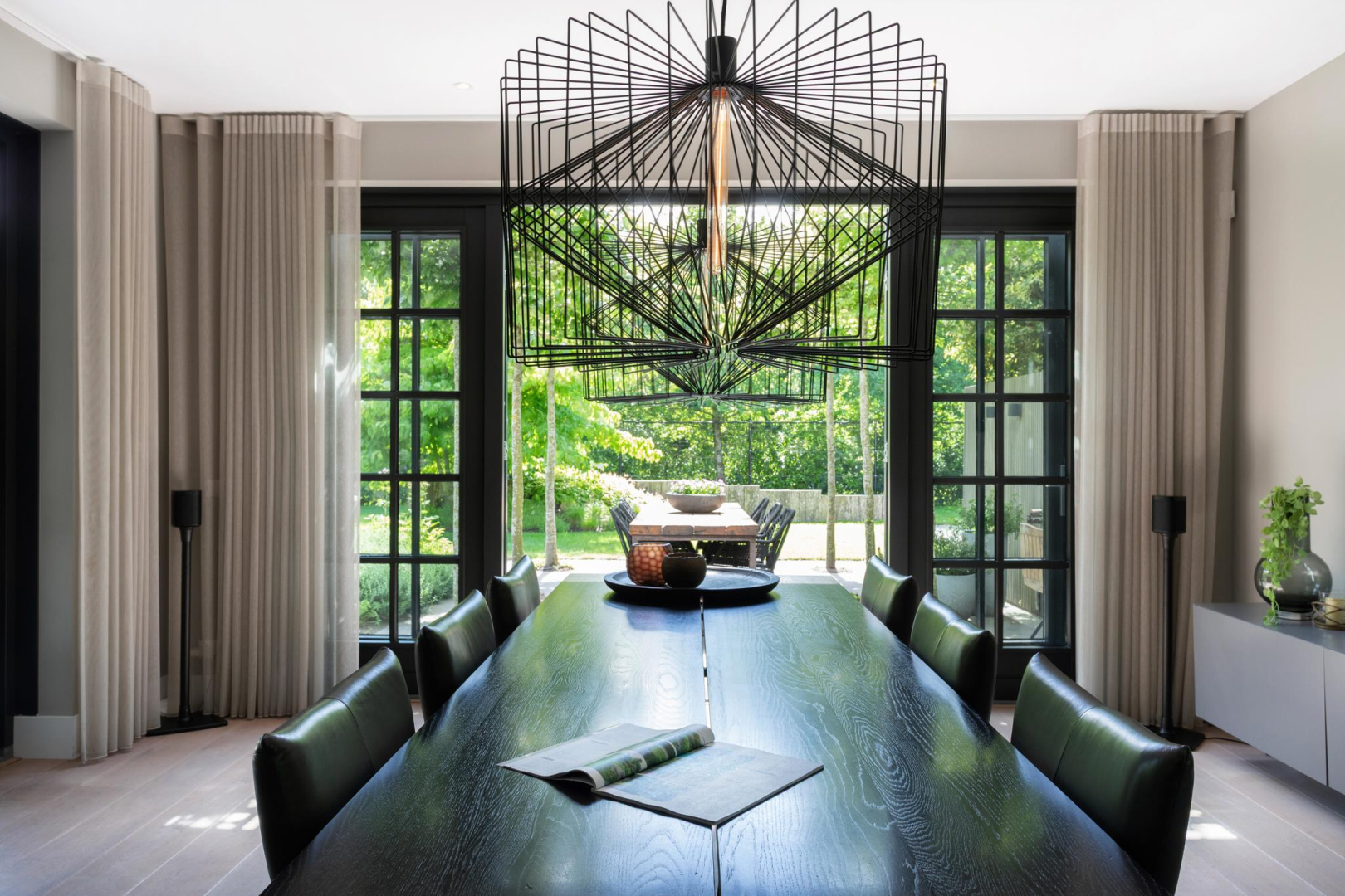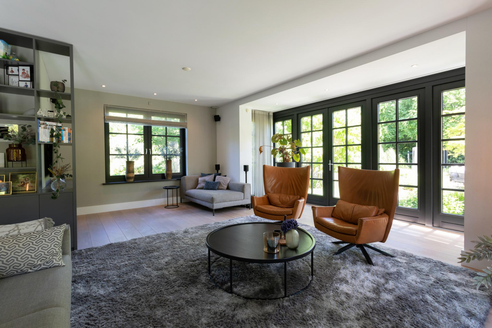 Bij binnenkomst wordt u verwelkomd in een ruime entree met stijlvolle garderobe, een maatwerkkast voor schoenen en een elegant toilet met wandcloset en fonteinmeubel. Dubbele stalen taatsdeuren geven toegang tot het hart van de woning: de indrukwekkende leefkeuken en de royale living. De zeer ruime woonkamer ademt sfeer en luxe, met een vast wandmeubel, aparte tv-hoek, voorzien van een surround audiosysteem, een charmante erker met openslaande deuren en rondom de living diverse dubbele deuren die zorgen voor een directe verbinding met de onder architectuur aangelegde tuin. Dankzij de hoge plafonds en de overvloed aan ramen geniet u van een zee aan licht. De royale leefruimte is uitgerust met een gecombineerde gashaard, terwijl u buiten, onder de veranda, sfeervol kunt genieten van de hout gestookte haard. De gehele begane grond is voorzien van eiken lamelparket en comfortabele vloerverwarming die tevens kan koelen – een genot in alle jaargetijden. De woning is uitgerust met een domotica systeem, waardoor verlichting, temperatuur en veiligheid eenvoudig te bedienen zijn en is naar wens uit te breiden.