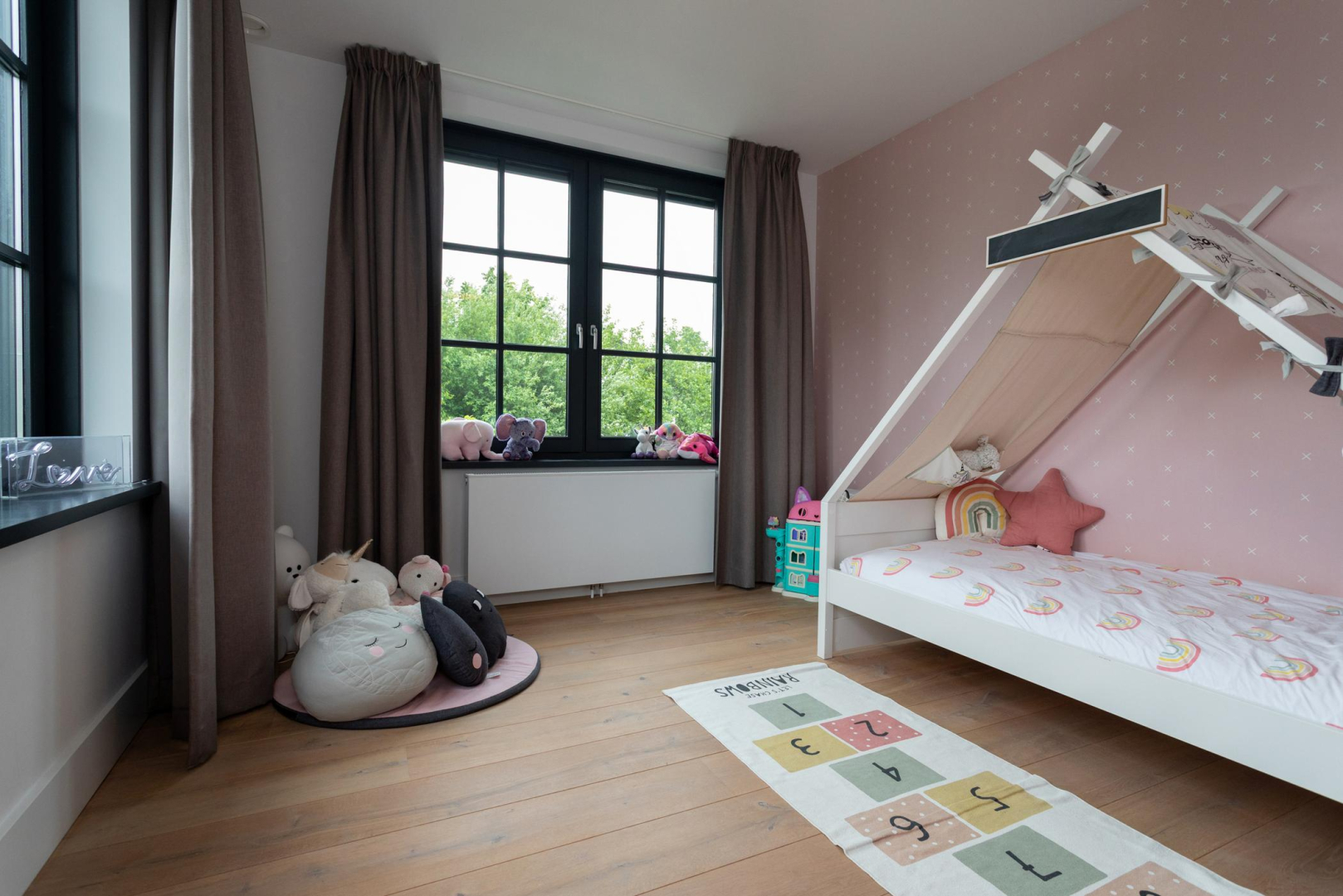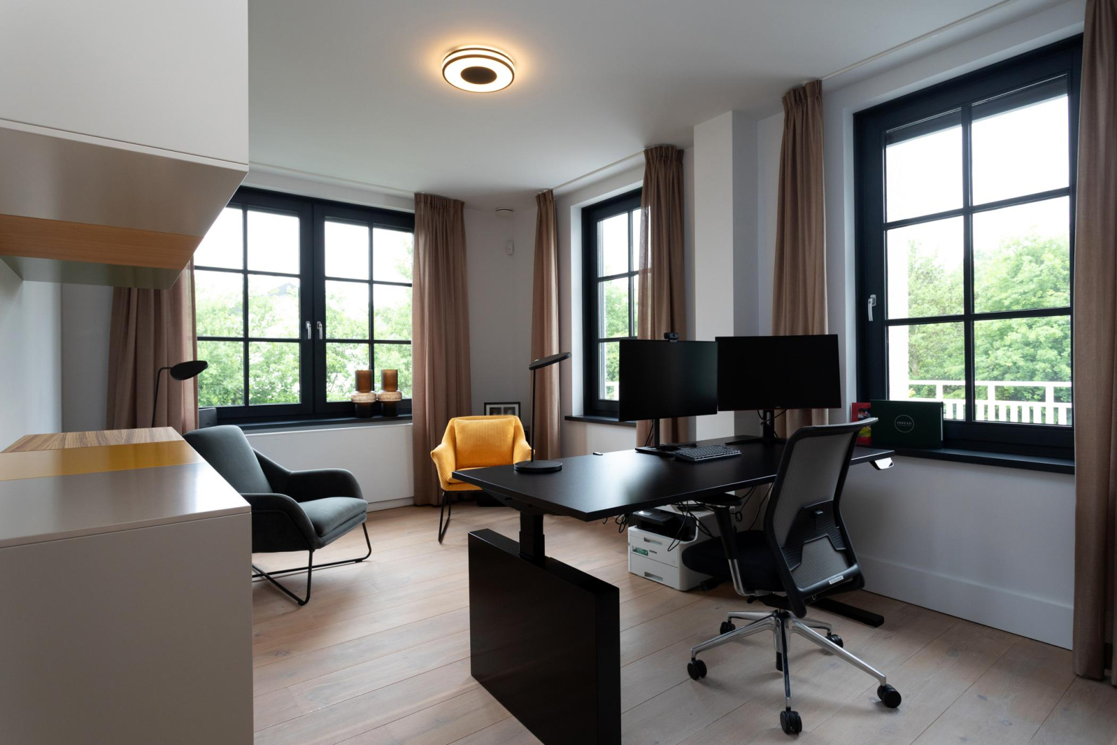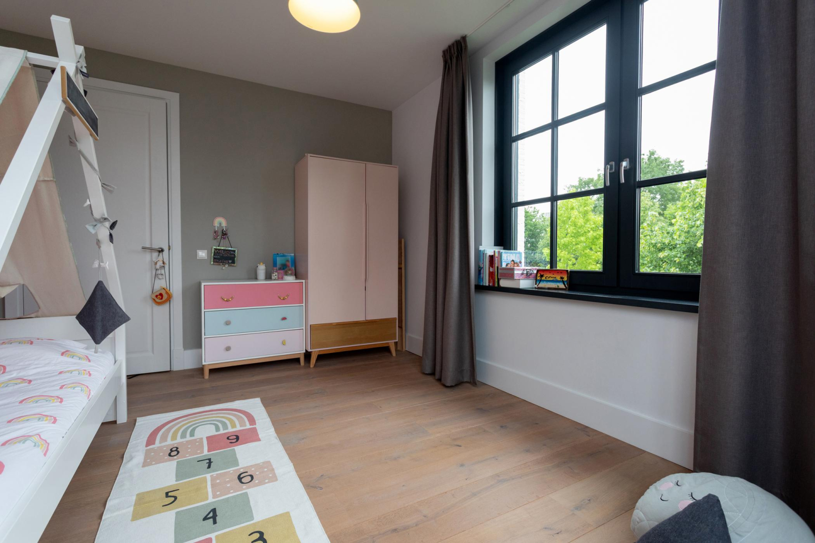 De tweede verdieping telt nog eens twee volwaardige slaapkamers, beide voorzien van airconditioning, veel lichtinval en volop extra bergruimte achter de rondom geplaatste knieschotten. Er is een aparte technische ruimte met aansluitingen voor was- en droogapparatuur. Een derde badkamer completeert deze verdieping, uitgerust met inloopdouche, wandcloset, dubbele wastafelmeubel en een raam voor daglicht.