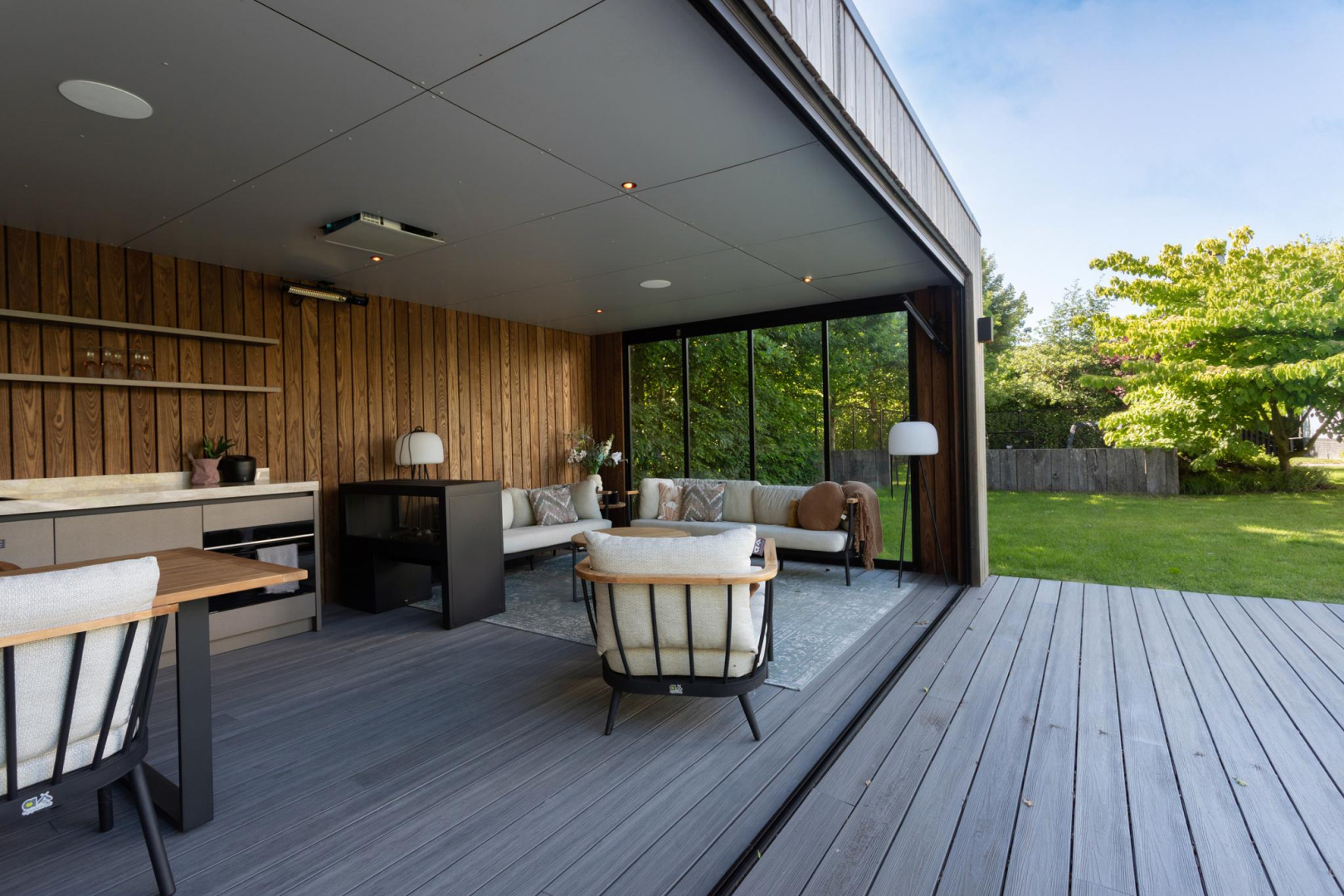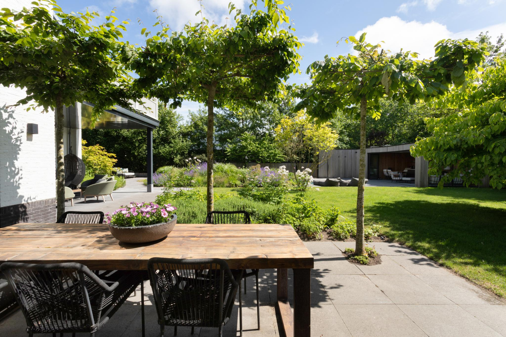 De tuin is een oase van rust en luxe, ontworpen door een gerenommeerd landschaps- en tuinarchitect. Geniet van het verwarmde zwembad met een automatisch roldek van solar lamellen, ontspan op een van de meerdere zon- en schaduwterrassen, of beleef plezier op het professioneel aangelegde voetbalveldje. De sfeervolle buitenverlichting, het volautomatische beregeningssysteem, de groene- en kleurrijke borders en volwassen bomen maken van elke dag een vakantie. Dat deze tuin goed is gelukt, blijkt ook uit de juni editie van het blad Groei&Bloei. De prachtige tuin is te zien in de rubriek "Goed gelukt". Het luxe poolhouse is een echte blikvanger en een paradijs voor liefhebbers van het buitenleven. Compleet uitgerust met een hoogwaardige buitenkeuken inclusief koelkast, vaatwasser, combi-oven, Quooker 3-in-1, een beamer met hoogwaardige inbouw Sonos plafondspeakers voor filmavonden, een apart toilet, praktische bergkast en zelfs een buitendouche met warm en koud water – hier komen stijl en functionaliteit perfect samen. De vrijstaande stenen garage is voorzien van een vaste kastenwand – ideaal voor het opbergen van uw tuingereedschap. De oprit biedt volop parkeergelegenheid en is uitgerust met een laadpaal voor elektrische voertuigen. Een afsluitbaar hek en een separate looppoort zorgen voor privacy en veiligheid.