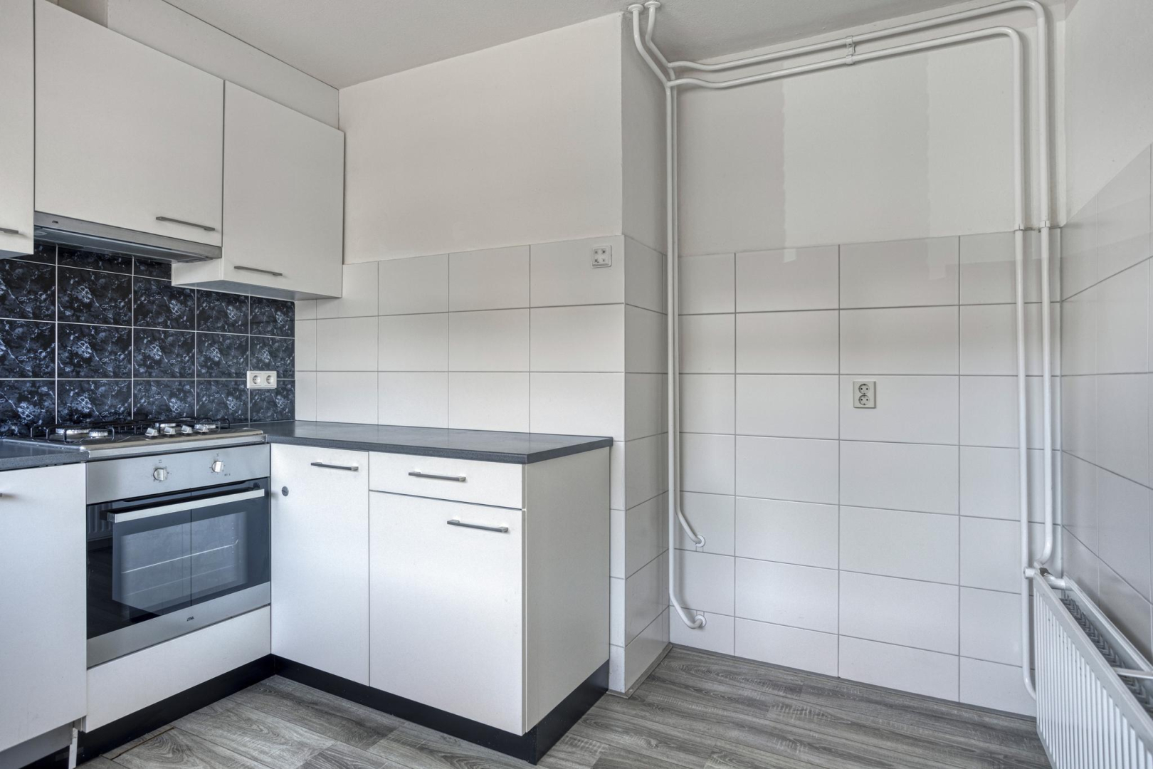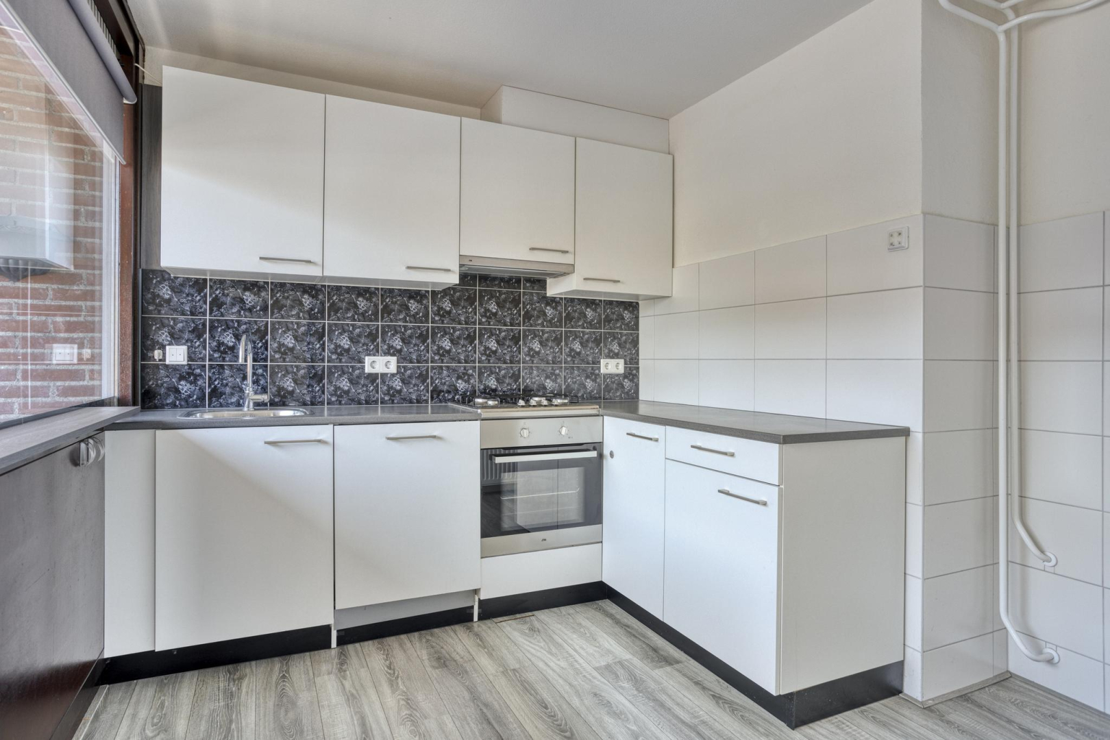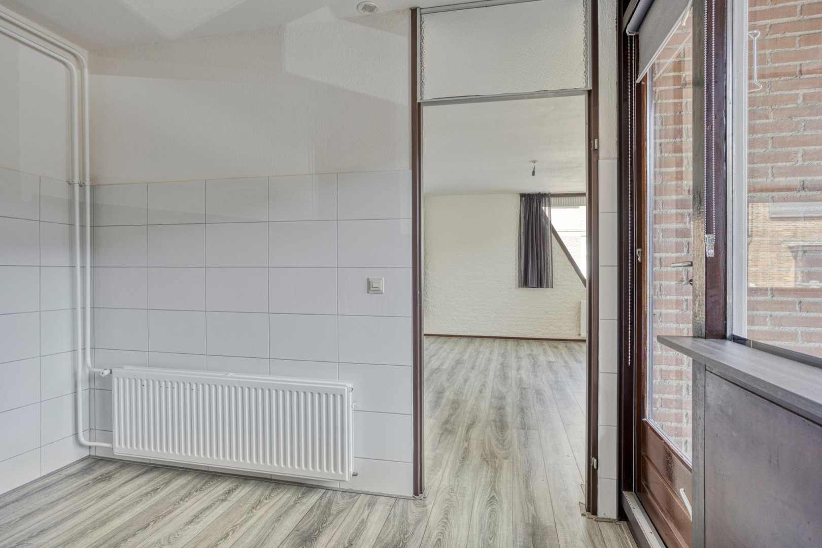 1e Verdieping: Entree/hal, meterkast, trapopgang naar de verdieping, trapkast en toilet met fonteintje. De ruime woonkamer is lekker licht door de speelse raampartijen en heeft een deur naar het Frans balkon. De keuken, in hoekopstelling, is heerlijk ruim en voorzien van een 4-pits gaskookplaat, afzuigkap, oven en vaatwasmachine. Vanuit de keuken is er toegang tot het balkon met uitzicht op het gezellige Marktplein. Het balkon is voorzien van een elektrisch zonnescherm. Op deze verdieping ligt een laminaatvloer.