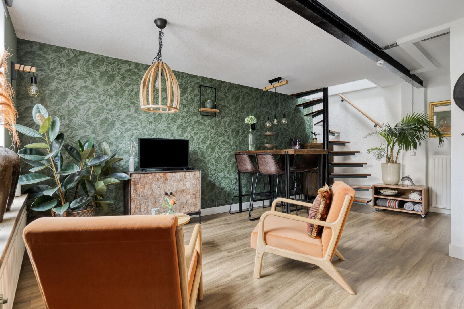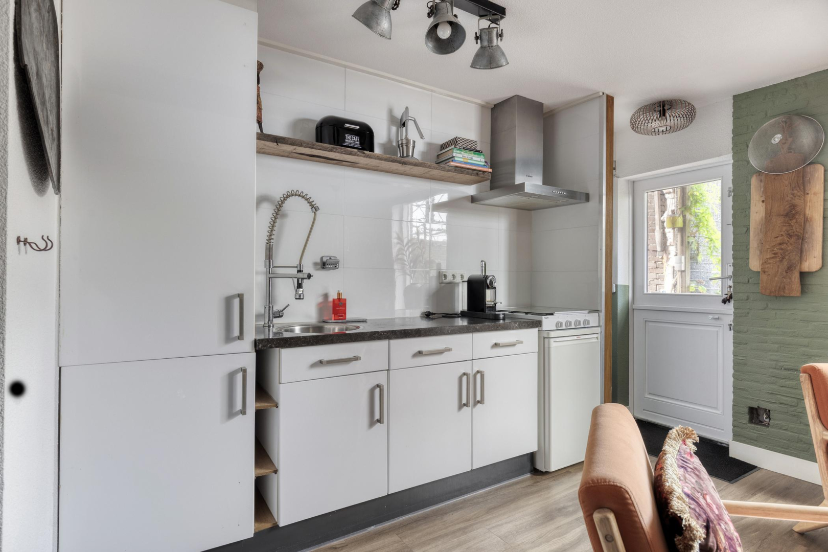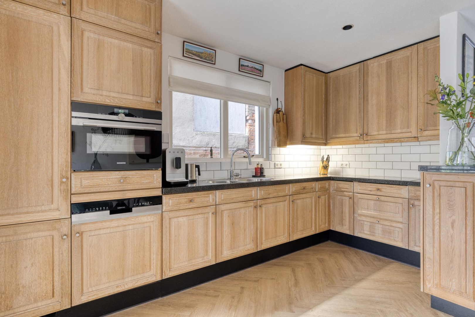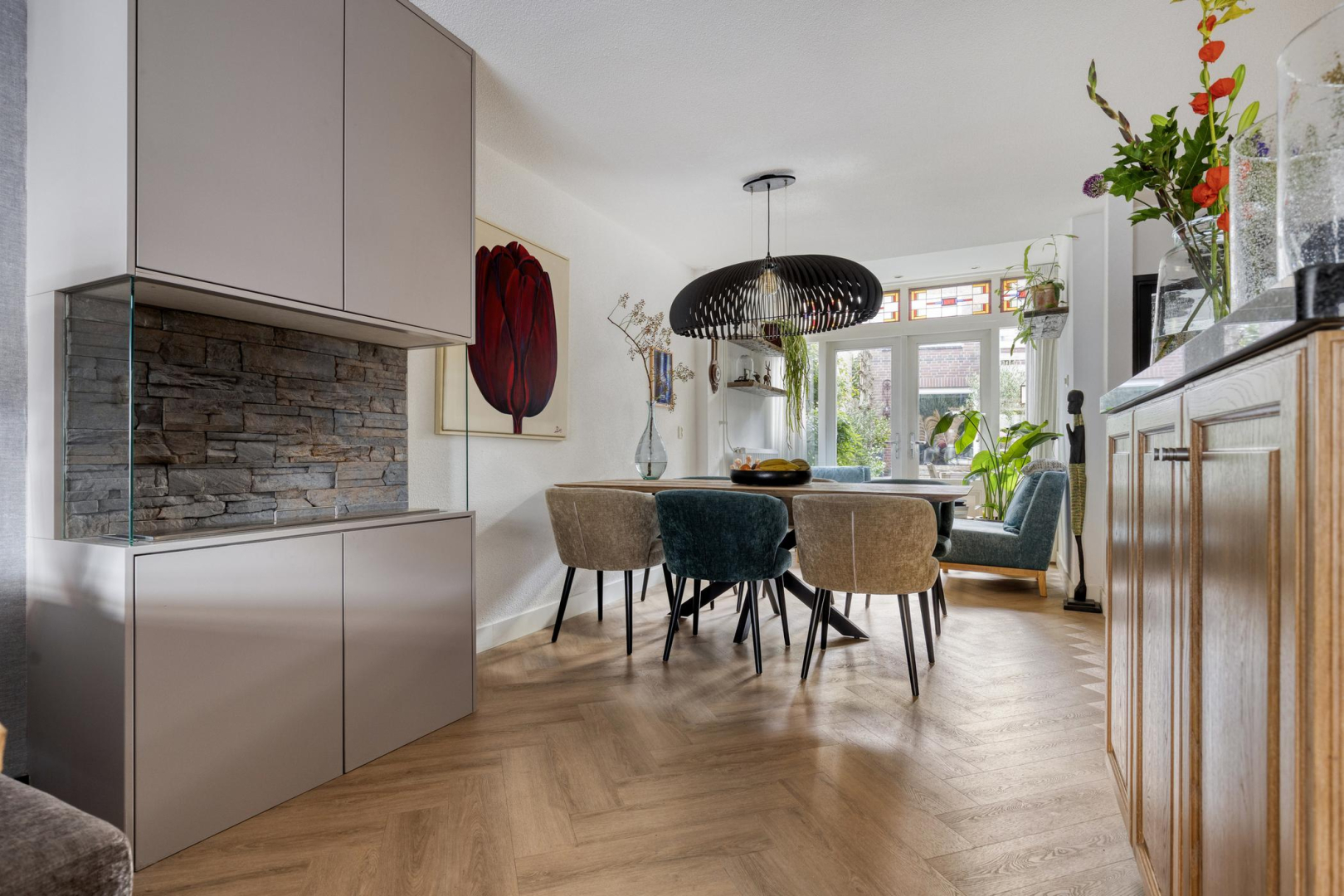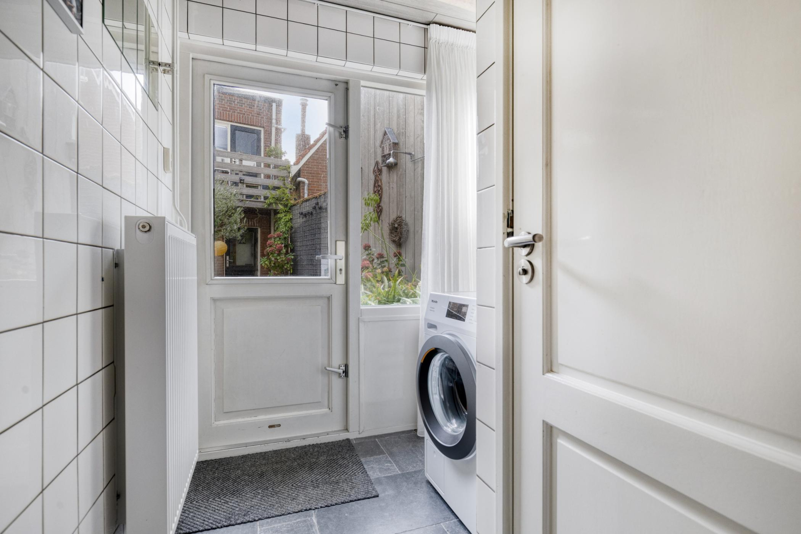 Deze sfeervolle woning is voorzien van een eigen, met een rolluik, af te sluiten portiek. De hal verwelkomt je met een garderobe en biedt toegang tot de lichte en uitnodigende woonkamer. De woonkamer straalt gezelligheid uit, met een groot raam aan de voorzijde voorzien van prachtige glas-in-loodramen aan de bovenzijde, verwerkt tussen dubbelglas voor optimale isolatie. Een sfeervolle gelhaard maakt het geheel compleet en zorgt voor een warme, huiselijke ambiance. Via openslaande deuren aan de achterzijde, met ook glas-in-loodramen aan de bovenzijde, loop je direct de achtertuin in, wat een fijne verbinding tussen binnen en buiten creëert. De open keuken is een lust voor het oog en zeer functioneel ingericht. De massief eiken kastdeuren en het granieten aanrechtblad vormen een stijlvolle basis, terwijl diverse inbouwapparatuur, zoals een keramisch kookplaat, combi-oven, koel-/vriescombinatie en vaatwasser, het koken en bereiden van maaltijden aangenaam en efficiënt maken. Aansluitend aan de keuken bevindt zich een praktische bijkeuken, alwaar tevens het toilet, aansluitingen voor wasapparatuur en de opstelplaats voor de cv-ketel. Ook vanuit de bijkeuken is de achtertuin direct bereikbaar, wat extra gemak en functionaliteit biedt. De leefruimte is voorzien van een pvc visgraadvloer, strakke plafonds en overschilderbare wandafwerking.