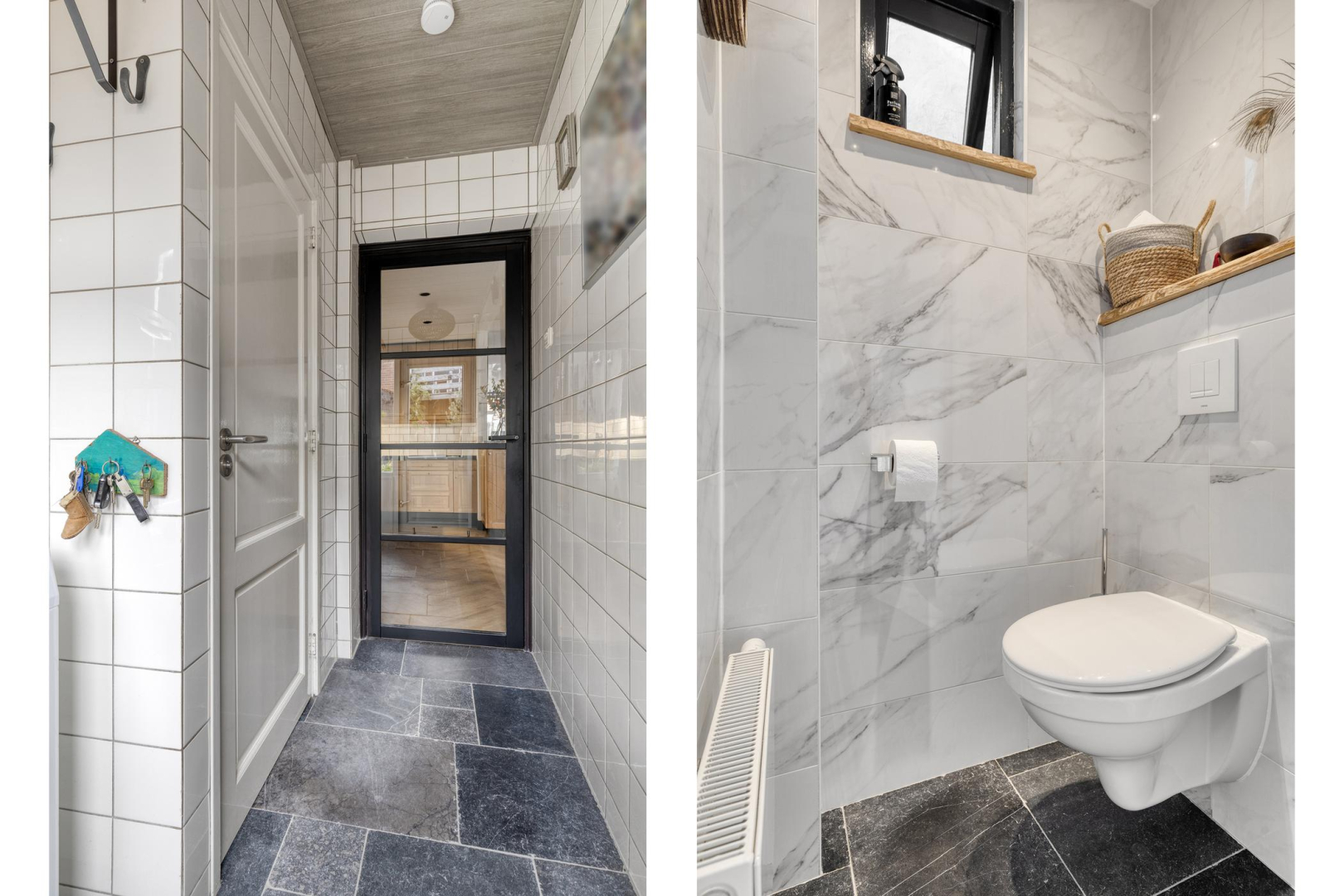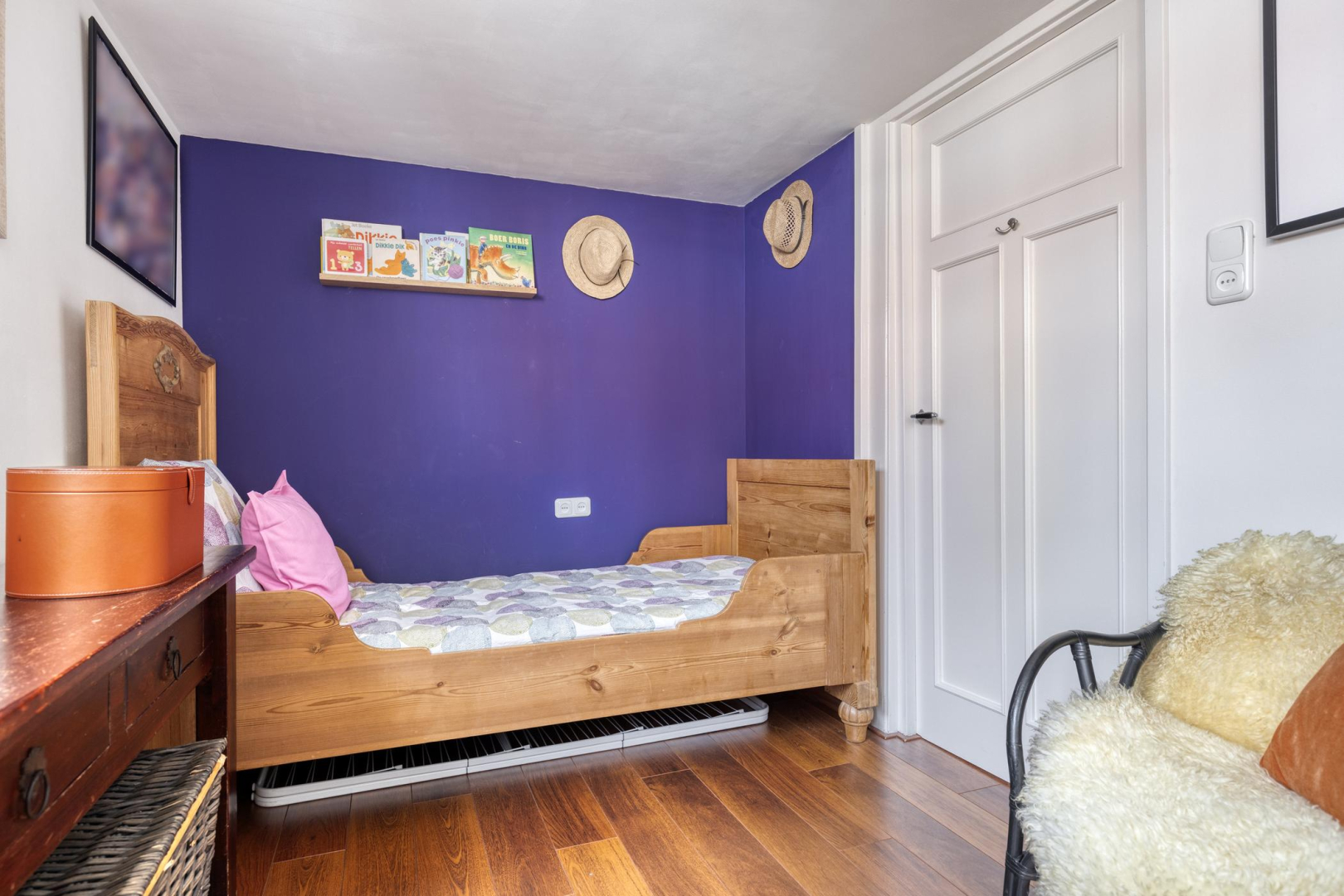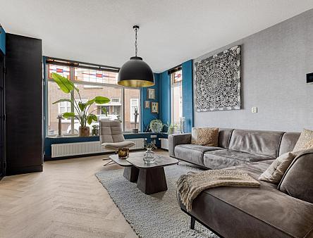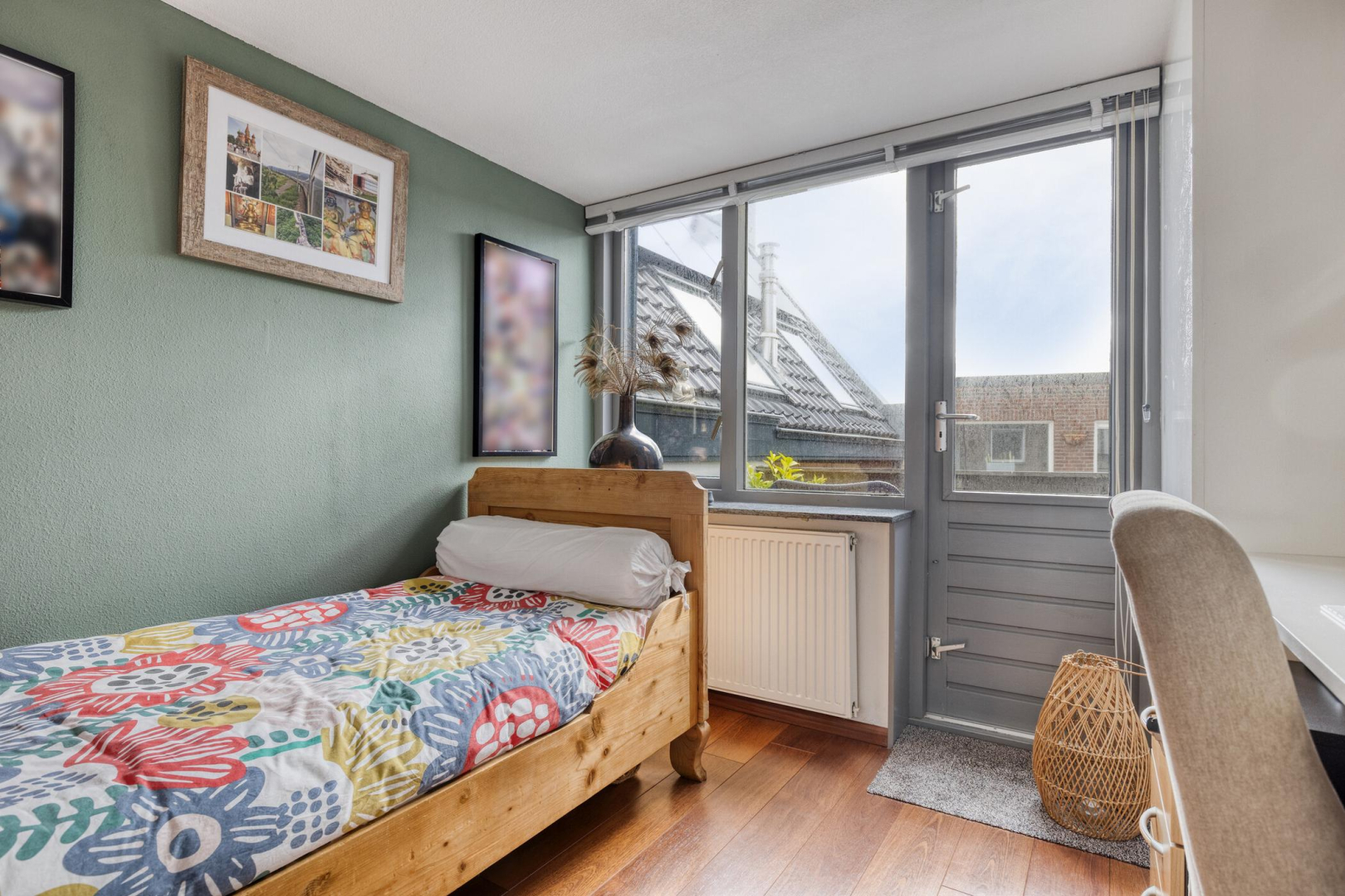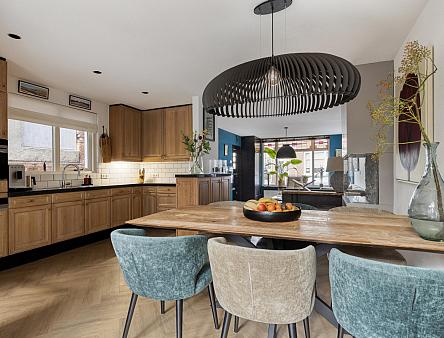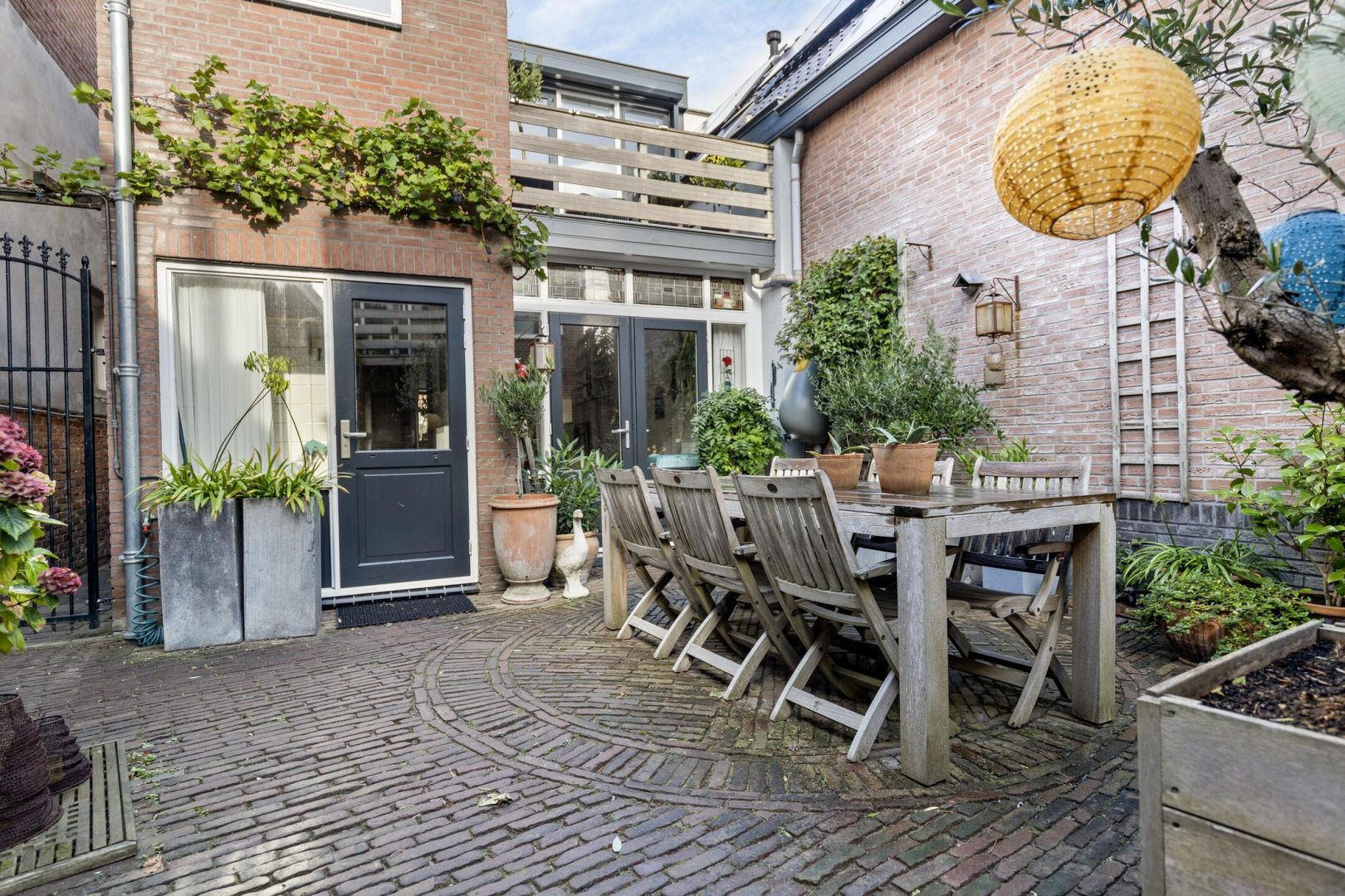 Deze sfeervolle woning is voorzien van een eigen, met een rolluik, af te sluiten portiek. De hal verwelkomt je met een garderobe en biedt toegang tot de lichte en uitnodigende woonkamer. De woonkamer straalt gezelligheid uit, met een groot raam aan de voorzijde voorzien van prachtige glas-in-loodramen aan de bovenzijde, verwerkt tussen dubbelglas voor optimale isolatie. Een sfeervolle gelhaard maakt het geheel compleet en zorgt voor een warme, huiselijke ambiance. Via openslaande deuren aan de achterzijde, met ook glas-in-loodramen aan de bovenzijde, loop je direct de achtertuin in, wat een fijne verbinding tussen binnen en buiten creëert. De open keuken is een lust voor het oog en zeer functioneel ingericht. De massief eiken kastdeuren en het granieten aanrechtblad vormen een stijlvolle basis, terwijl diverse inbouwapparatuur, zoals een keramisch kookplaat, combi-oven, koel-/vriescombinatie en vaatwasser, het koken en bereiden van maaltijden aangenaam en efficiënt maken. Aansluitend aan de keuken bevindt zich een praktische bijkeuken, alwaar tevens het toilet, aansluitingen voor wasapparatuur en de opstelplaats voor de cv-ketel. Ook vanuit de bijkeuken is de achtertuin direct bereikbaar, wat extra gemak en functionaliteit biedt. De leefruimte is voorzien van een pvc visgraadvloer, strakke plafonds en overschilderbare wandafwerking.