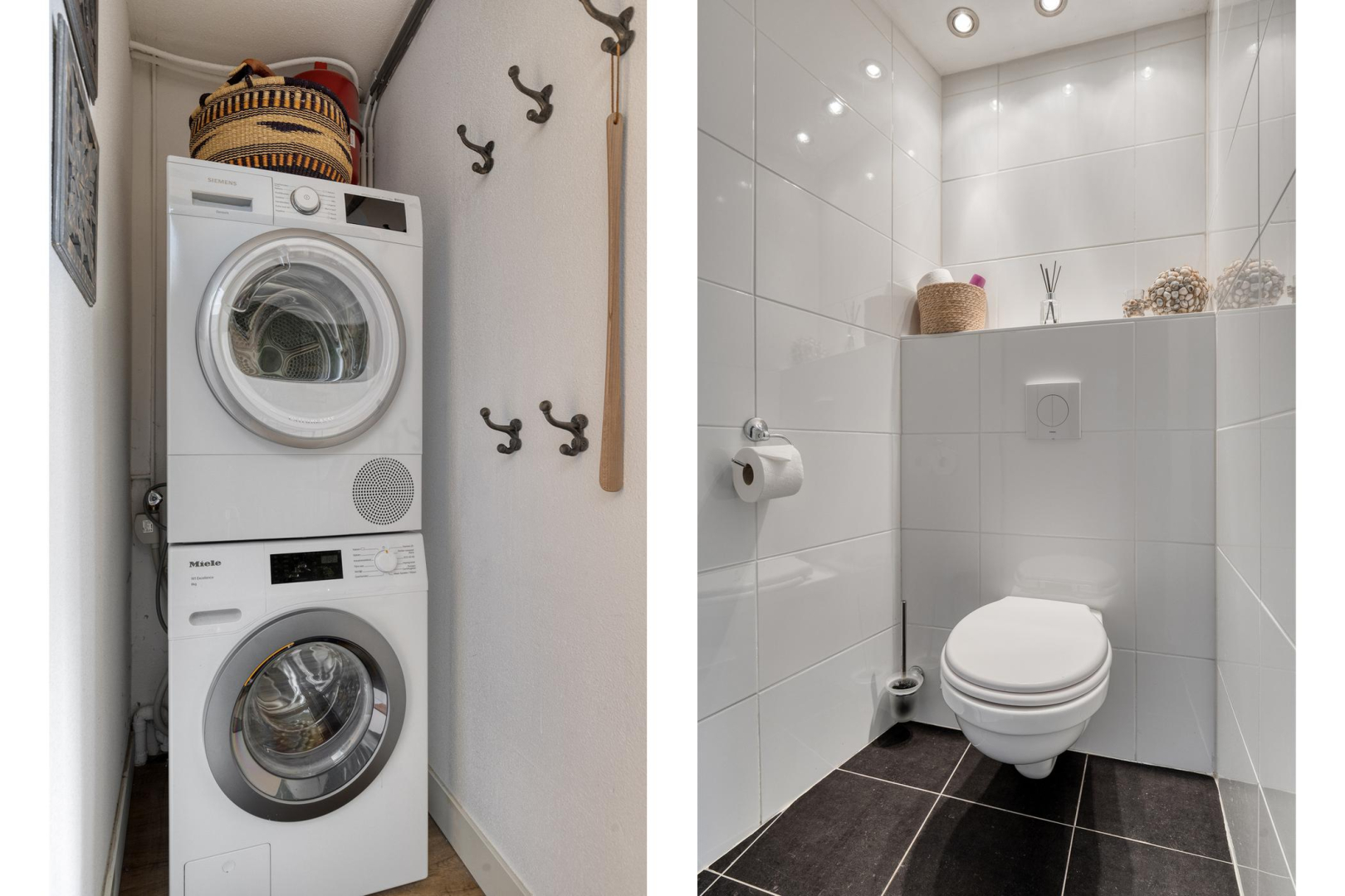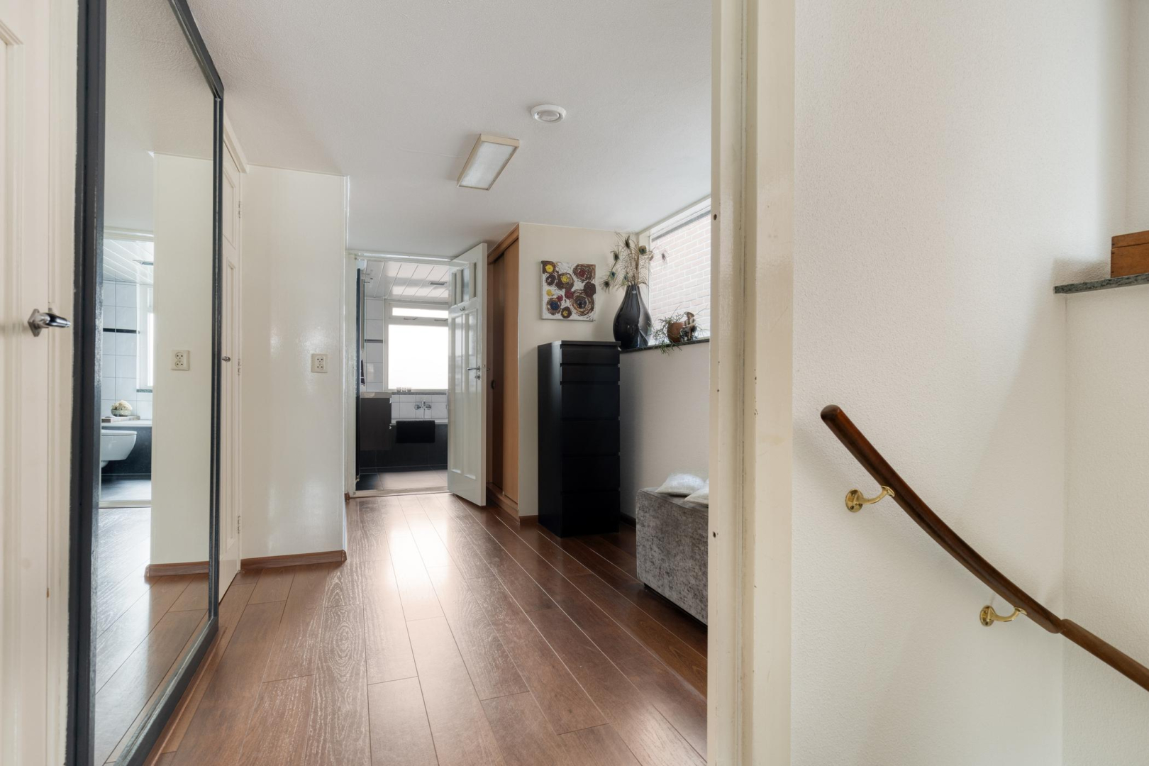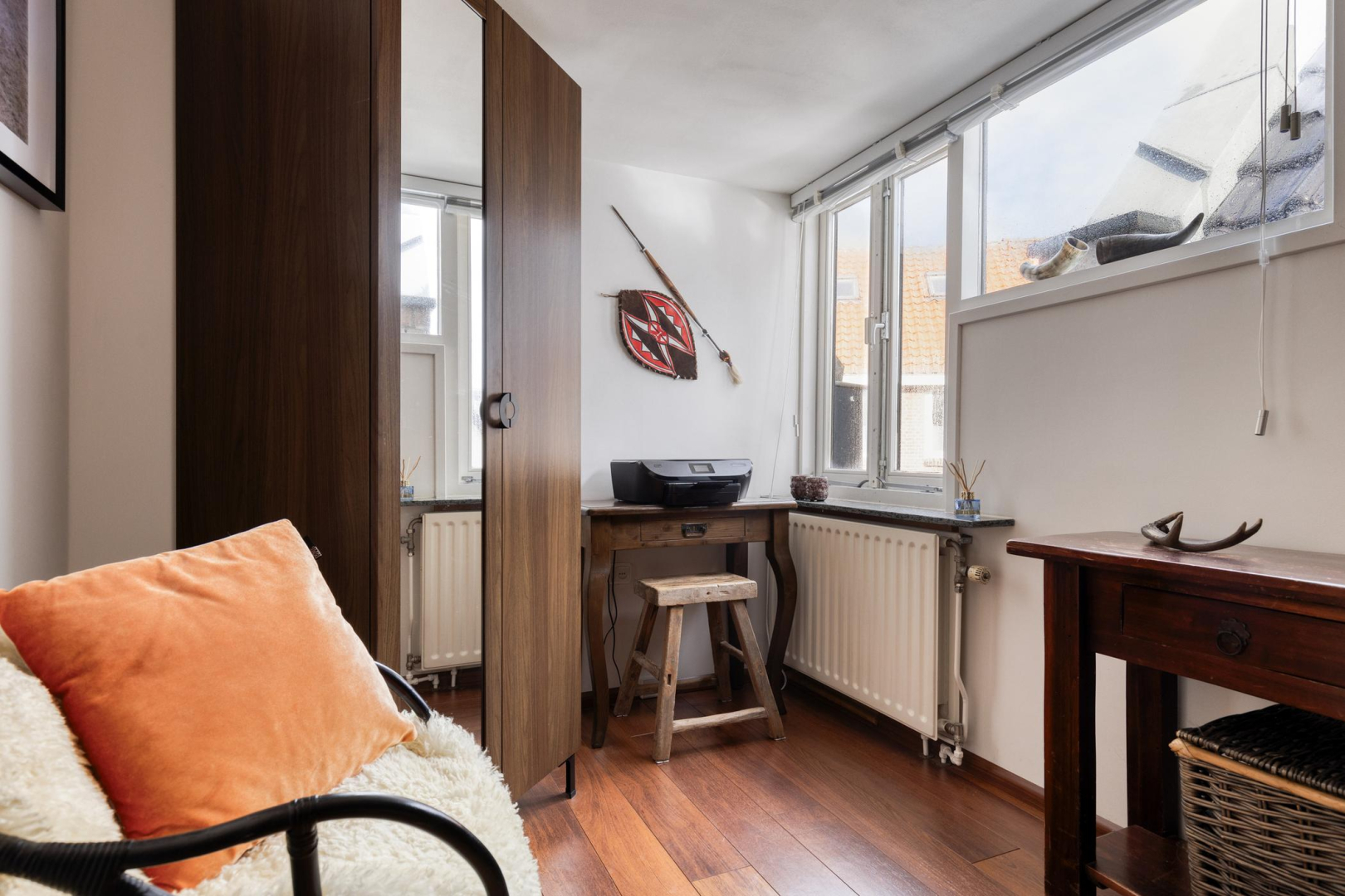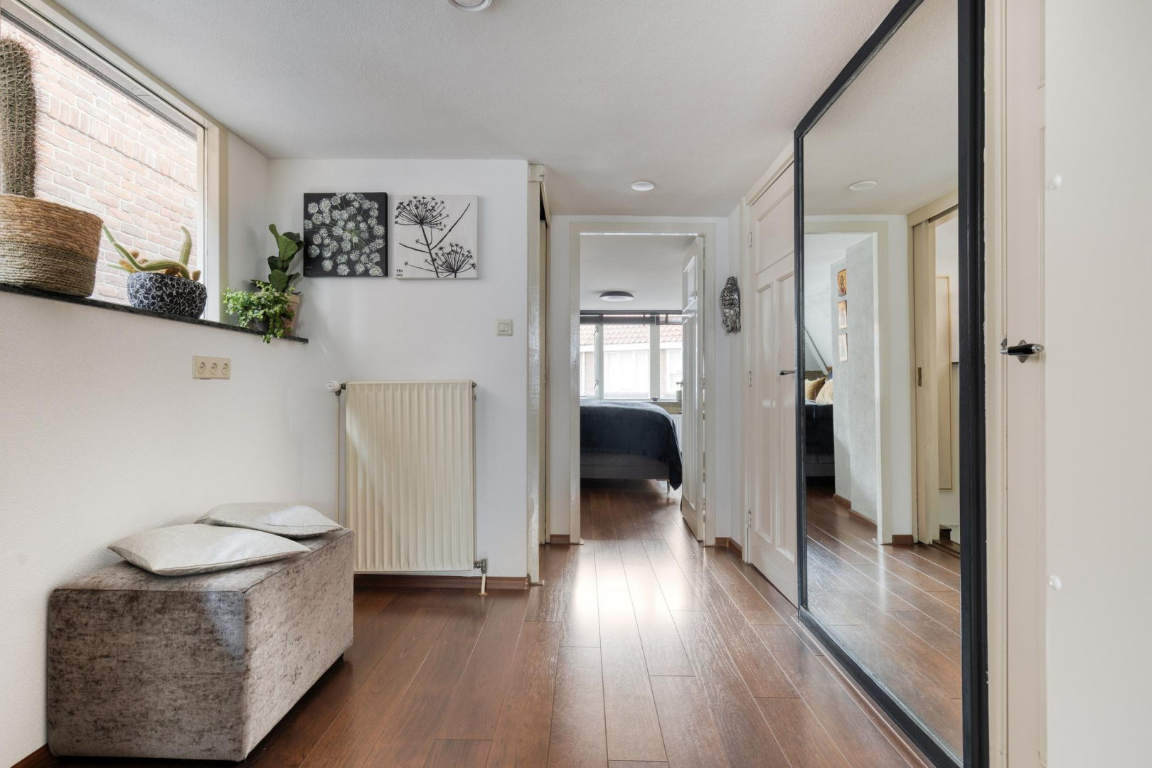 Deze sfeervolle woning is voorzien van een eigen, met een rolluik, af te sluiten portiek. De hal verwelkomt je met een garderobe en biedt toegang tot de lichte en uitnodigende woonkamer. De woonkamer straalt gezelligheid uit, met een groot raam aan de voorzijde voorzien van prachtige glas-in-loodramen aan de bovenzijde, verwerkt tussen dubbelglas voor optimale isolatie. Een sfeervolle gelhaard maakt het geheel compleet en zorgt voor een warme, huiselijke ambiance. Via openslaande deuren aan de achterzijde, met ook glas-in-loodramen aan de bovenzijde, loop je direct de achtertuin in, wat een fijne verbinding tussen binnen en buiten creëert. De open keuken is een lust voor het oog en zeer functioneel ingericht. De massief eiken kastdeuren en het granieten aanrechtblad vormen een stijlvolle basis, terwijl diverse inbouwapparatuur, zoals een keramisch kookplaat, combi-oven, koel-/vriescombinatie en vaatwasser, het koken en bereiden van maaltijden aangenaam en efficiënt maken. Aansluitend aan de keuken bevindt zich een praktische bijkeuken, alwaar tevens het toilet, aansluitingen voor wasapparatuur en de opstelplaats voor de cv-ketel. Ook vanuit de bijkeuken is de achtertuin direct bereikbaar, wat extra gemak en functionaliteit biedt. De leefruimte is voorzien van een pvc visgraadvloer, strakke plafonds en overschilderbare wandafwerking.