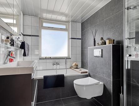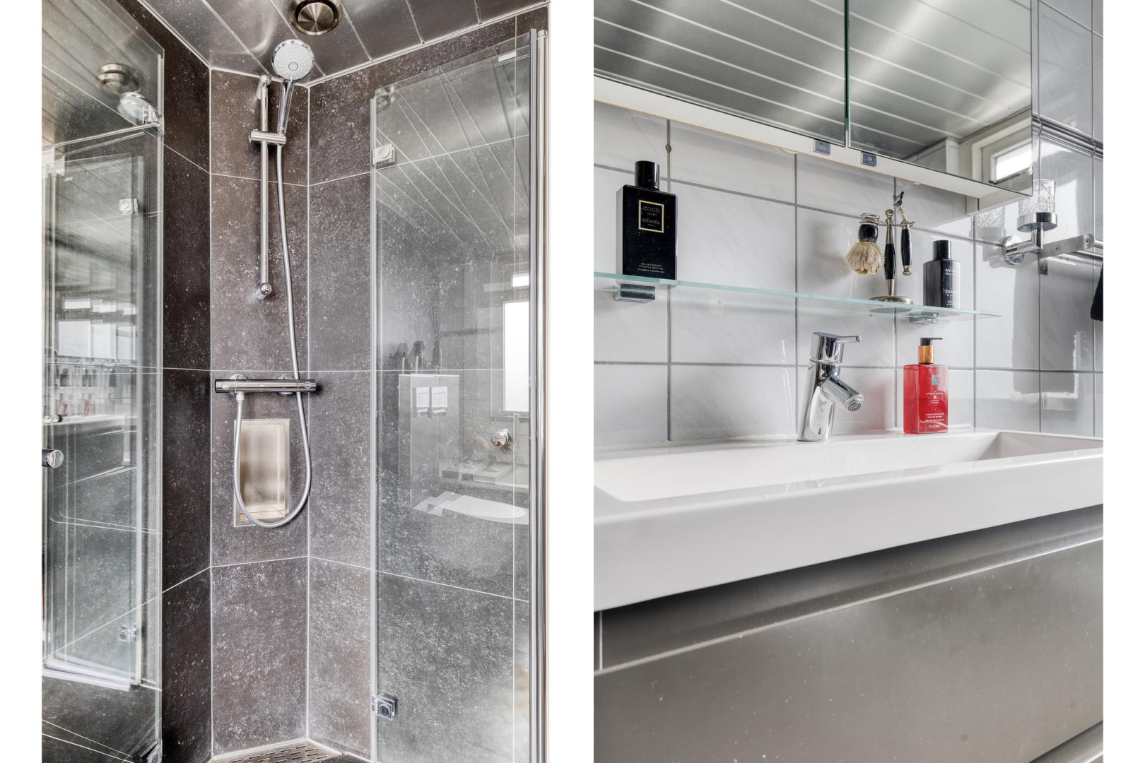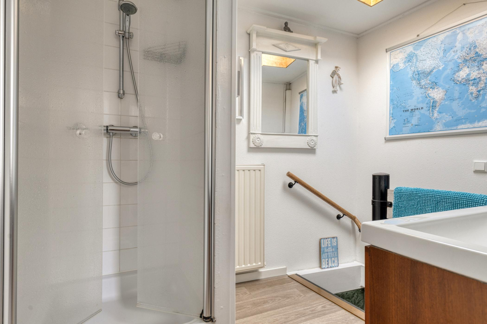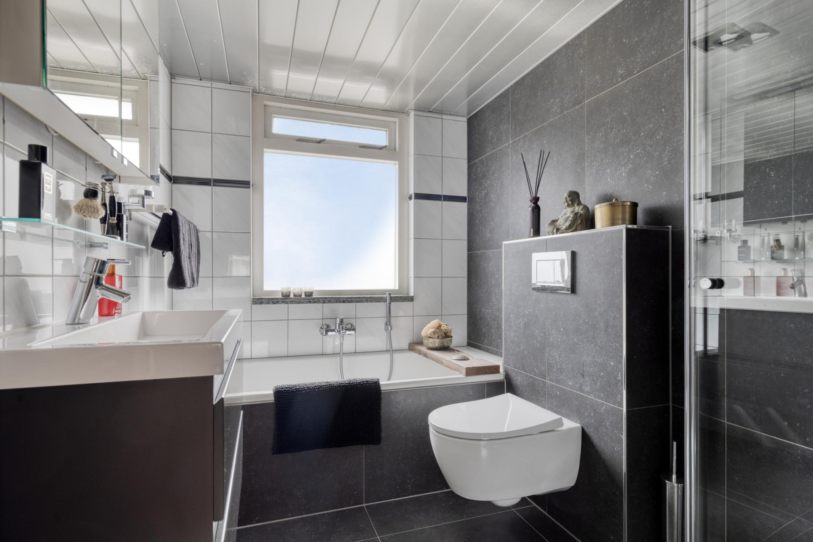 Via de open hardhouten trap bereik je de lichte en ruime overloop, voorzien van 2 praktische vaste kasten, voor extra opbergruimte. De bovenverdieping is volledig af te sluiten met een schuifdeur boven aan de trap. Aan de voorzijde van het huis bevindt zich een ruime slaapkamer, compleet met een op maat gemaakte kastenwand. De ramen zijn uitgerust met een elektrisch bedienbaar rolluik, waardoor je eenvoudig kunt sturen op lichtinval en privacy. De tweede en derde slaapkamers zijn ideaal als kinderkamer, werkruimte of logeerkamer. Vanuit de derde slaapkamer heeft u bovendien directe toegang tot het balkon, waar u heerlijk kunt genieten van de ochtend zon en frisse zee lucht. De badkamer beschikt over een inloopdouche met praktische glazendeuren en een nis voor de douche spullen. zodat u kunt genieten van een ontspannende douche-ervaring op maat. Het wandcloset zorgt voor een strakke en moderne uitstraling, terwijl het ligbad uitnodigt tot ontspannen bad momenten. Het wastafelmeubel met spiegelkast biedt voldoende opbergruimte voor al uw badkamerbenodigdheden en combineert functionaliteit met een eigentijdse look. Voor extra comfort en een warme sfeer is er een stijlvolle handdoekradiator, ideaal voor warme handdoeken en het drooghouden van de ruimte.