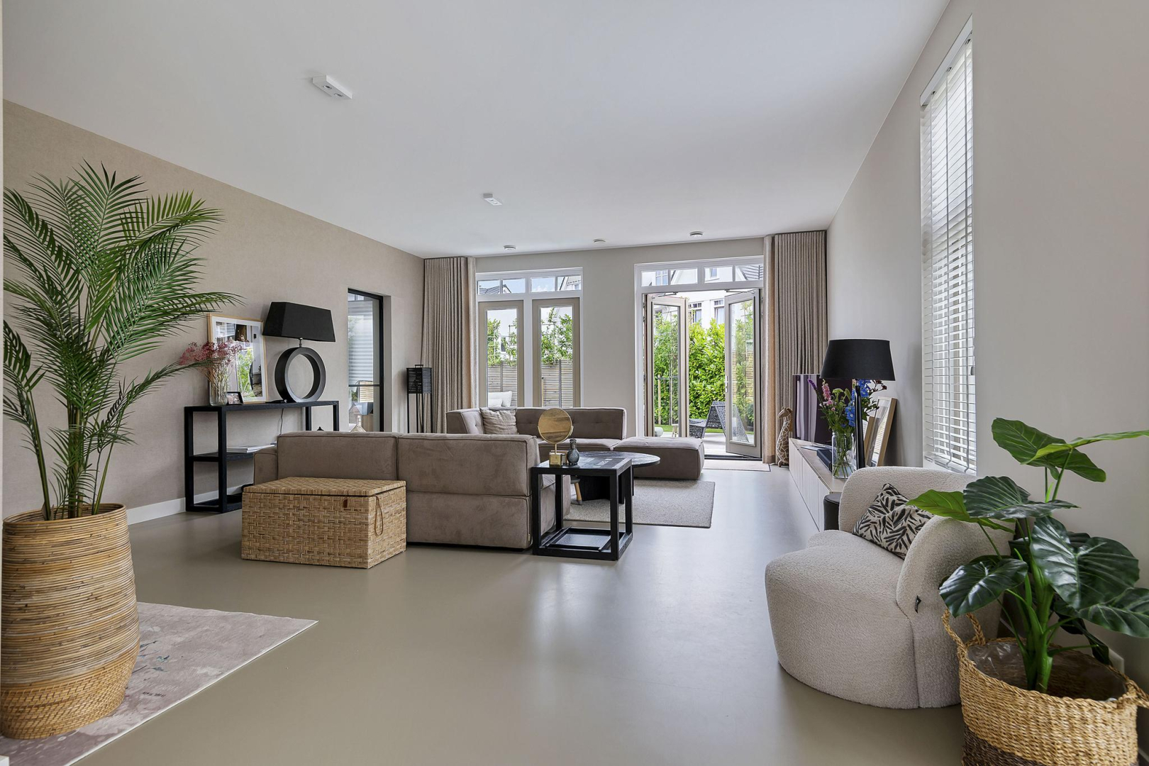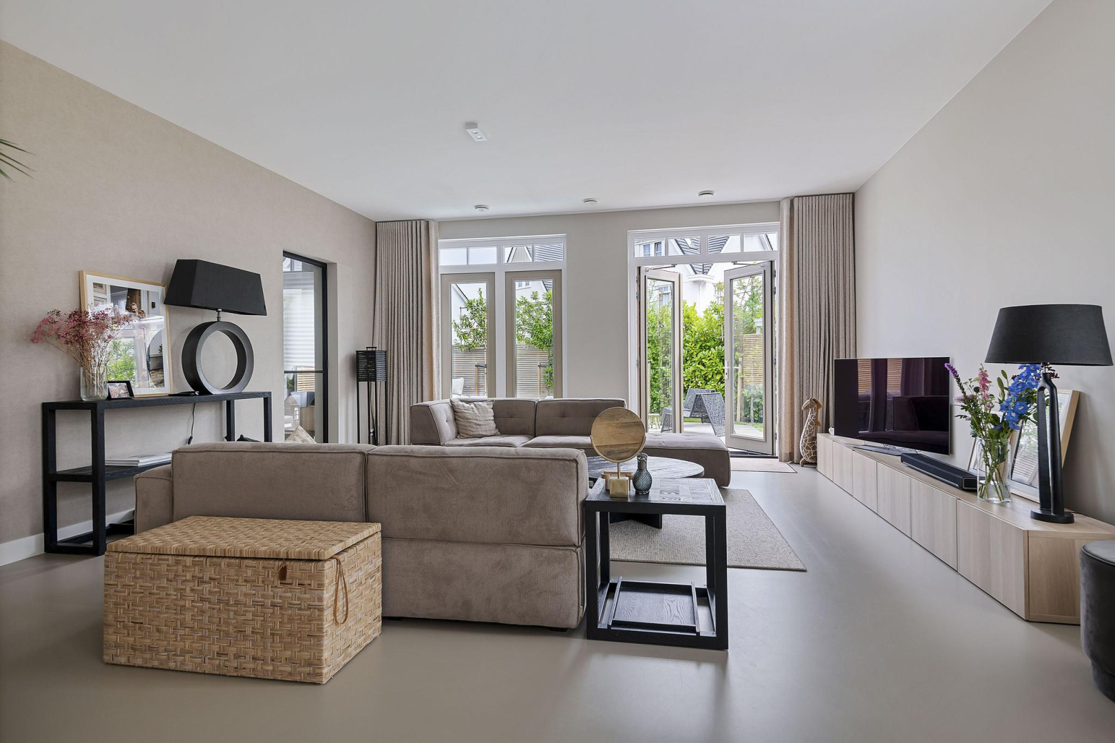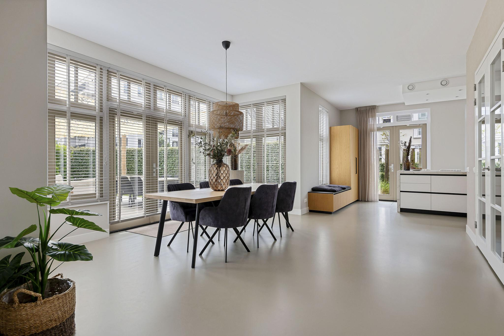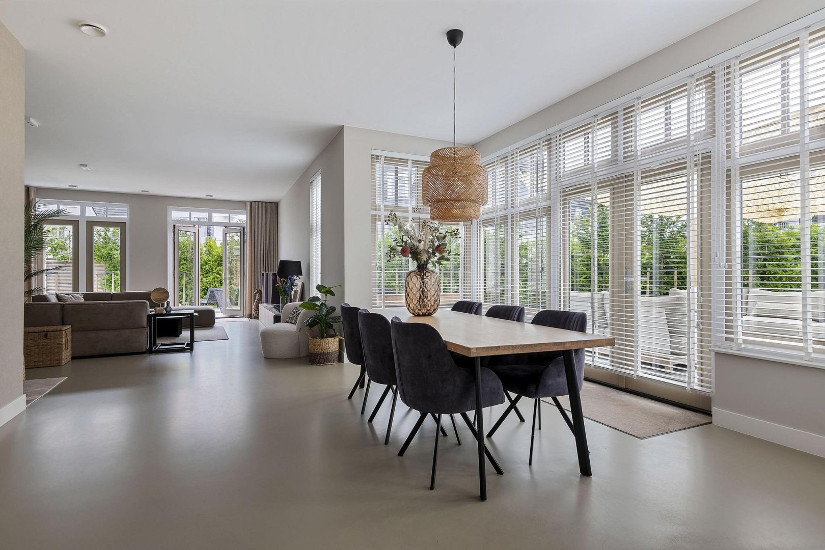 Door dubbele openslaande deuren betreedt u de ruime, sfeervolle living. Door de vele raampartijen, de zonnige ligging en het hoge plafond van circa 3 meter geniet u de hele dag van overvloedig daglicht. Er zijn diverse fijne zithoeken, waaronder in de erker. Voor tv-kijken of rustig lezen is er de ruime woonkamer, plus een ruime separate werk/speelkamer. De luxe gietvloer met vloerverwarming en het hoogwaardige afwerkingsniveau versterken de sfeer van comfort en warmte. Via meerdere openslaande deuren op de begane grond heeft u toegang tot de riante en zonnige tuin, waar u het hele jaar door kunt genieten van het verwarmde zwembad, het omliggende groen en sfeervolle terrassen voor borrels of gezamenlijke diners.
