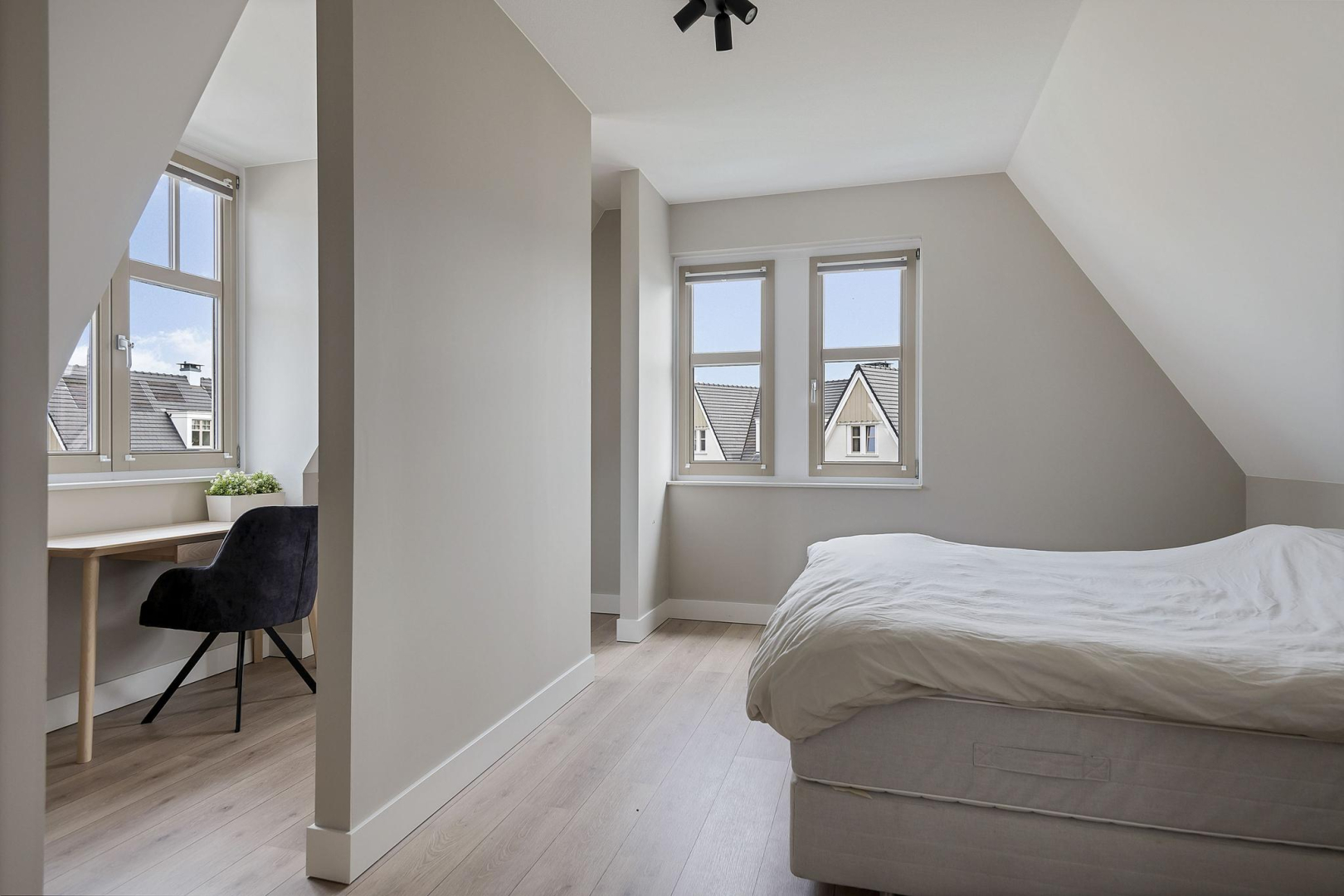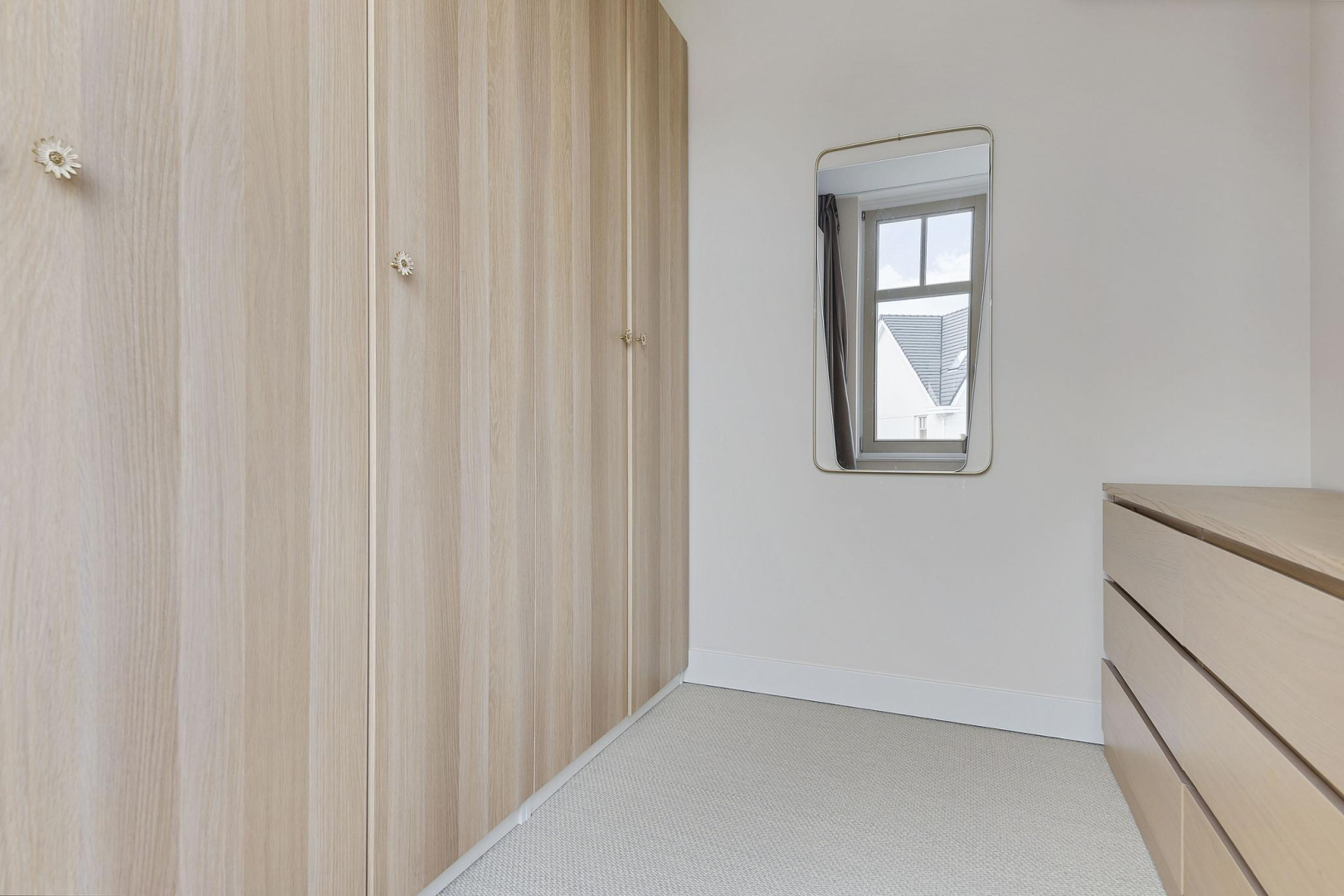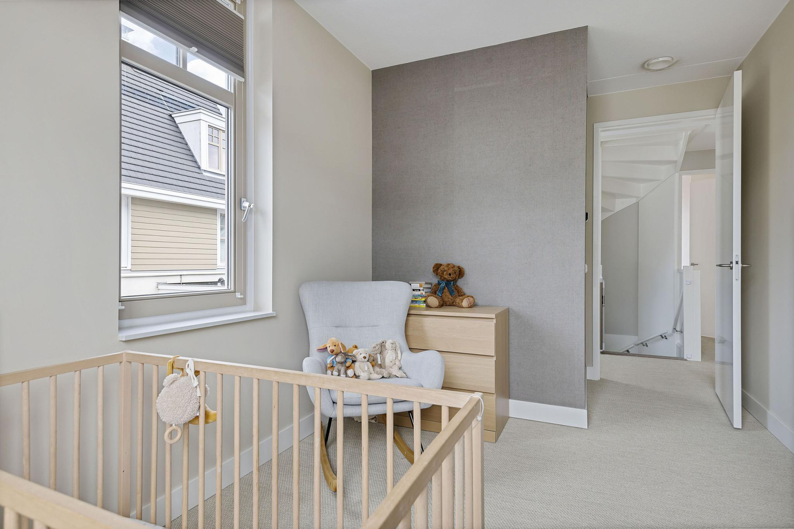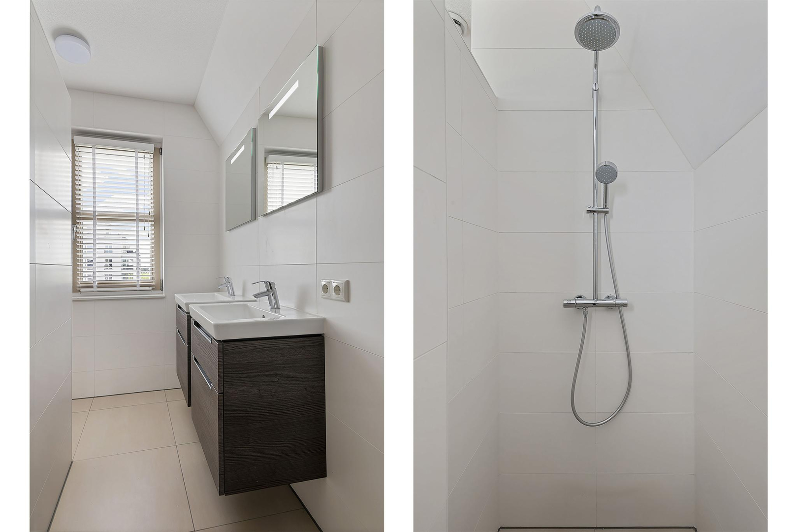 Via het open trappenhuis bereikt u twee grote slaapkamers met ingebouwde bergruimtes. De badkamer is voorzien van een inloopdouche en wastafelmeubel met dubbele waskom. Charmante dakkapellen zorgen voor veel lichtinval. Deze verdieping heeft ook een aparte wasruimte en cv-ruimte met extra grote boiler, zodat iedereen gelijktijdig gebruik kan maken van de badkamers. De gehele verdieping heeft laminaat met vloerverwarming.