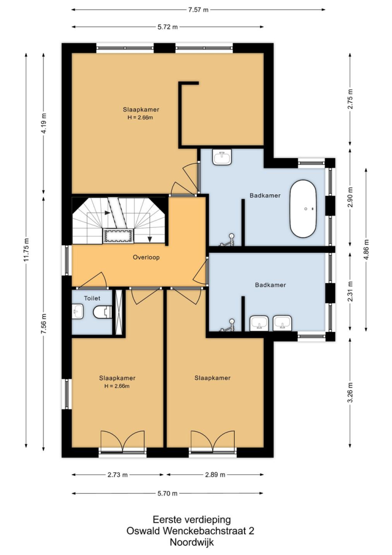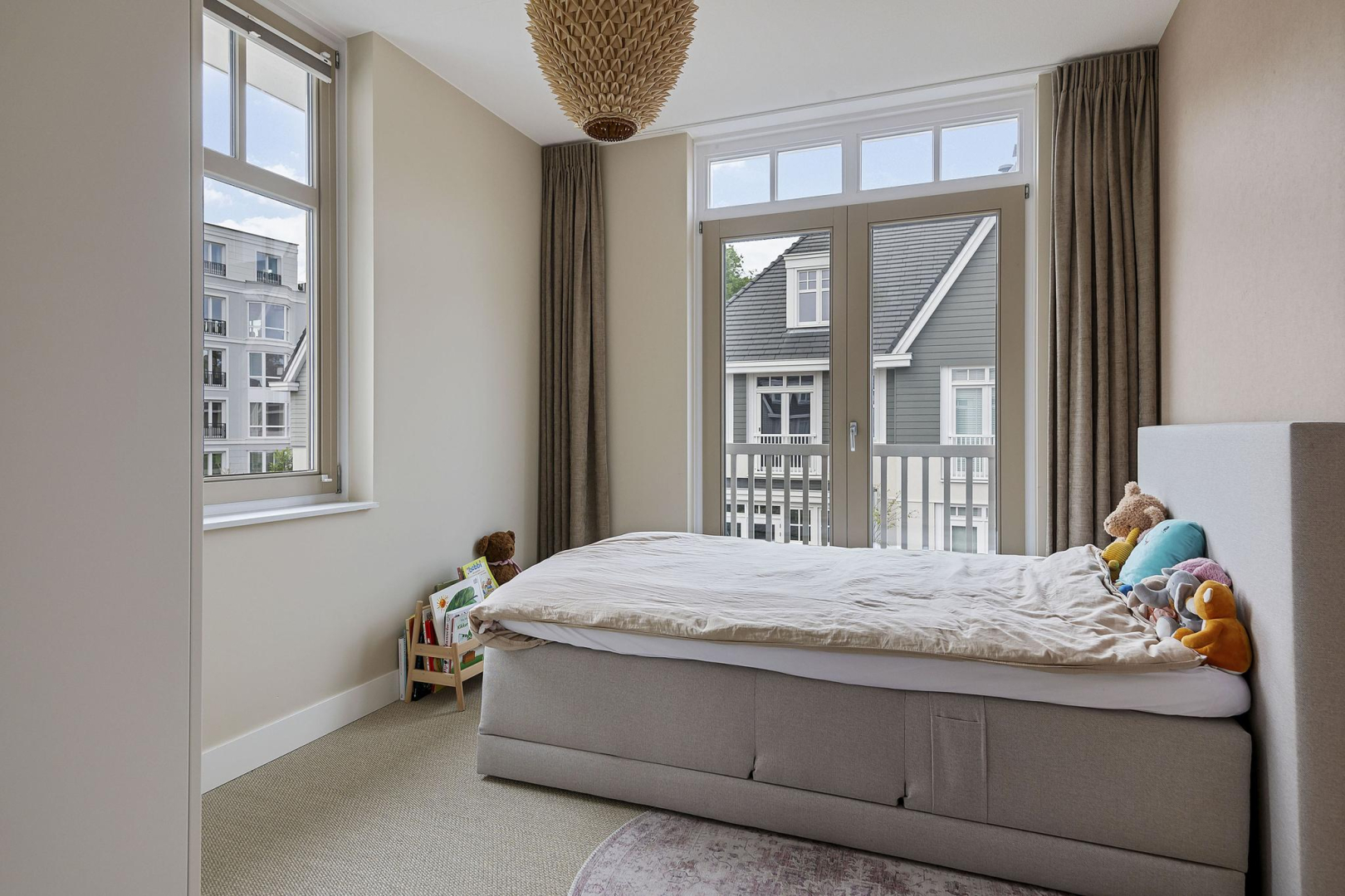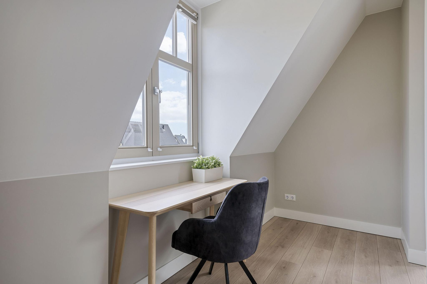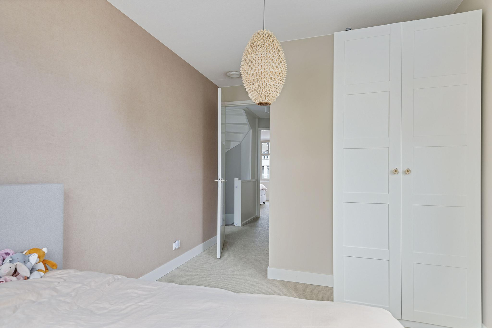 Via het open trappenhuis bereikt u twee grote slaapkamers met ingebouwde bergruimtes. De badkamer is voorzien van een inloopdouche en wastafelmeubel met dubbele waskom. Charmante dakkapellen zorgen voor veel lichtinval. Deze verdieping heeft ook een aparte wasruimte en cv-ruimte met extra grote boiler, zodat iedereen gelijktijdig gebruik kan maken van de badkamers. De gehele verdieping heeft laminaat met vloerverwarming.