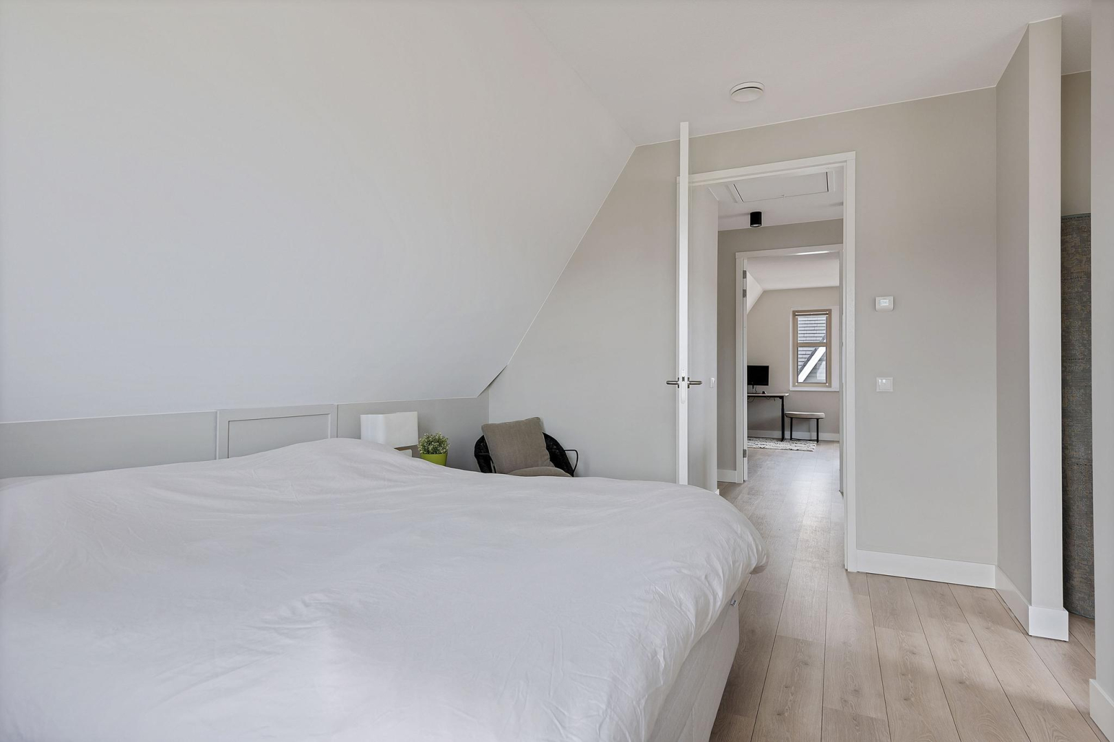 Het prachtige trappenhuis met stijlvolle traplopers past perfect bij deze villa. Op de eerste verdieping vindt u de ruime master bedroom met inloopkast. De open badkamer biedt een inloopdouche, vrijstaand luxe bad en ruim wastafelmeubel. Deze verdieping telt nog twee riante, lichte slaapkamers en een tweede badkamer met inloopdouche, wastafelmeubel en apart toilet. De hele verdieping heeft een warme linnenvloer met vloerverwarming.