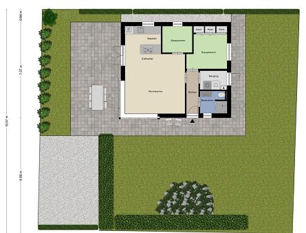 Geheel voorzien van kunststof kozijnen met dubbel glas;