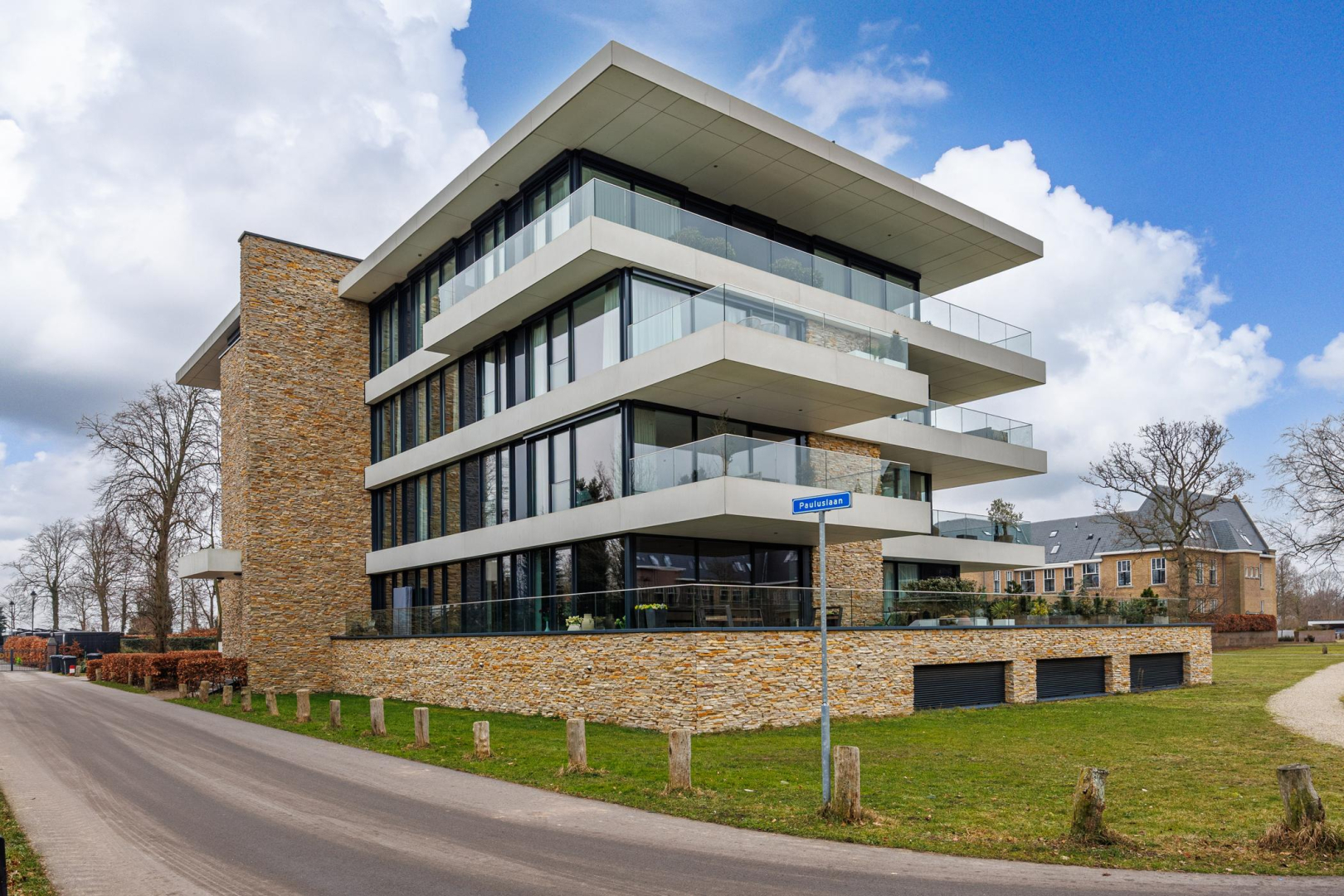 Het luxe woongebouw straalt allure uit met zijn natuurstenen gevels en uitgebreide toepassing van hoogwaardig (triple) glas. Hierdoor is het appartement uitzonderlijk licht en geniet u van een rustgevend uitzicht op de omliggende natuur en het landgoed.