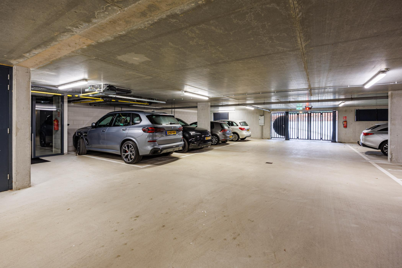 Met uw persoonlijke afstandsbediening kunt u het elektrische hek openen en bent u op de fiets, dan is er een speciale loopdeur. Hier heeft u uw eigen 2 parkeerplaatsen, alwaar een laadpaal geïnstalleerd is. De parkeerplaatsen en de eigen berging zijn gunstig gelegen, direct naast de toegang tot de lift en het trappenhuis.