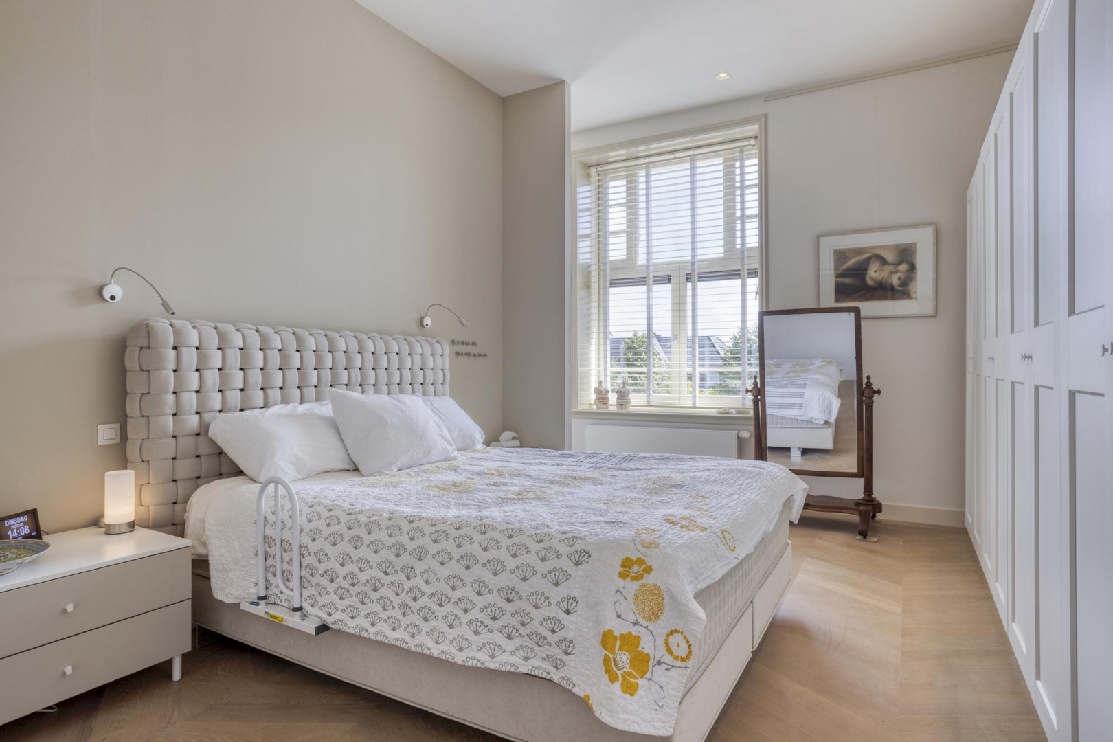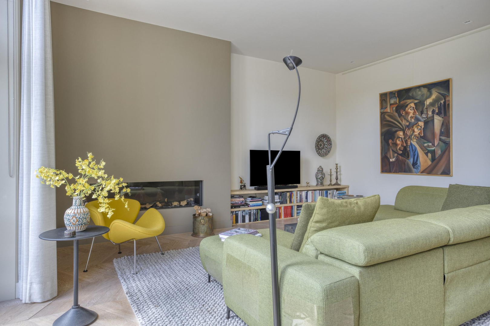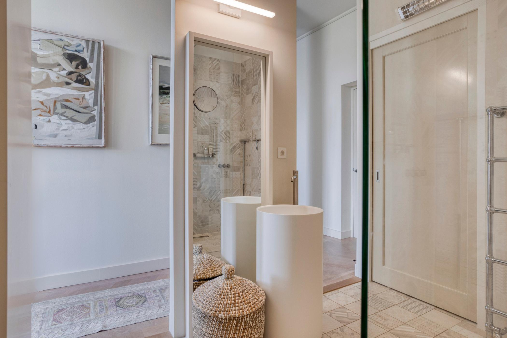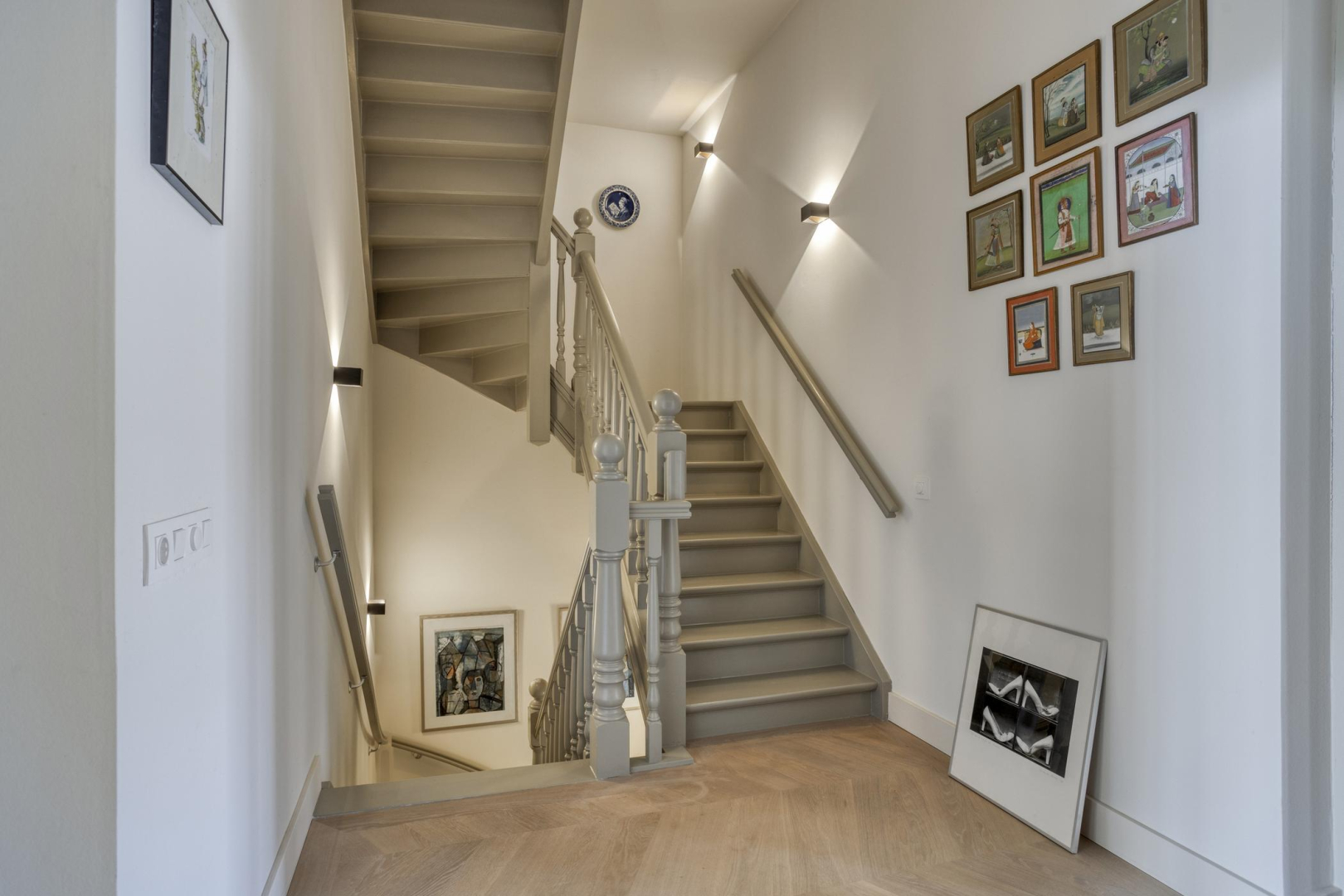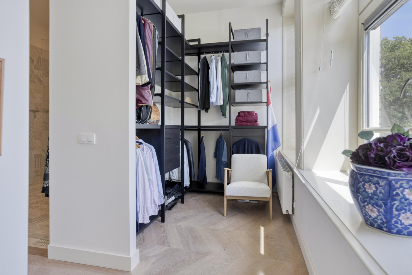 Via het imposante trappenhuis met vide bereikt u de eerste verdieping met twee zeer riante slaapkamers. De master bedroom is over de gehele breedte uitgerust met een (losse) kastenwand. Daarbij is er een inloopkast van het merk Porro en heeft u de beschikking over een eigen badkamer en suite met regen- en handdouche, een design waszuil, een designradiator en een apart toilet. De badkamer is voorzien van vloerverwarming. De tweede slaapkamer is thans in gebruik als werk- en zitkamer en kijkt uit op de heerlijk zonnige achtertuin.