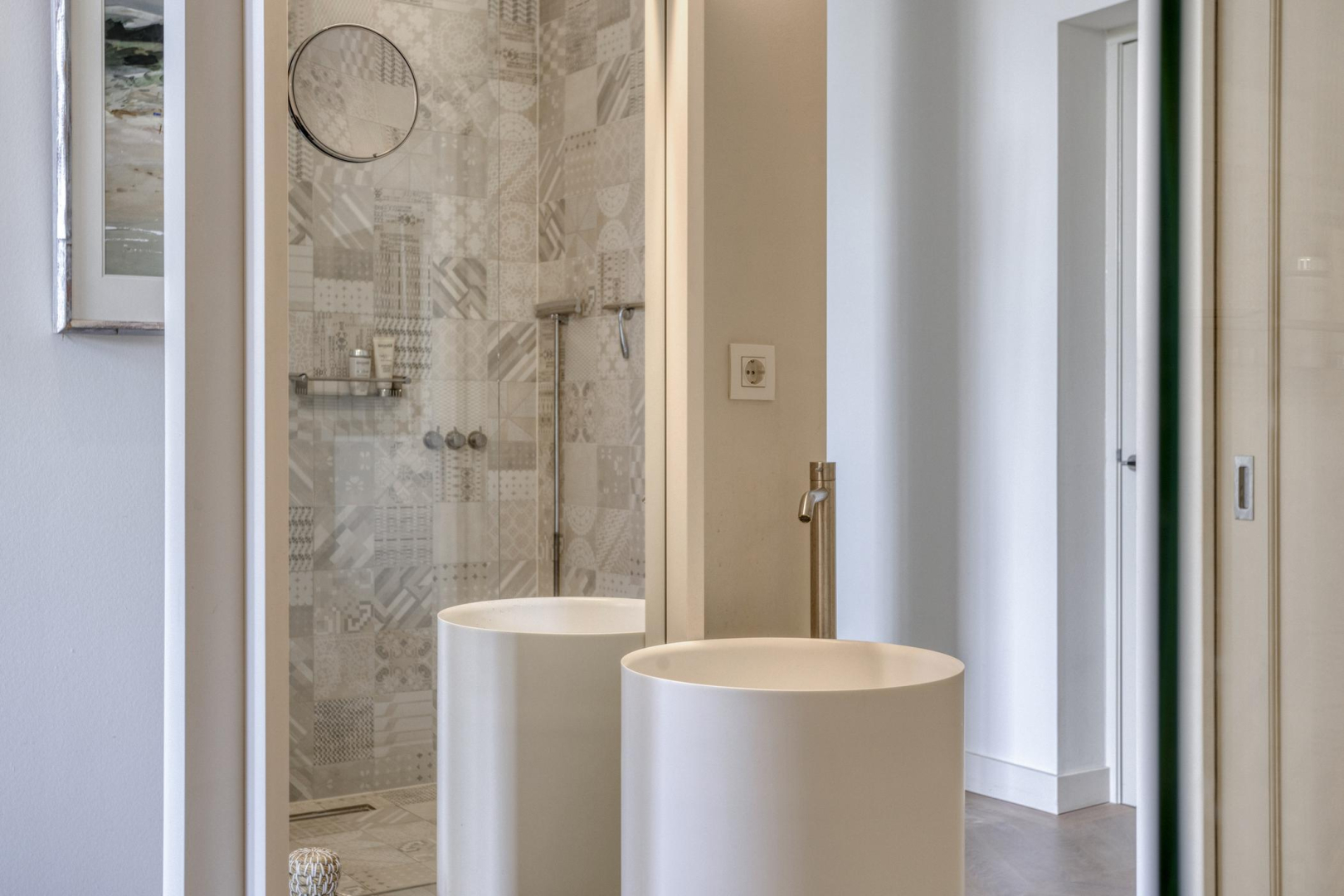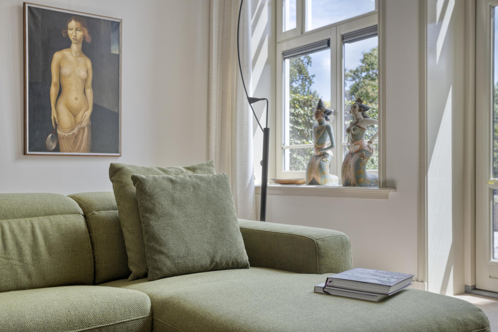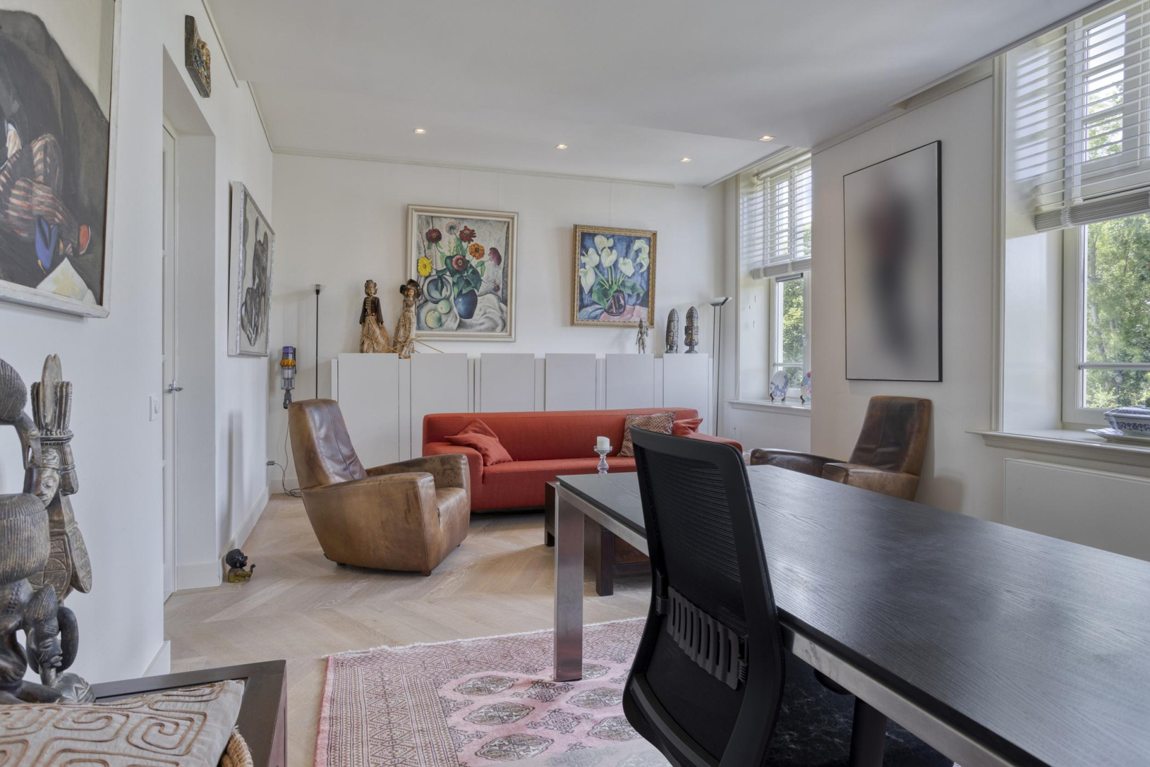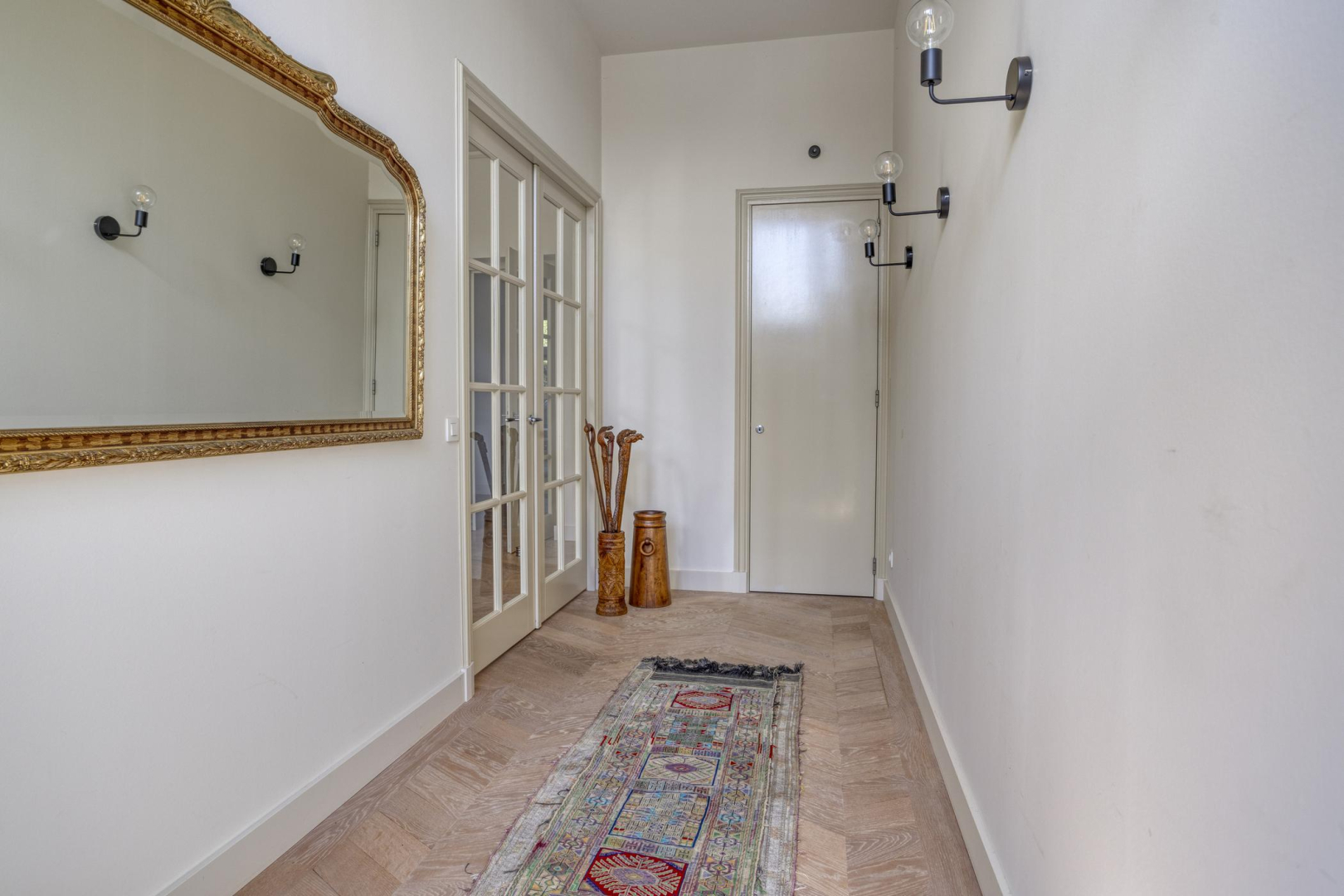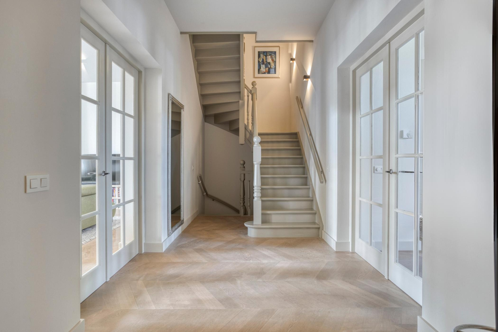 Via het imposante trappenhuis met vide bereikt u de eerste verdieping met twee zeer riante slaapkamers. De master bedroom is over de gehele breedte uitgerust met een (losse) kastenwand. Daarbij is er een inloopkast van het merk Porro en heeft u de beschikking over een eigen badkamer en suite met regen- en handdouche, een design waszuil, een designradiator en een apart toilet. De badkamer is voorzien van vloerverwarming. De tweede slaapkamer is thans in gebruik als werk- en zitkamer en kijkt uit op de heerlijk zonnige achtertuin.