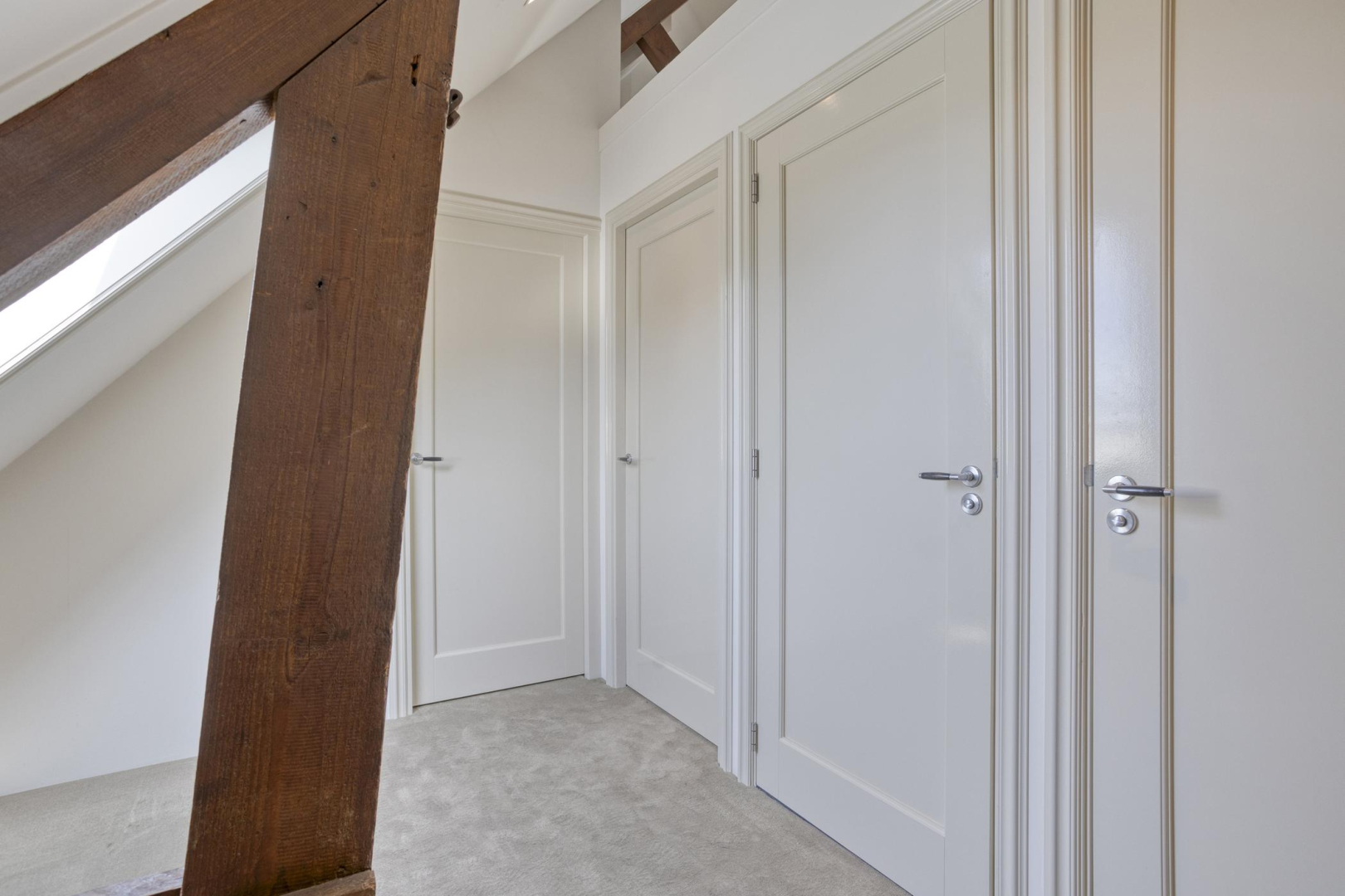 Overloop met aparte technische ruimte, alwaar de opstelplaats van de CV-installatie met geïntegreerde boiler, twee mechanische ventilatiesystemen en veel bergruimte. Een verrassend ruime en lichte verdieping met maar liefst vier dakramen en een schitterende balkenpartij. Momenteel is deze verdieping ingericht als een zelfstandige woon/hobby- en slaapgelegenheid. Via de overloop is het aparte toilet bereikbaar en de tweede badkamer met een grote inloopdouche en een fraai wastafelmeubel.