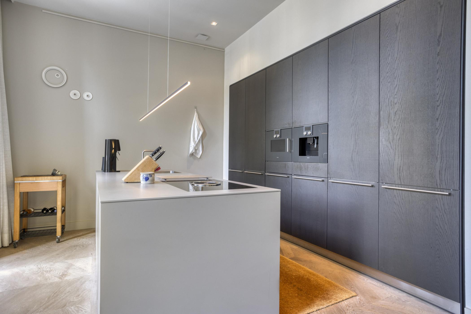 De keuken is van absolute topklasse van het merk Bulthaup en voorzien van hoogwaardige inbouwapparatuur. Zo is er een inductiekookplaat met geïntegreerde afzuiging van het merk Bora en zijn de ingebouwde oven met magnetron, de koffiemachine en de vaatwasser van het merk Gaggenau. In de enorme kastenwand vindt u ook nog een ingebouwde koelkast en vriezer en er is een zee aan bergruimte in de kasten en onder het royale kook- en spoeleiland. De gashaard zorgt voor een gezellige sfeer tijdens de koudere dagen.
