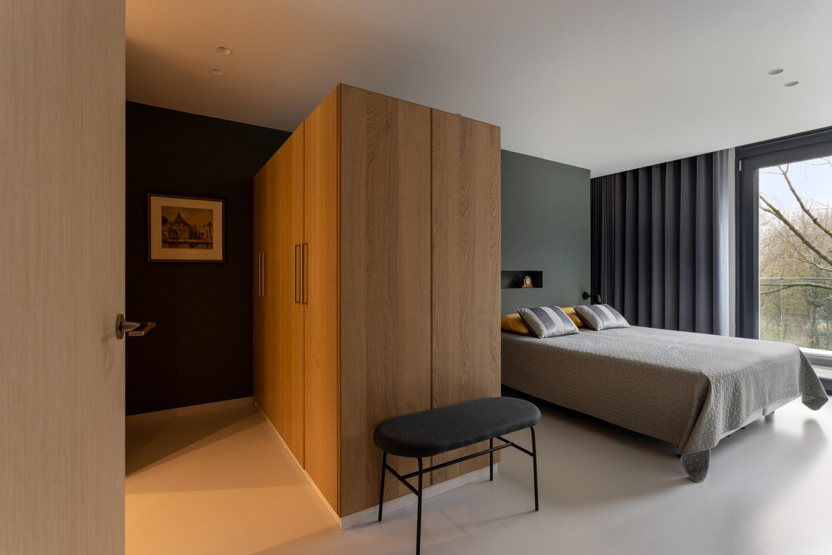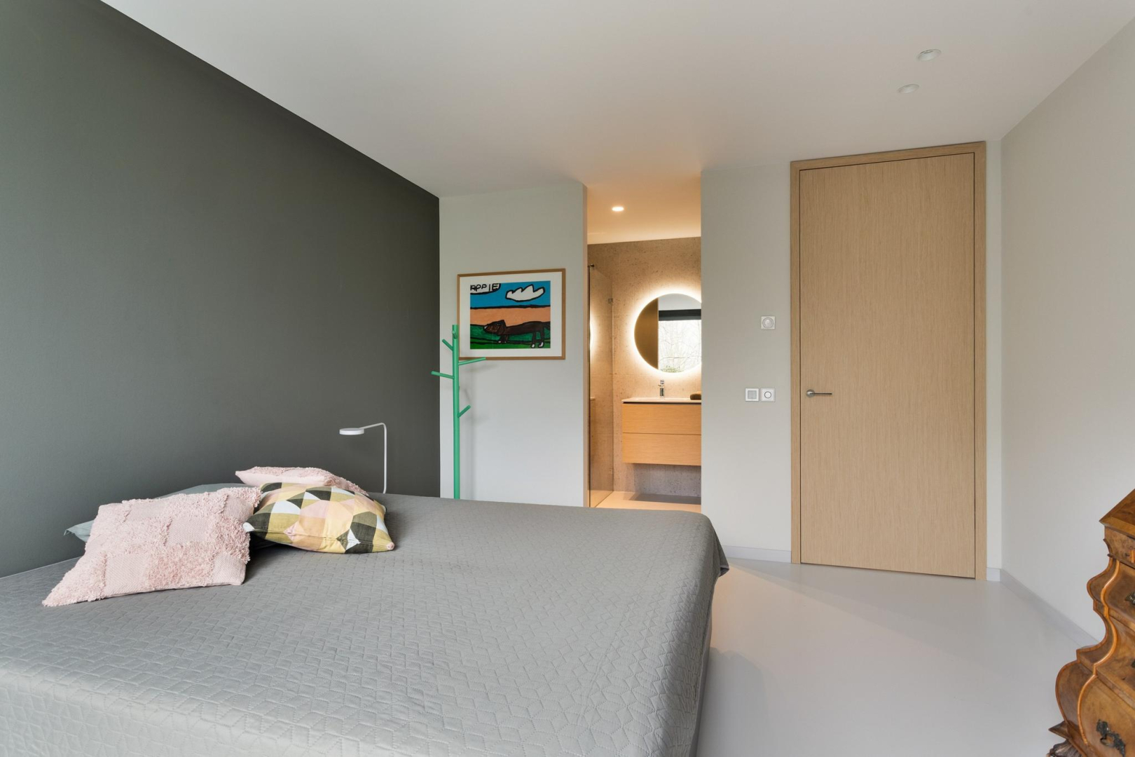 Moderne gietvloer en vloerverwarming, instelbaar per ruimte.