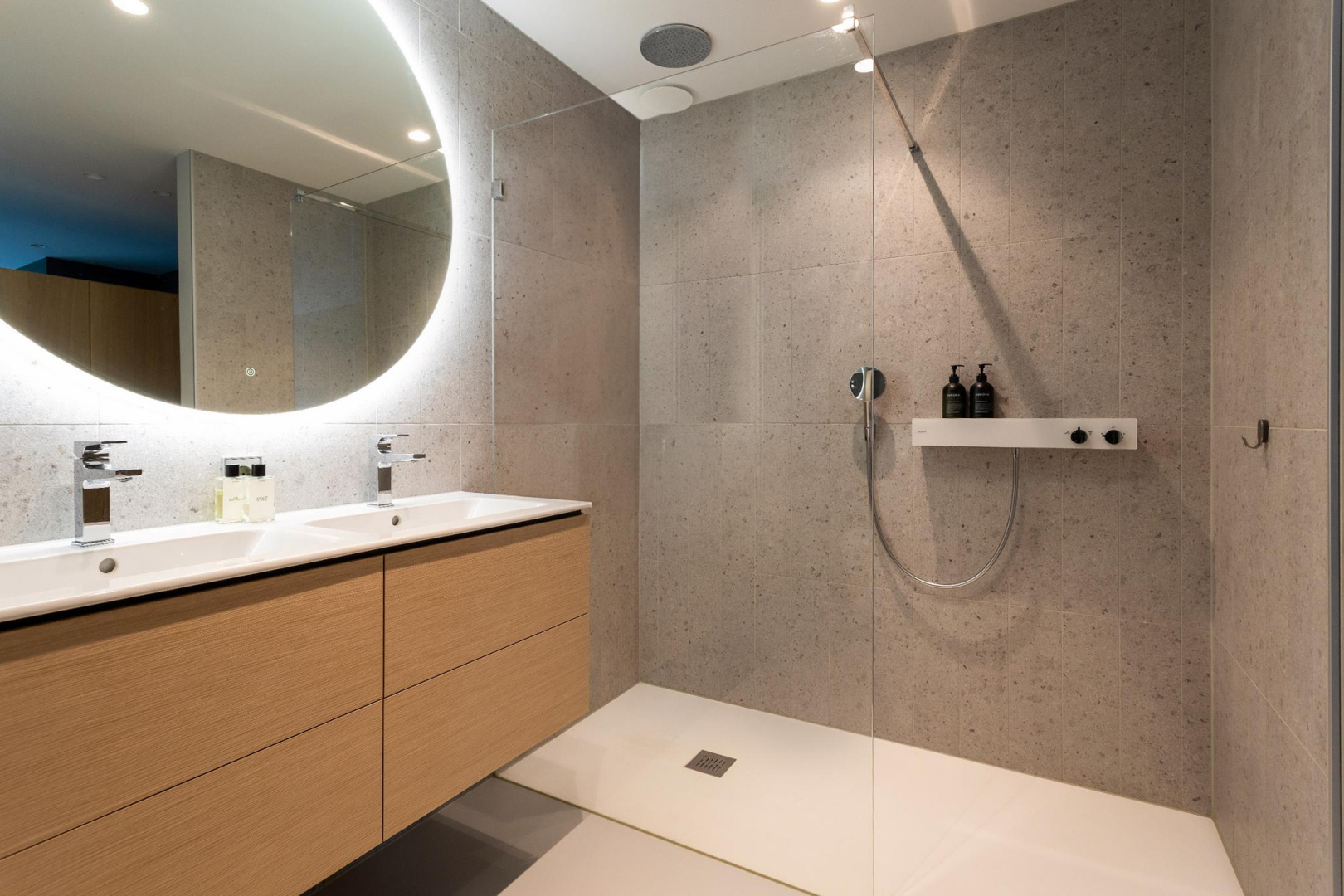 Twee luxe badkamers.