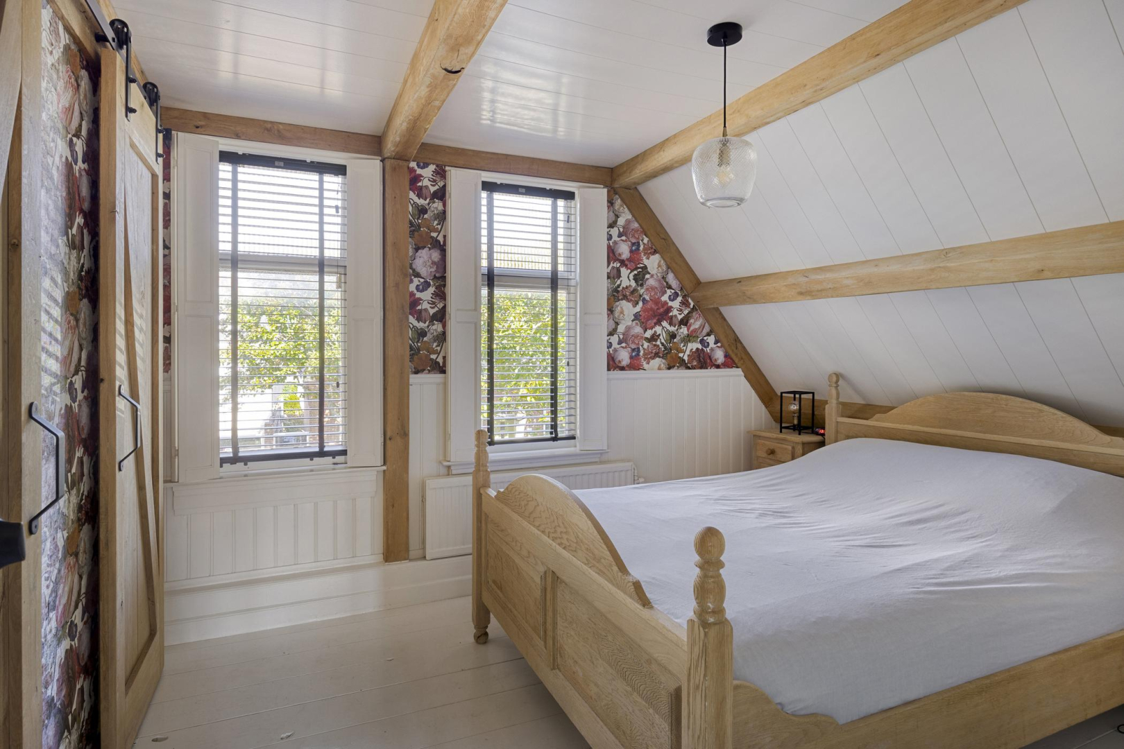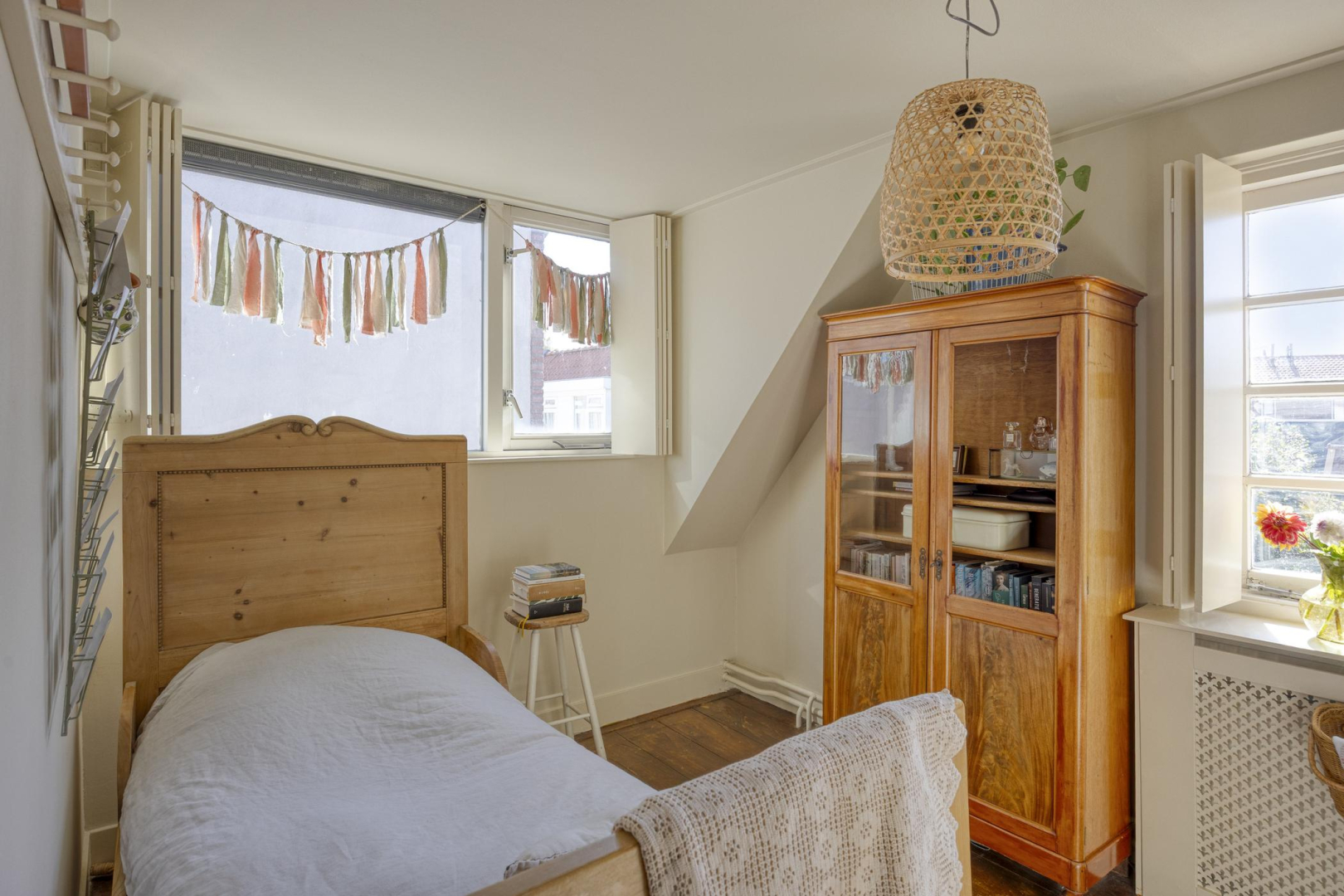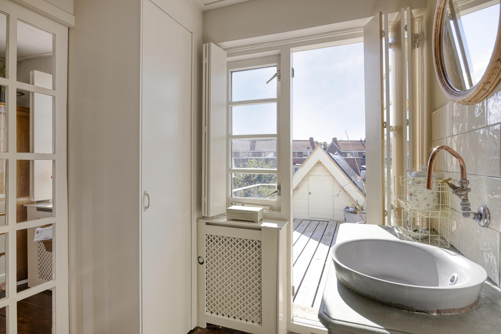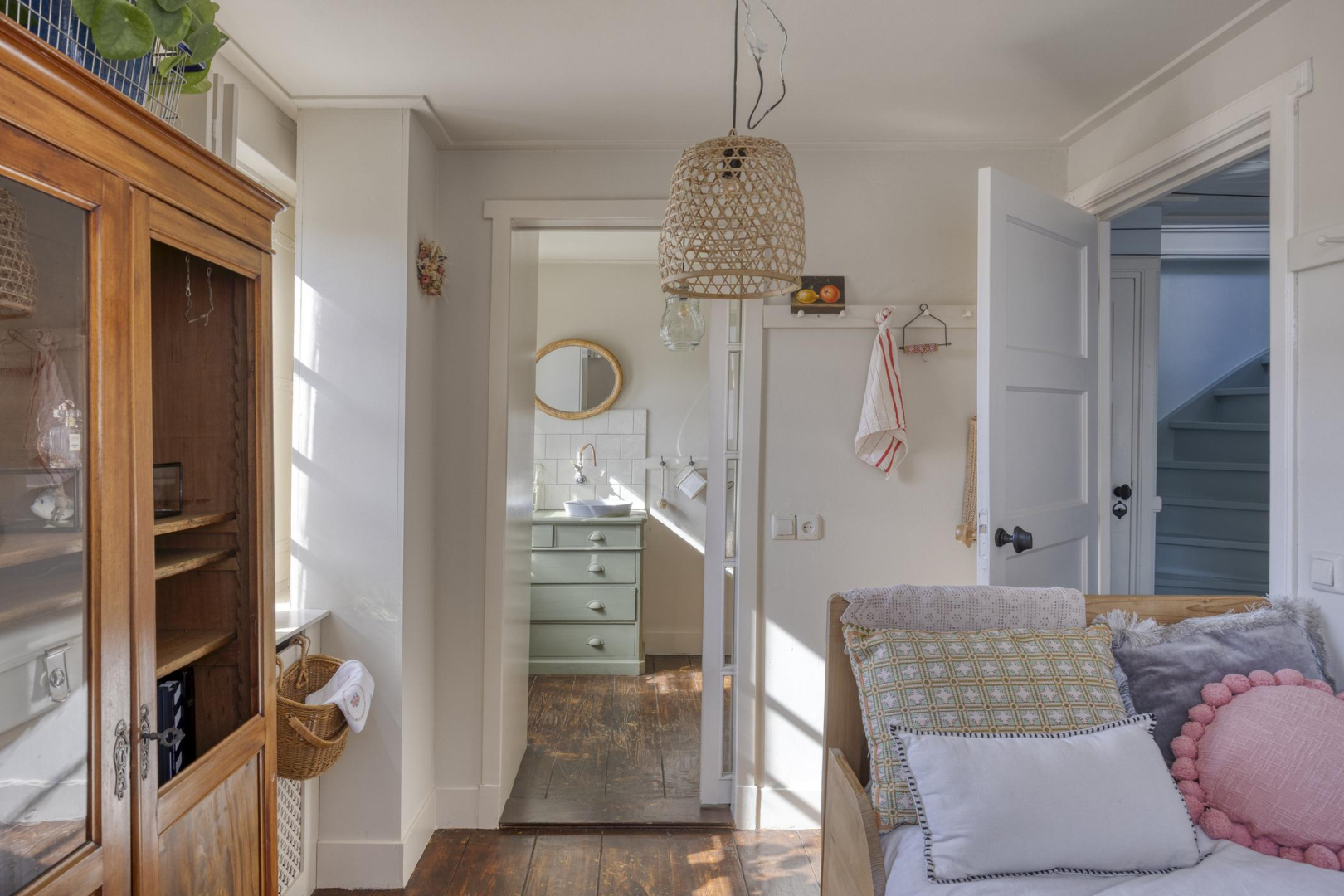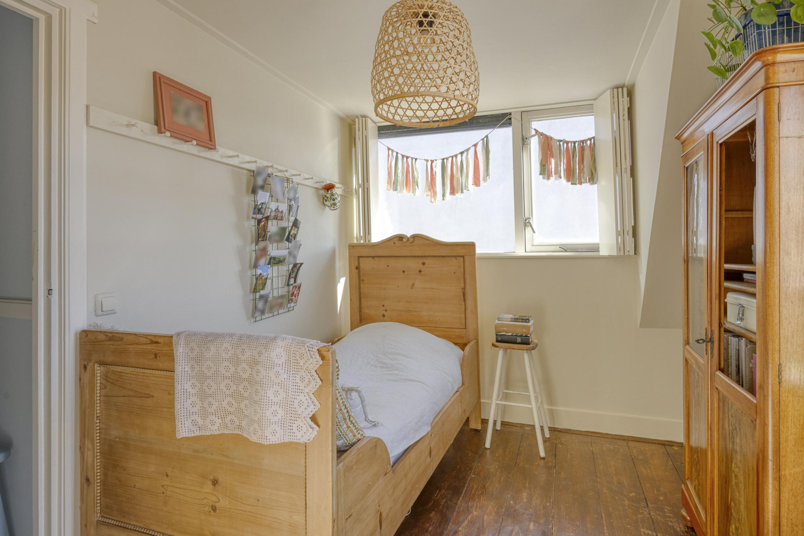 Hier bevinden zich drie slaapkamers, elk met een eigen karakter. Een van de slaapkamers (achterzijde) heeft een wastafel, inbouwkast en deur naar het dakterras. De gehele verdieping is voorzien van authentieke grenen vloerdelen. Een slaapkamer met dakkapel en inbouwkast. De (ouder)slaapkamer met inloopkast en schuifdeur naar eigen badkamer voorzien van wastafel, ligbad, hand- en stortdouche en designradiator. De charmante luikjes voor de ramen versterken de jaren ’30 sfeer. Op de overloop bevinden zich ook nog een inbouwkast en een apart toilet.