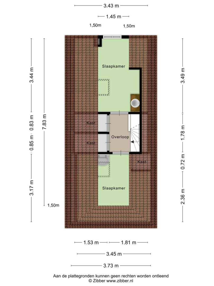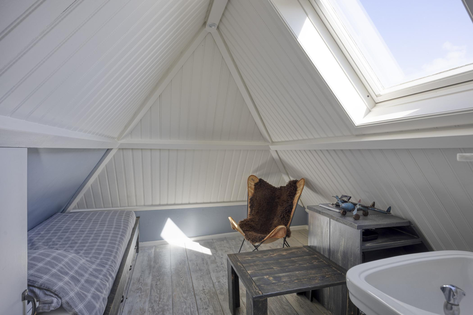 Via een vaste trap bereikt u de ruime zolder met nog eens twee slaapkamers, beide voorzien van een dakraam en wastafel. Deze verdieping biedt volop ruimte voor werk-, hobby- of logeerkamers en heeft op de overloop twee inbouwkasten.