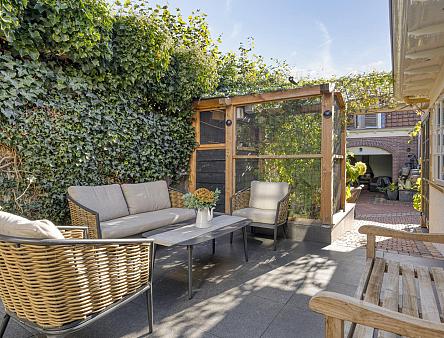De zonnige, fraai aangelegde achtertuin is een heerlijke plek om te ontspannen. Achterin de tuin staat een ruim bijgebouw bestaande uit een “veranda” met een fijne buitenkeuken en een sfeervolle haard. Een perfecte plek voor lange (zomer)avonden met familie en vrienden. Grenzend aan de “veranda” bevindt zich een hele fijne extra ruimte. Beneden vindt u een moderne keuken, douche en toilet, en via een trap komt u op de verdieping alwaar een multi- functionele ruimte.