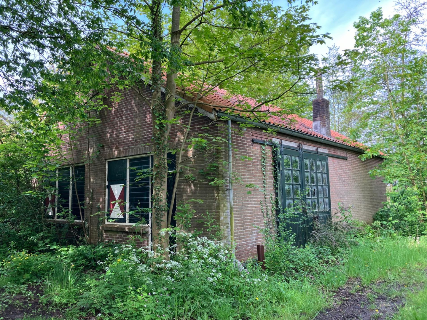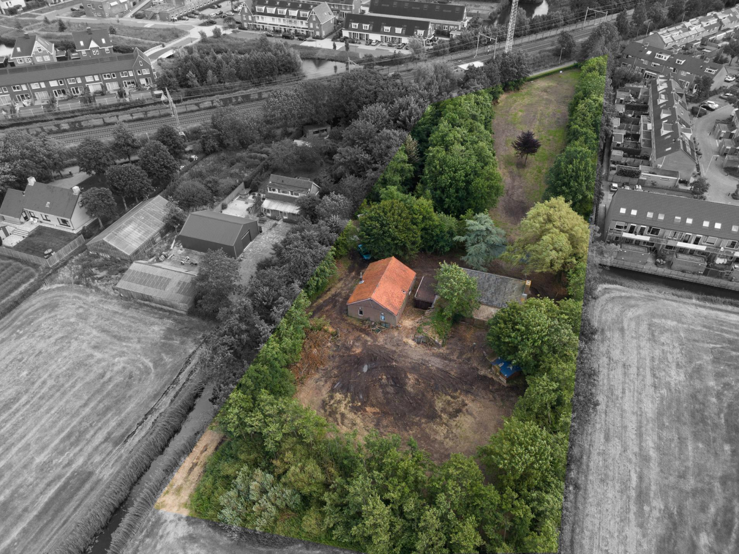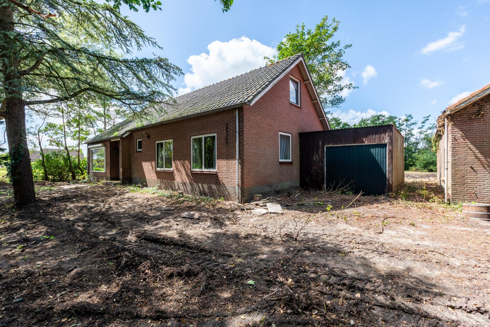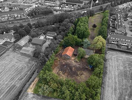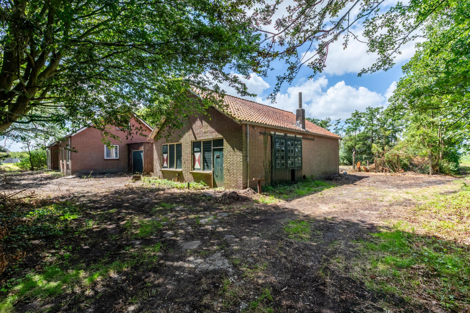 Betreft het erf met daarop een (gedateerde) vrijstaande, eenvoudige woning uit 1968, een stenen bollenschuur (ca. 12x9 m) en een eigen fraaie oprijlaan. De opstallen zijn verouderd en kunnen vervangen worden door nieuwbouw.