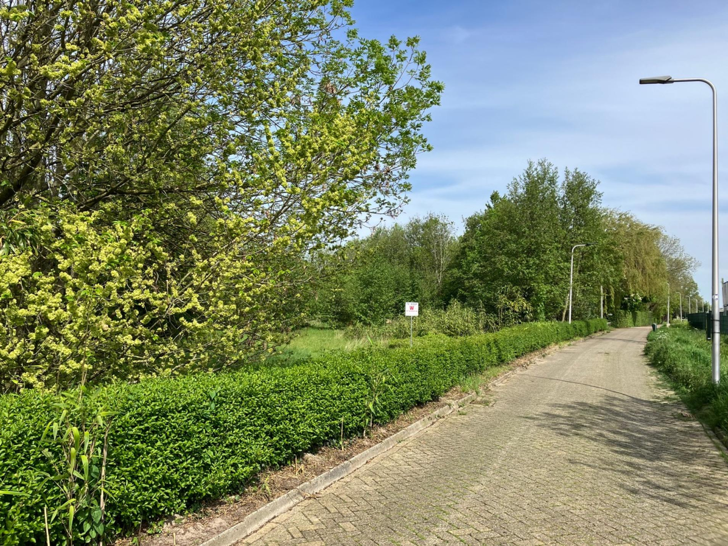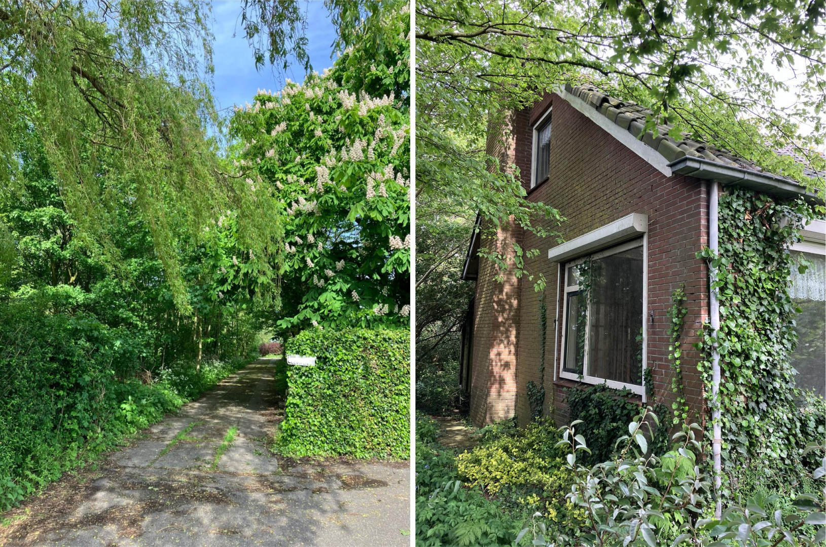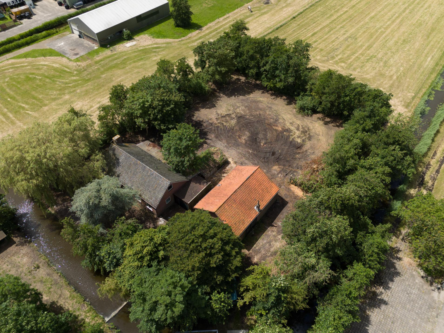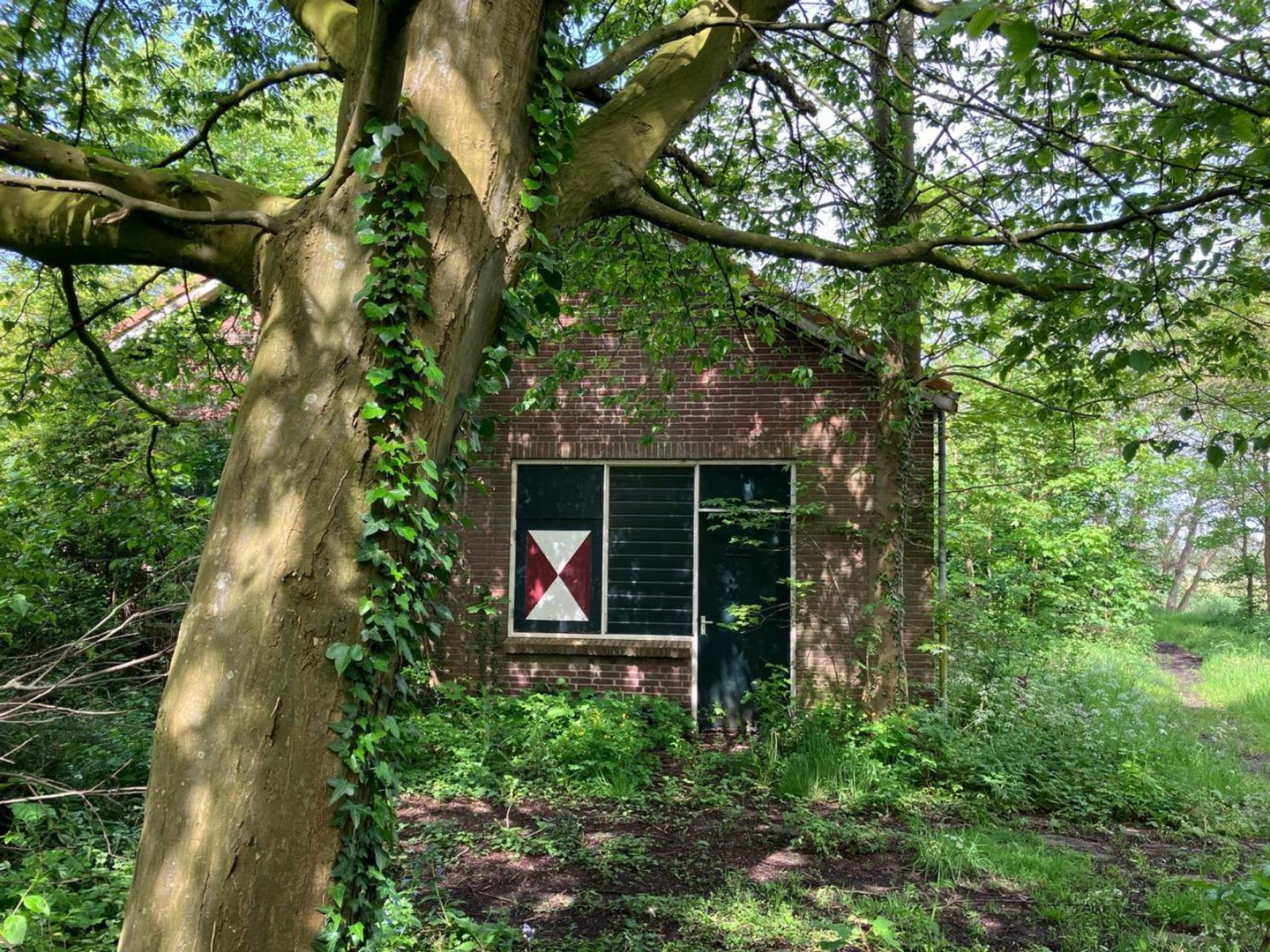 Betreft het erf met daarop een (gedateerde) vrijstaande, eenvoudige woning uit 1968, een stenen bollenschuur (ca. 12x9 m) en een eigen fraaie oprijlaan. De opstallen zijn verouderd en kunnen vervangen worden door nieuwbouw.