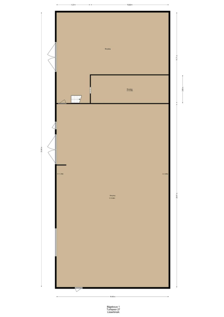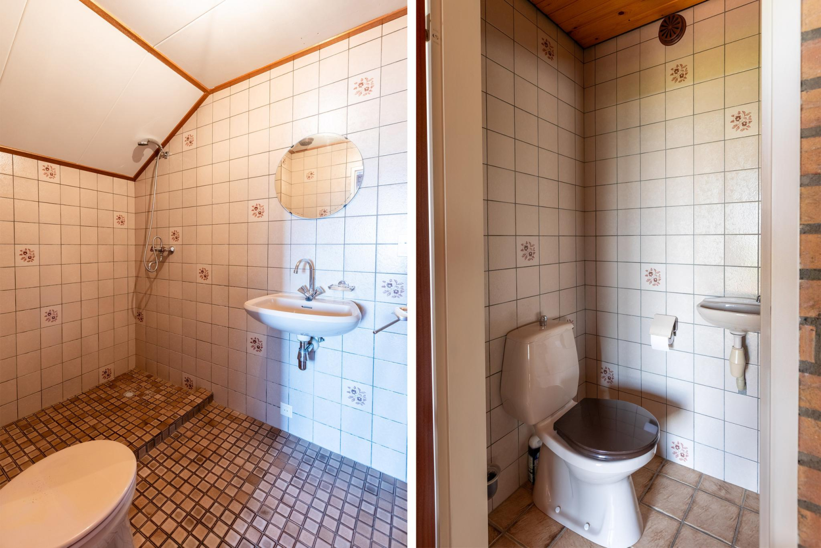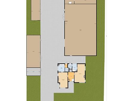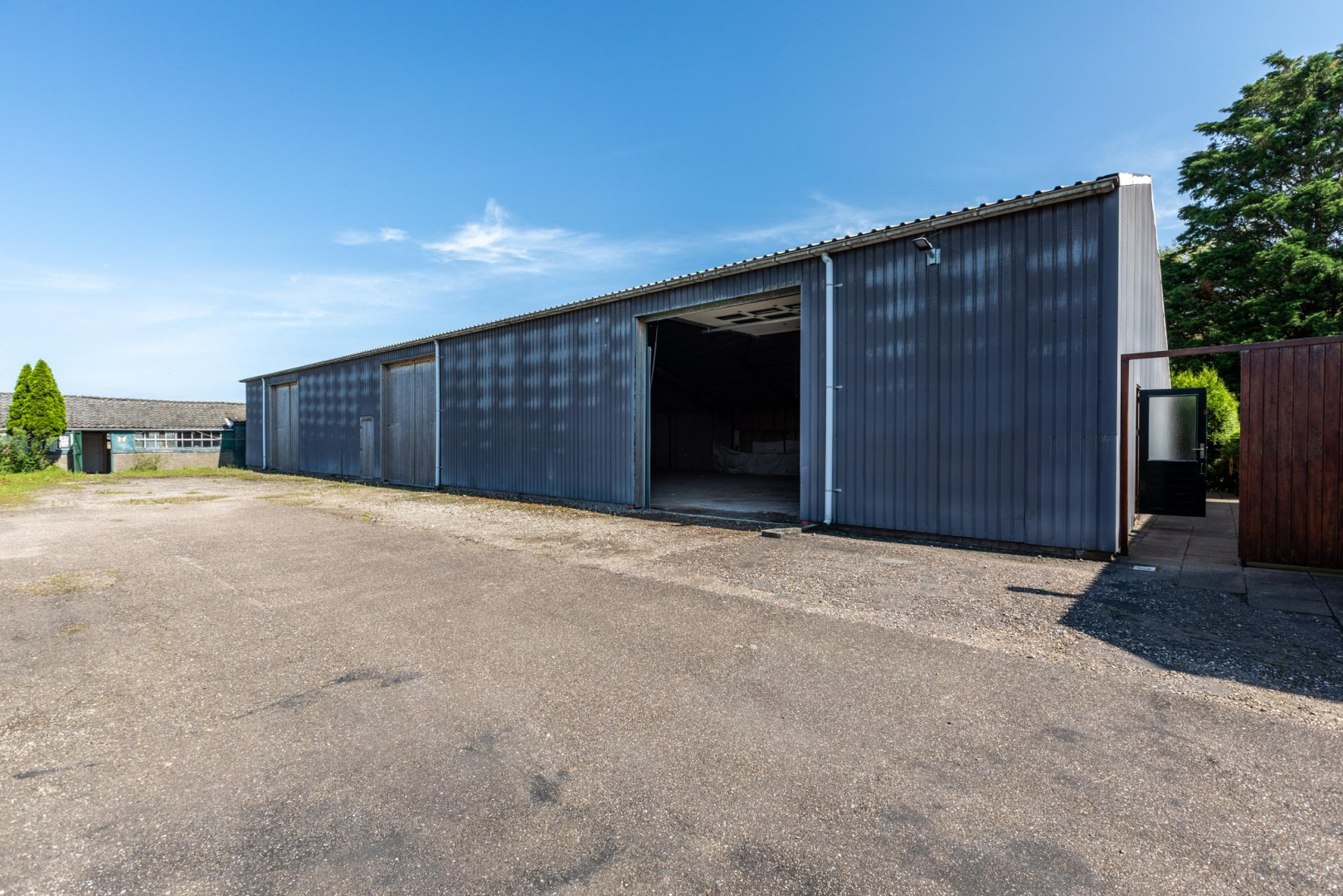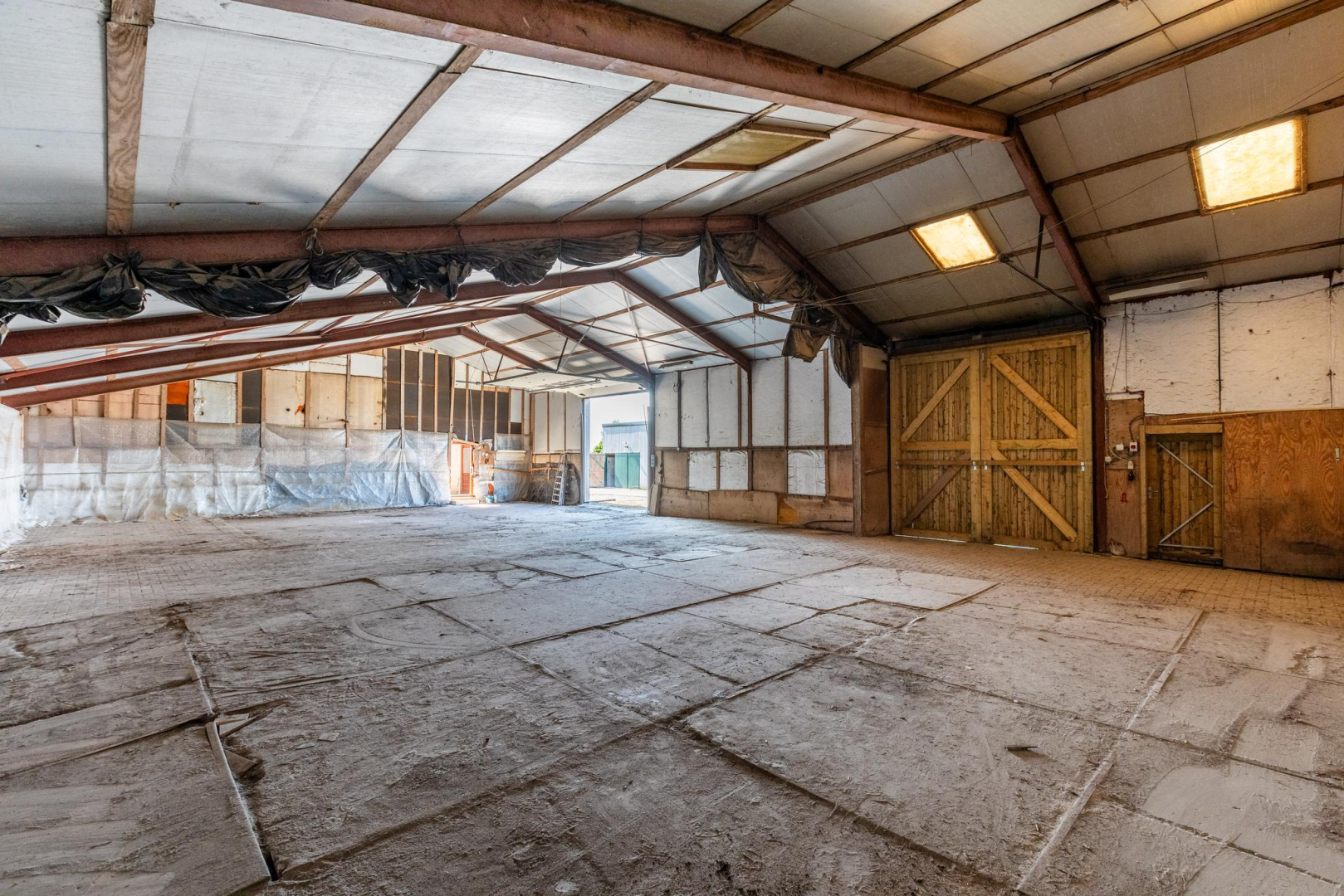 De grote schuur met een oppervlakte van 513 m², achter de woning, is via een loopdeur bereikbaar. Tevens beschikt deze schuur over een elektrische overheaddeur en hoge openslaande deuren. De schuur is opgedeeld in 2 ruimten en voorzien van elektra. De achterste schuur is verouderd en bestaat uit meerdere ruimtes een keukenblok en douche.