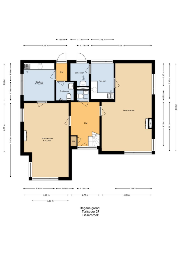 Via de voordeur betreedt u de ruime hal met een hard houten trap naar de 1e etage en vide. De hal is ingericht met een garderobe, meterkast en toiletruimte. Vanuit de hal zijn zowel de woonkamer aan de linker zijde als de woonkamer aan de rechterzijde bereikbaar.