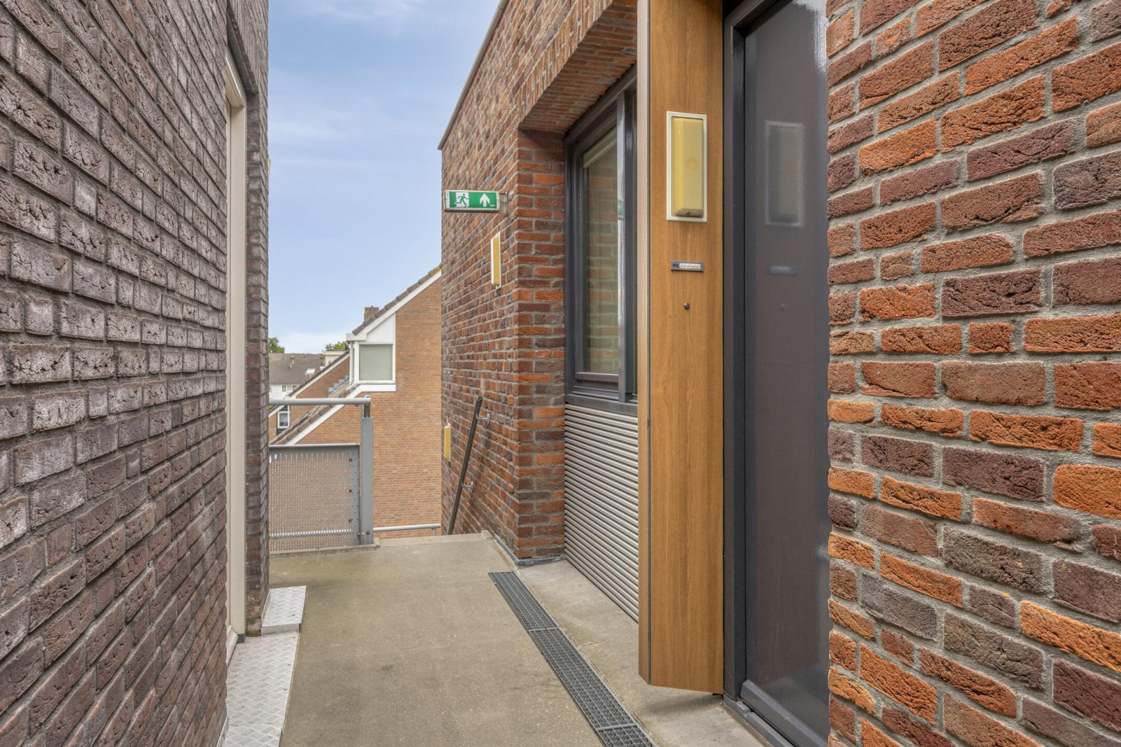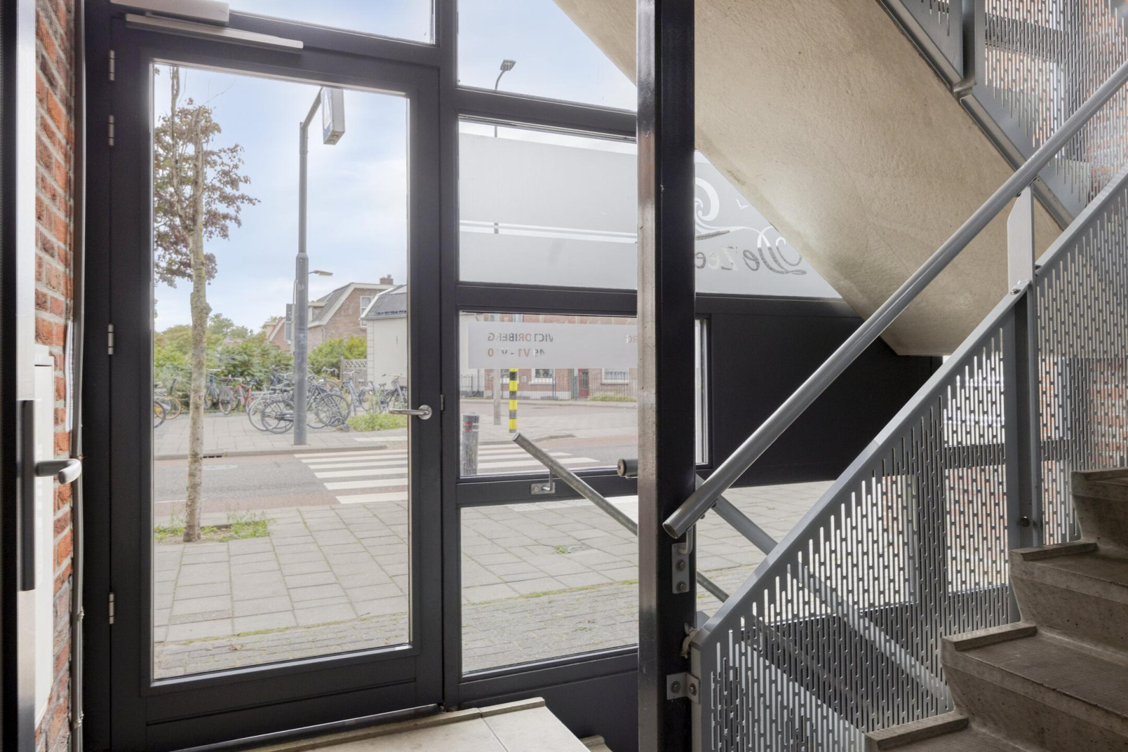 Afgesloten centrale entree/hal met brievenbussen en intercom installatie aan de buitenzijde.
