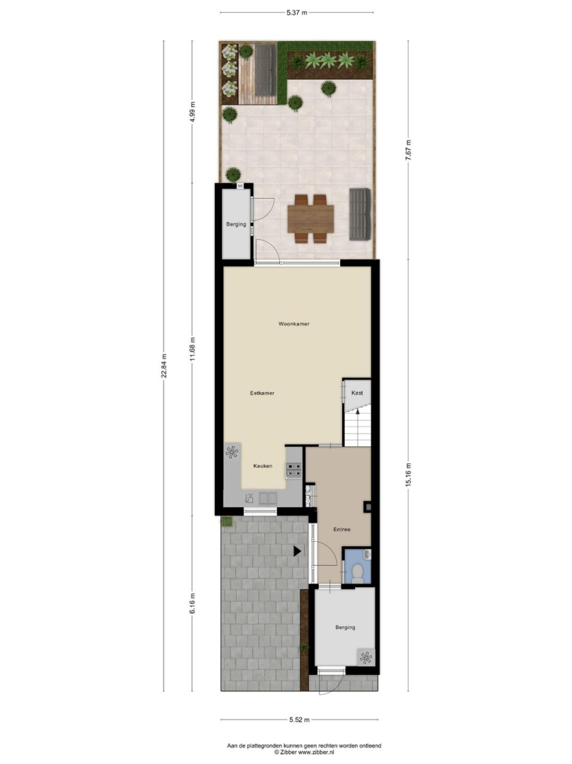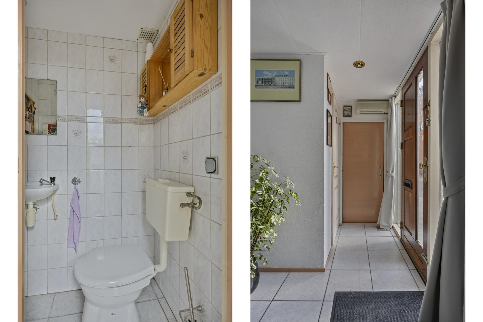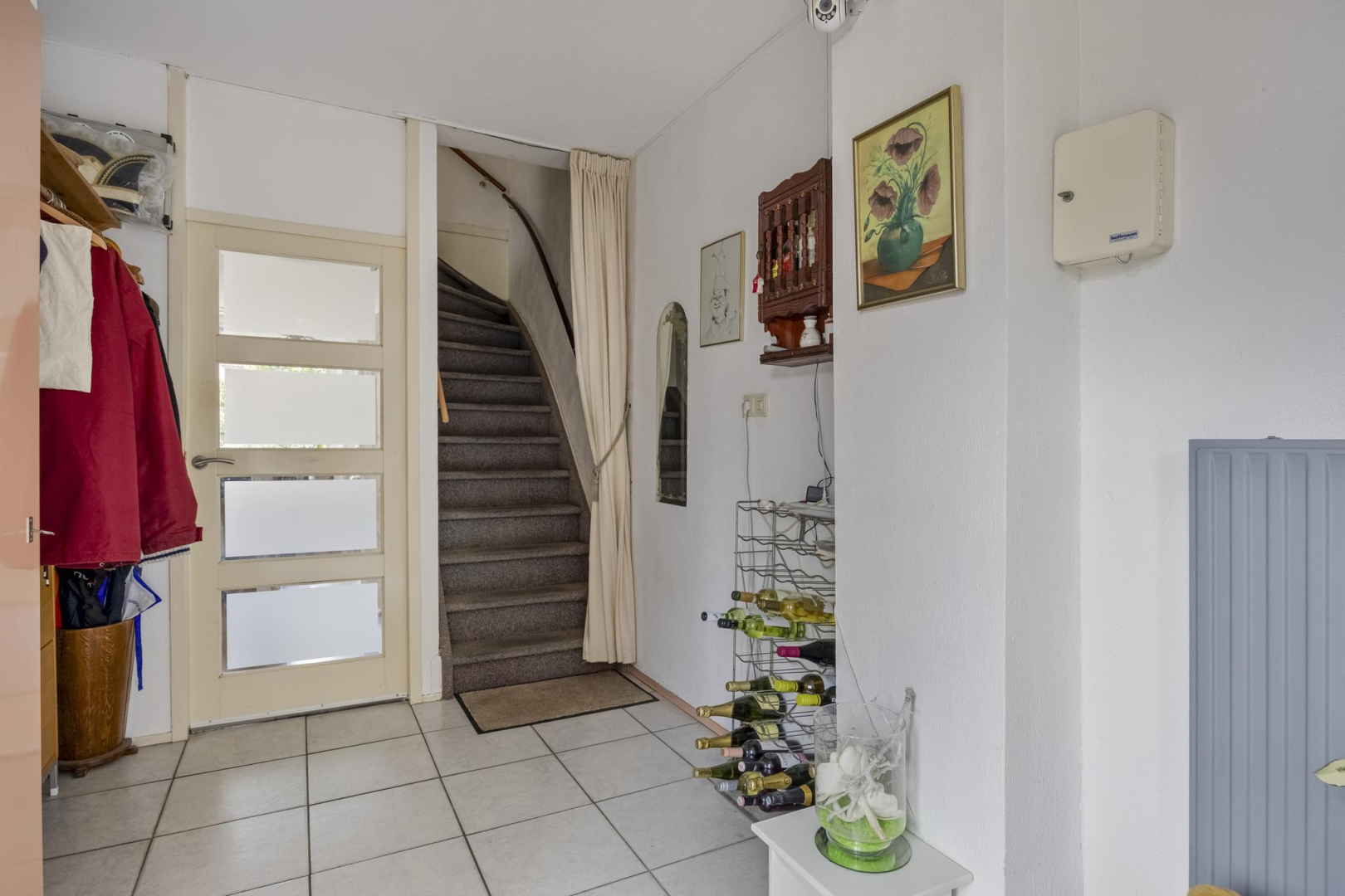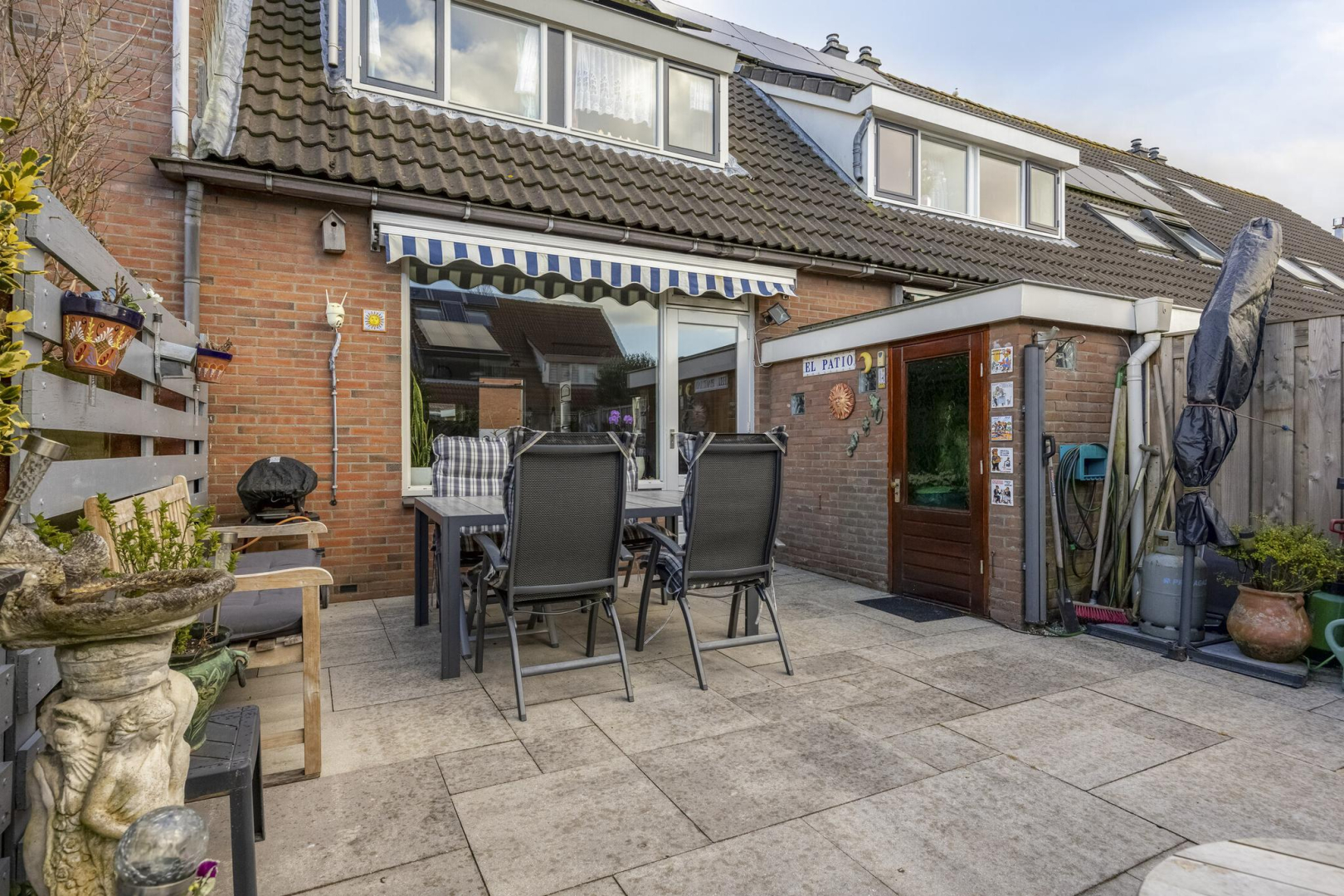 De voortuin biedt een eigen parkeerplaats en ruime stenen berging voor fietsen en extra opslagruimte. De schuur is ook van binnenuit bereikbaar doordat er is aangebouwd tussen de woning en de schuur. De diepe, zonnige achtertuin heeft een ruim terras met nog een stenen berging. De mooie groene struiken bieden veel privacy. Wil je vissen of van de laatste zonnestralen genieten, dan kun je het trapje af naar de prachtige houten vlonder aan het water.