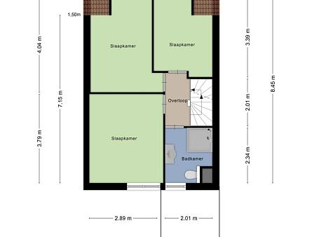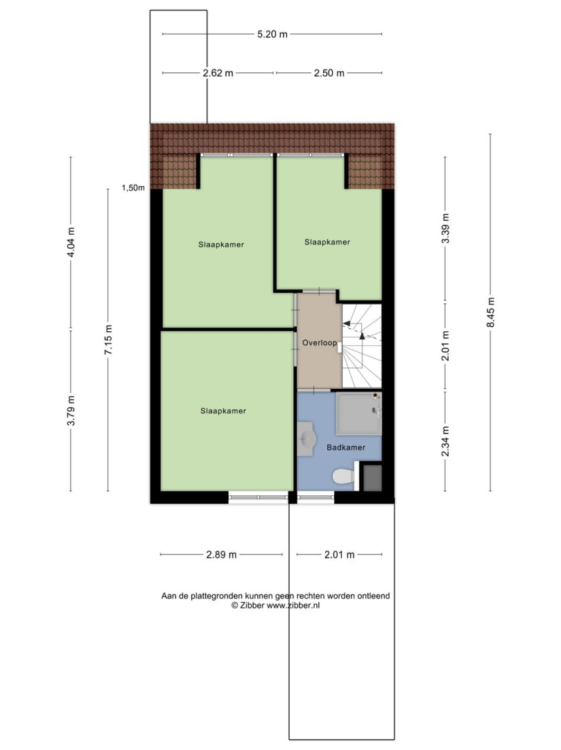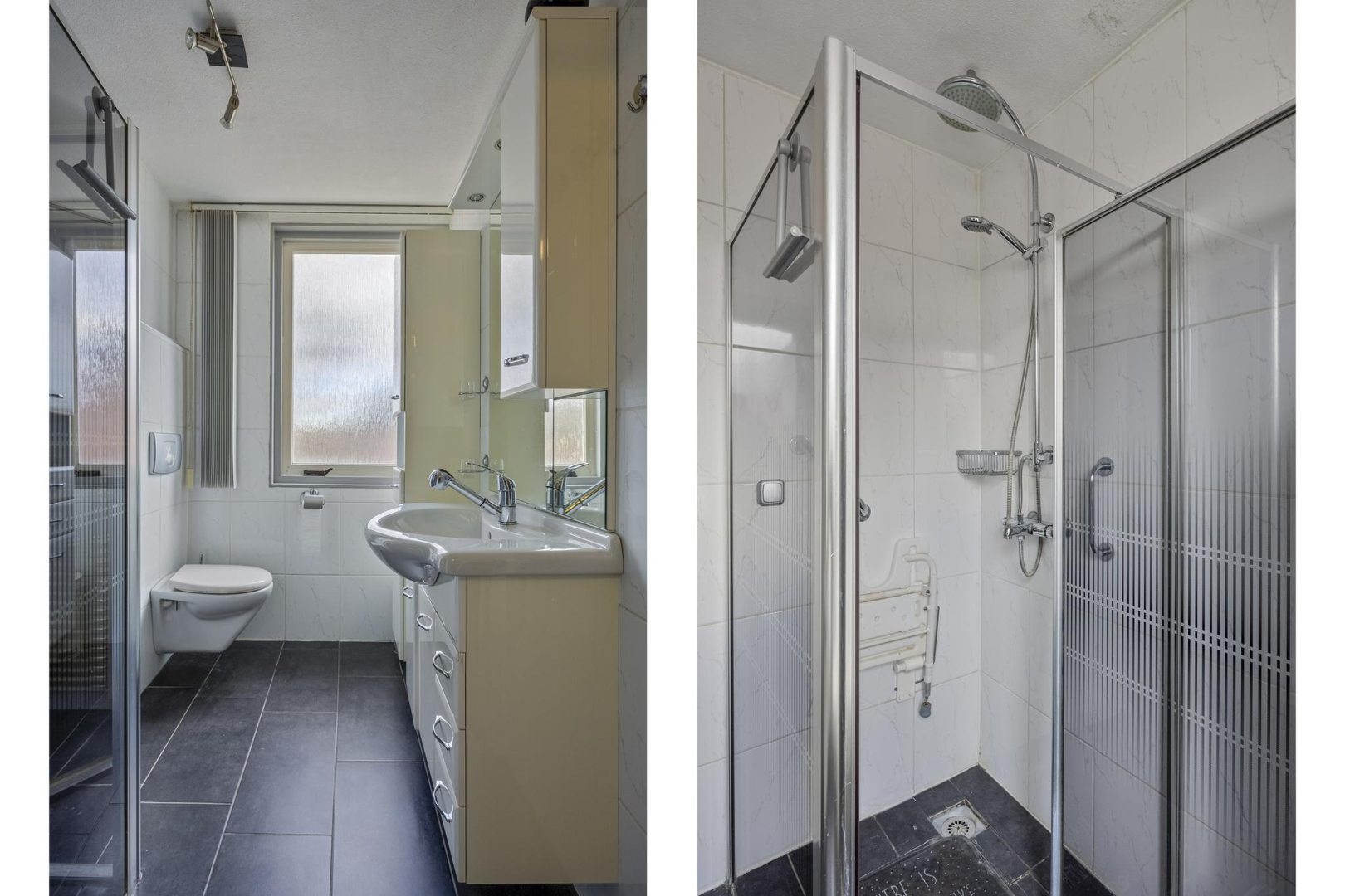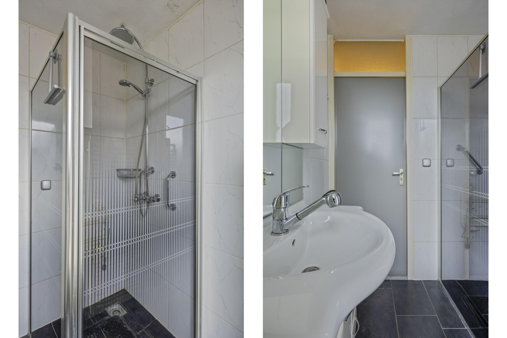 Vanaf de overloop bereik je 2 ruime slaapkamers, gelegen aan de achterzijde van de woning en beiden voorzien van een dakkapel. Aan de voorzijde bevindt zich de master bedroom met vaste kastenwand. De badkamer is volledig voorzien van tegelwerk en heeft een inloopdouche met glazen wand en deur, wandcloset en wastafelmeubel. Op de badkamer na is de gehele verdieping voorzien van een laminaatvloer.