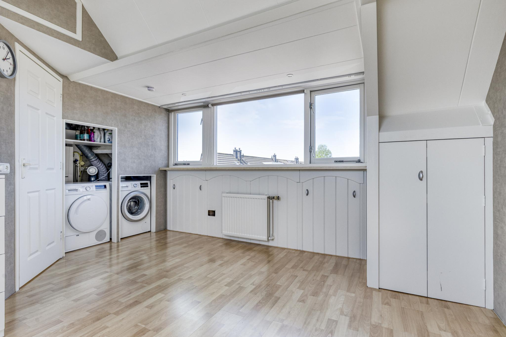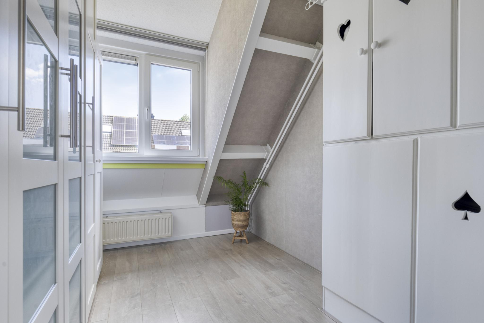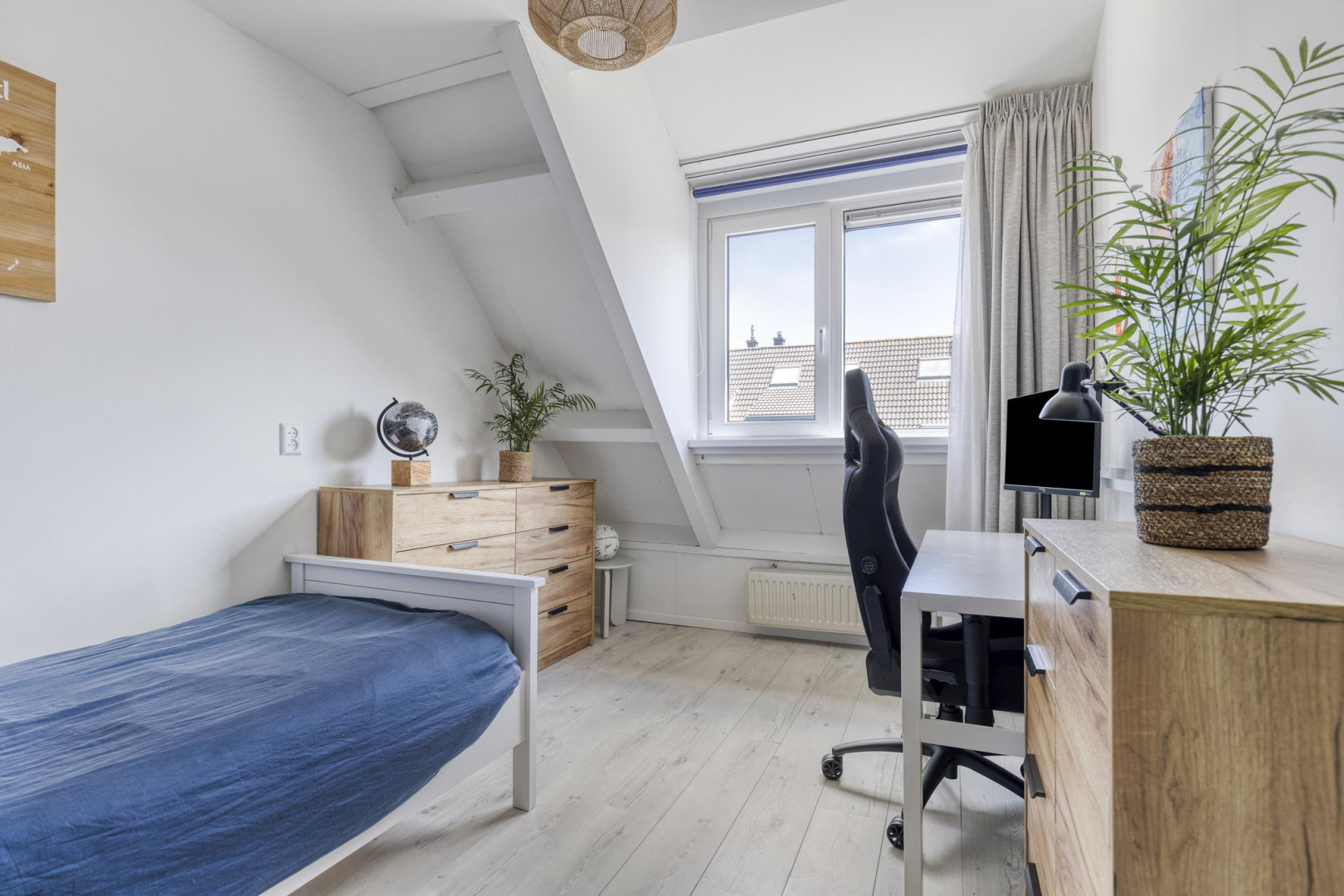 4e kamer en is voorzien van een dakkapel en een Velux dakraam. Veel opbergruimte vind je achter de knieschotten en de gehele verdieping is voorzien van een laminaatvloer.