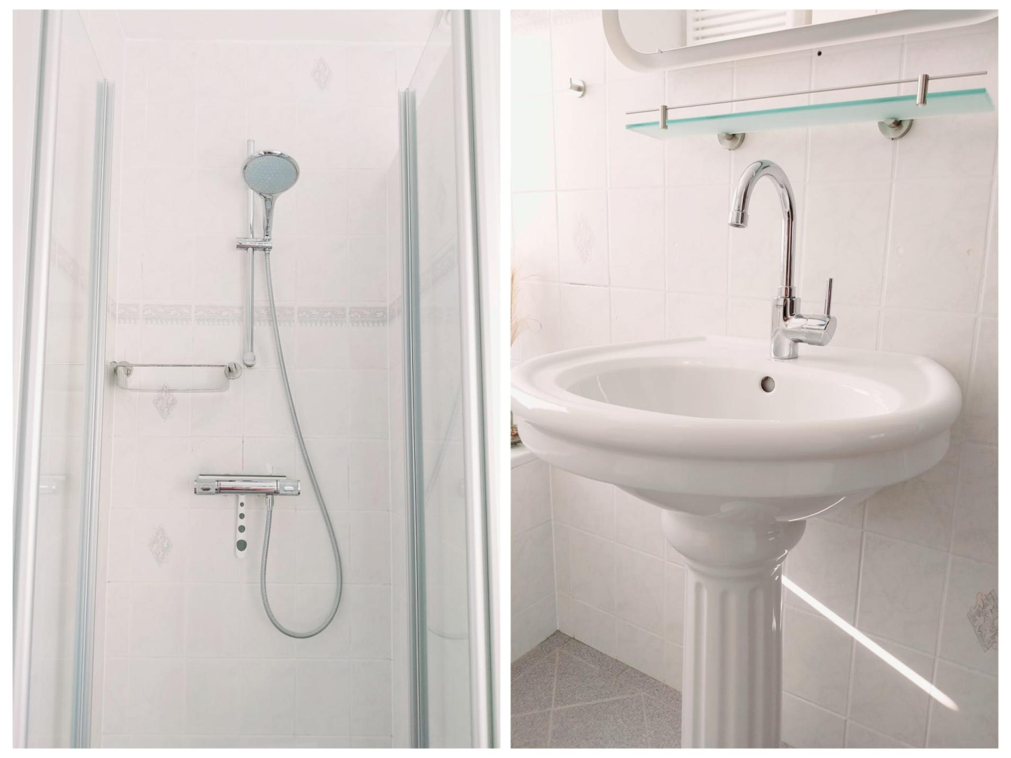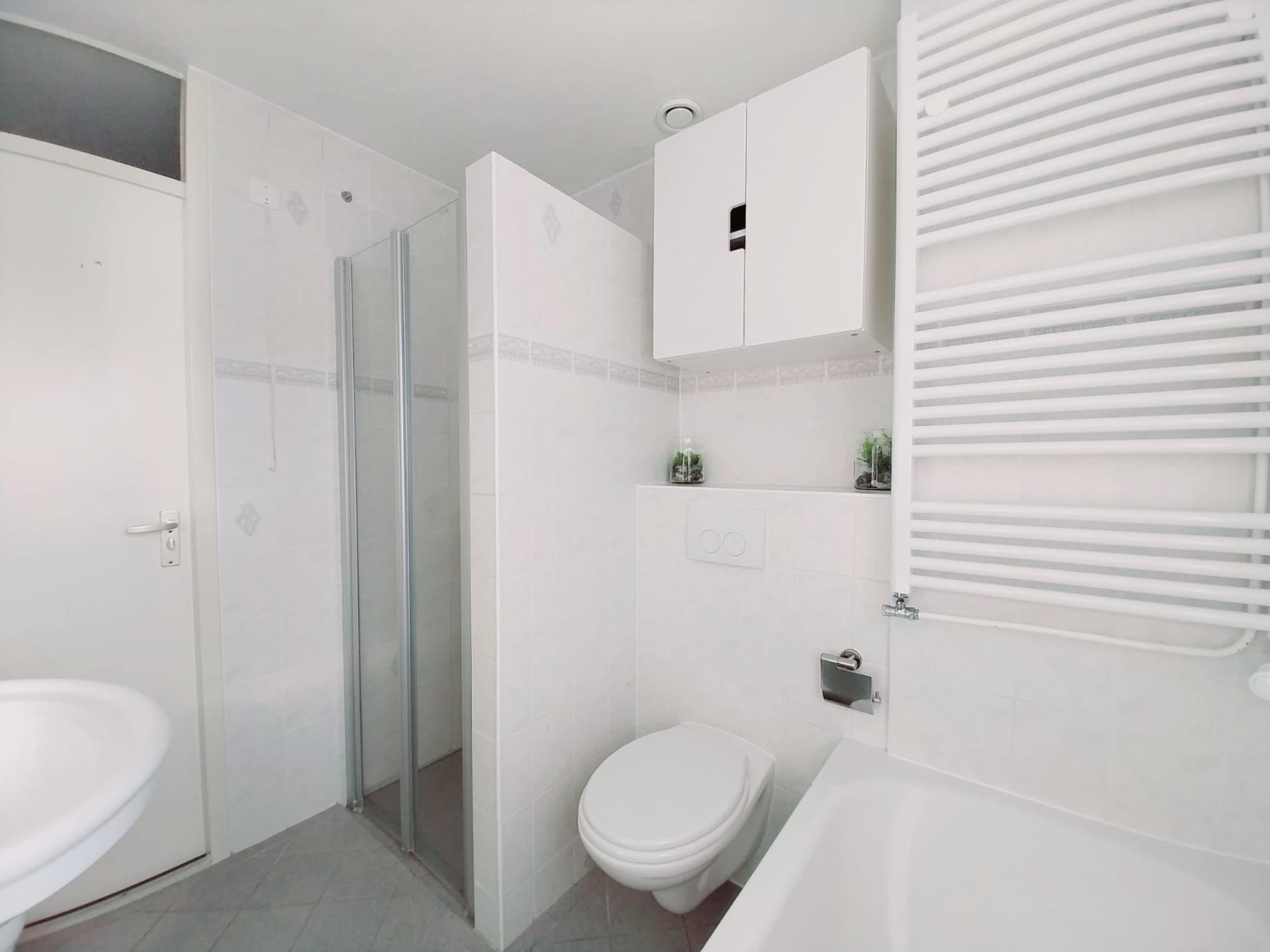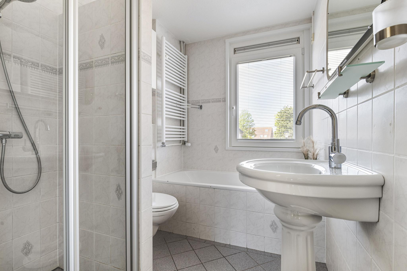 Overloop, 2 slaapkamers aan de achterzijde van de woning met dakkapel en kunststof kozijnen. Aan de voorzijde bevindt zich nog een ruime slaapkamer, eveneens met kunststof kozijnen. De badkamer is voorzien van een 2e toilet, ligbad, douchecabine, wastafel en handdoekradiator. De gehele verdieping is voorzien van een laminaatvloer.