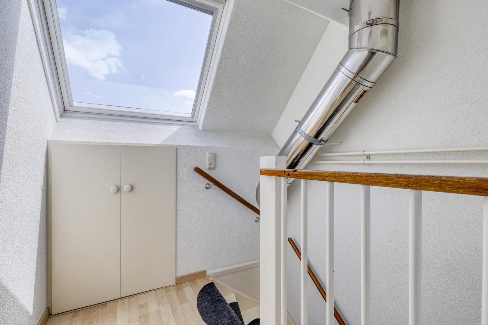 2e Verdieping: De zolderverdieping bereik je via een vaste trap. Hier bevinden zich de stook-/wasruimte met aansluitingen voor wasapparatuur, opstelplaats voor de cv-ketel (geschikt voor hybride warmtepomp) en er is een omvormer voor de 6 zonnepanelen. De zolderverdieping is een royale