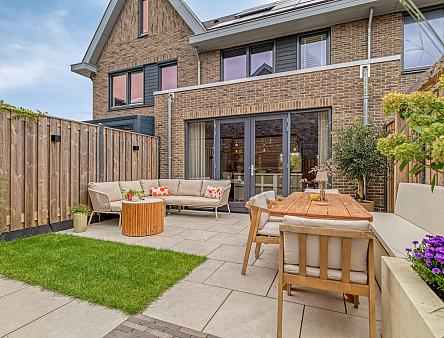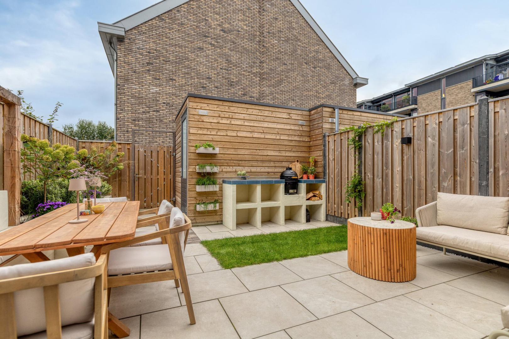 De zonnige, goed onderhouden en sfeervolle tuin ligt op het zuidwesten en vormt de ideale plek voor zomerse barbecues, een ontspannen ochtendkoffie in het zonnetje of om gewoon heerlijk buiten te genieten. Het is een fijne plek om te vertoeven, zowel in de zomer als in het tussenseizoen. Achterin de tuin bevinden zich een houten berging en een buitenkeuken, waar een barbecue perfect tot zijn recht komt. Verder is de achtertuin voorzien van een terras en diverse beplanting, die samen zorgen voor een groene en gezellige uitstraling.